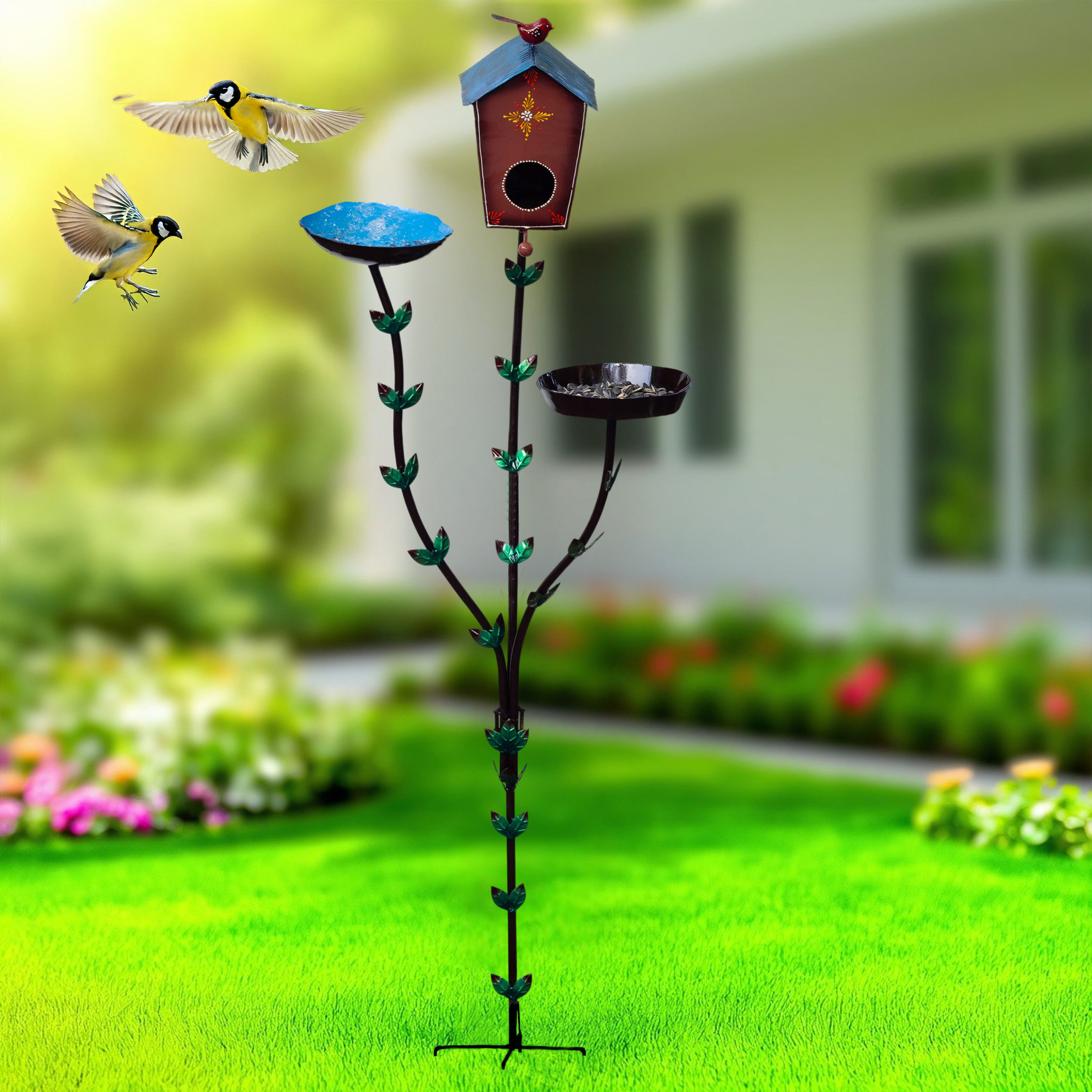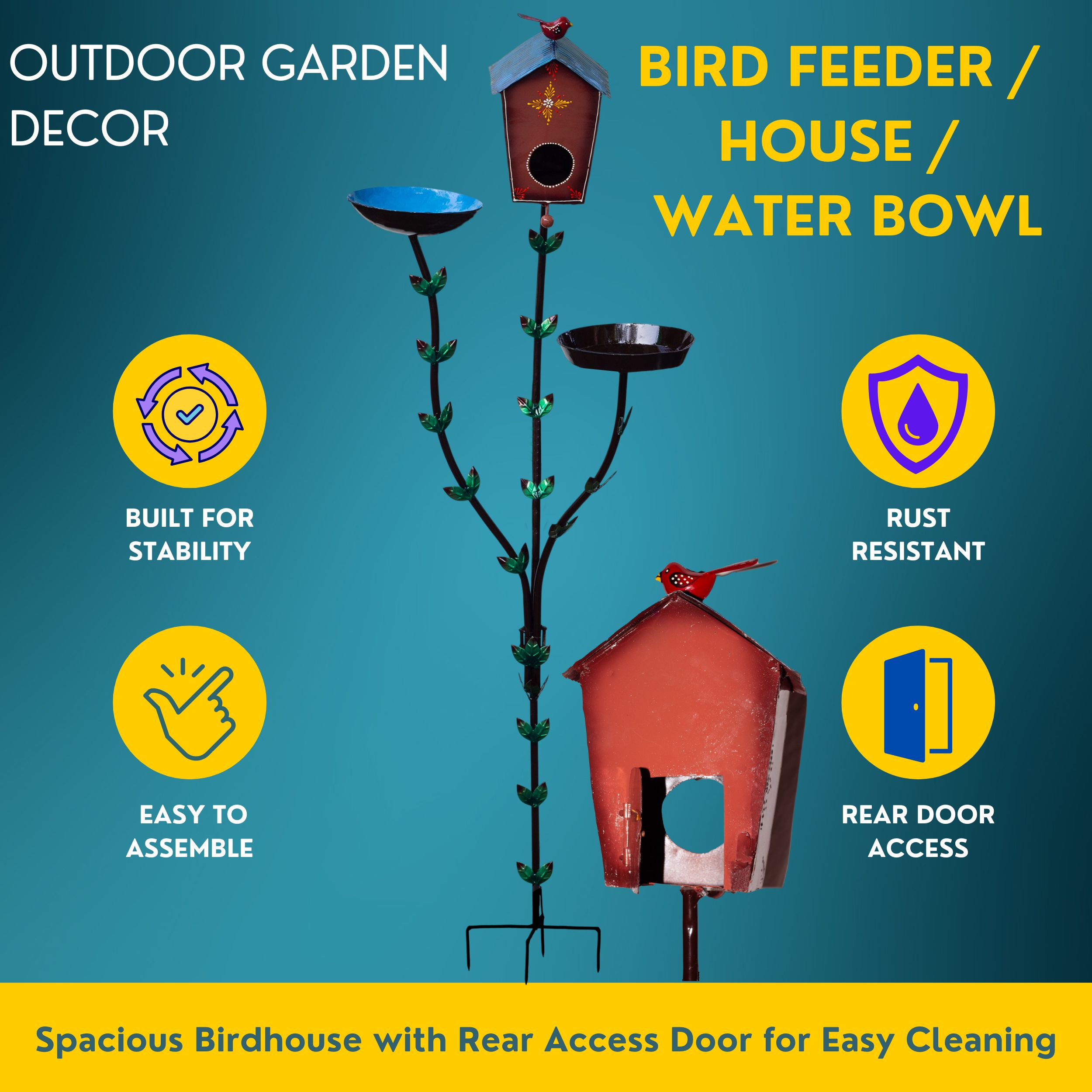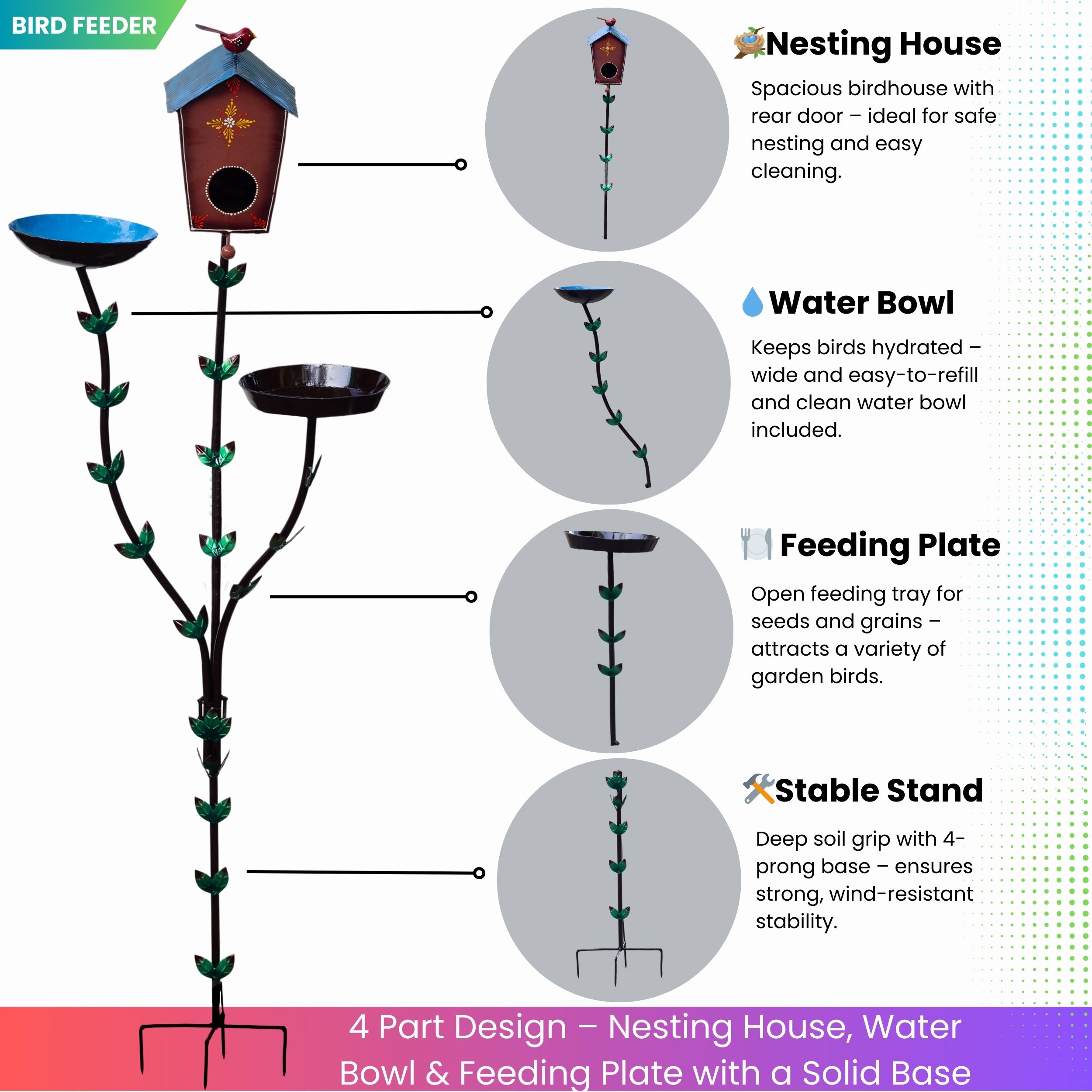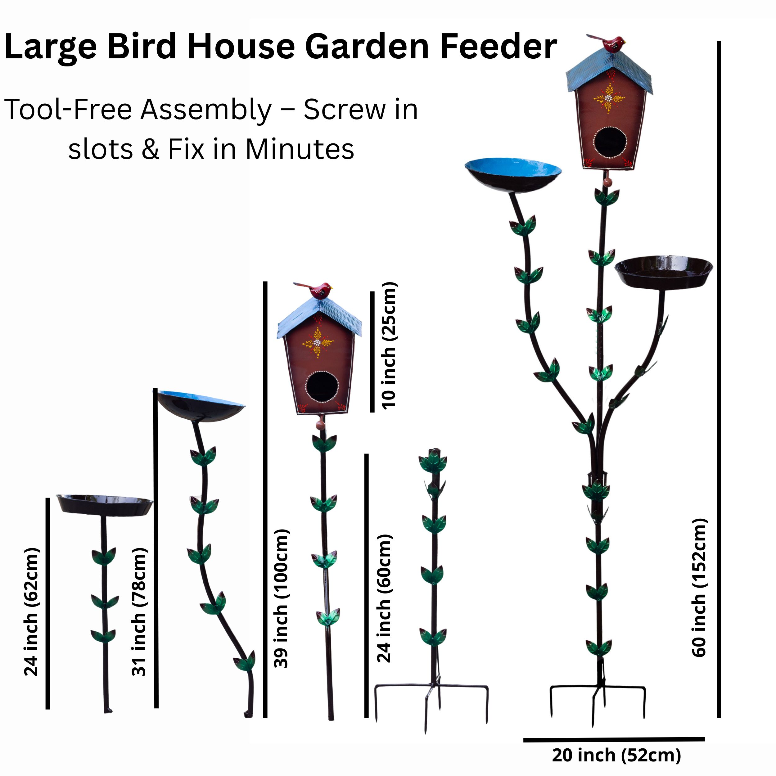 5ft Large Iron Bird Feeder with Nesting House & Water Bowl – Tall Garden Bird House Stand for Sparrows, Robins, and Small Birds – Rust Resistant, Powder Coated – Easy to Install & Clean