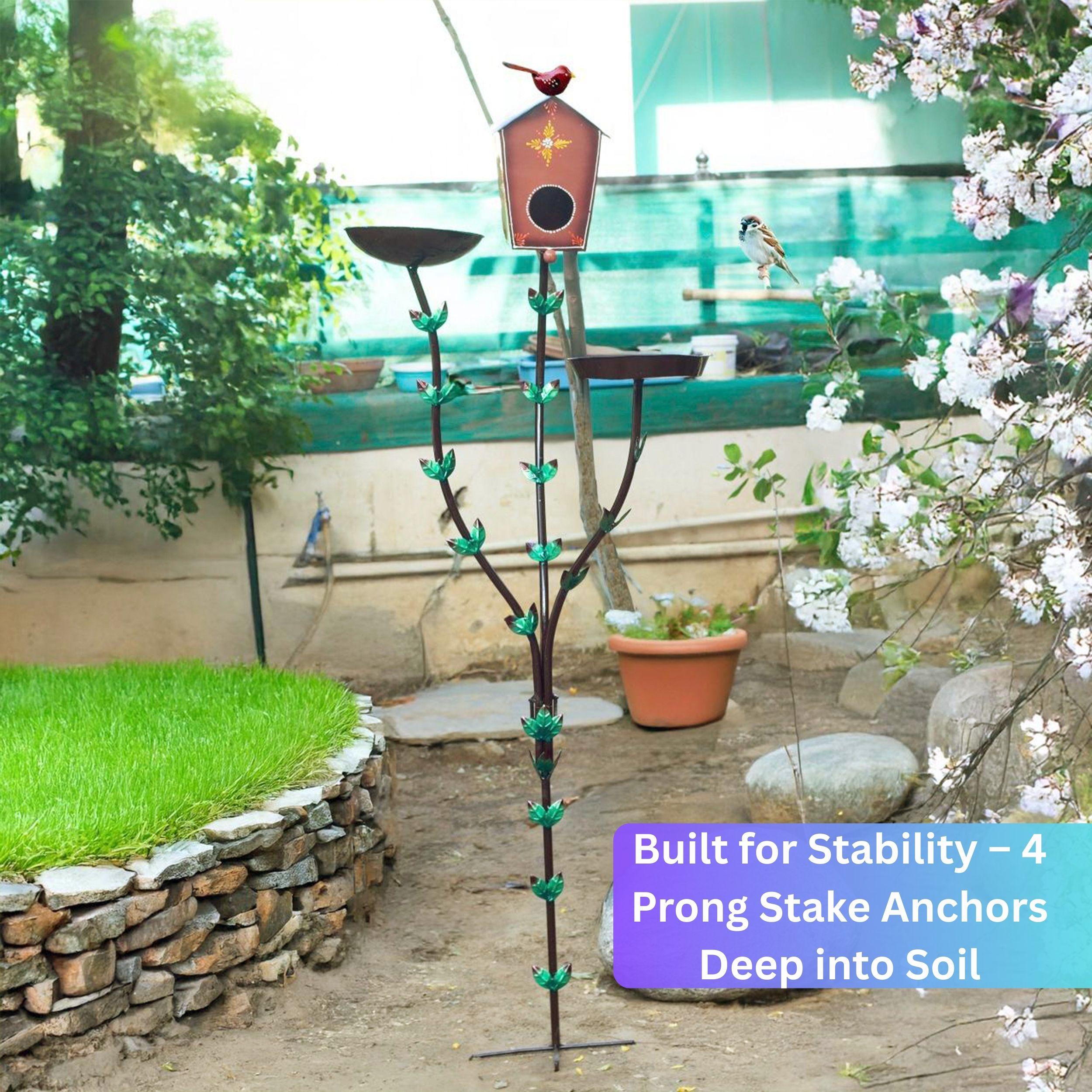 Elevates your backyard garden’s appeal and makes it easy for birds to spot. Stays upright with a stable 4-prong base that digs deep into the soil.