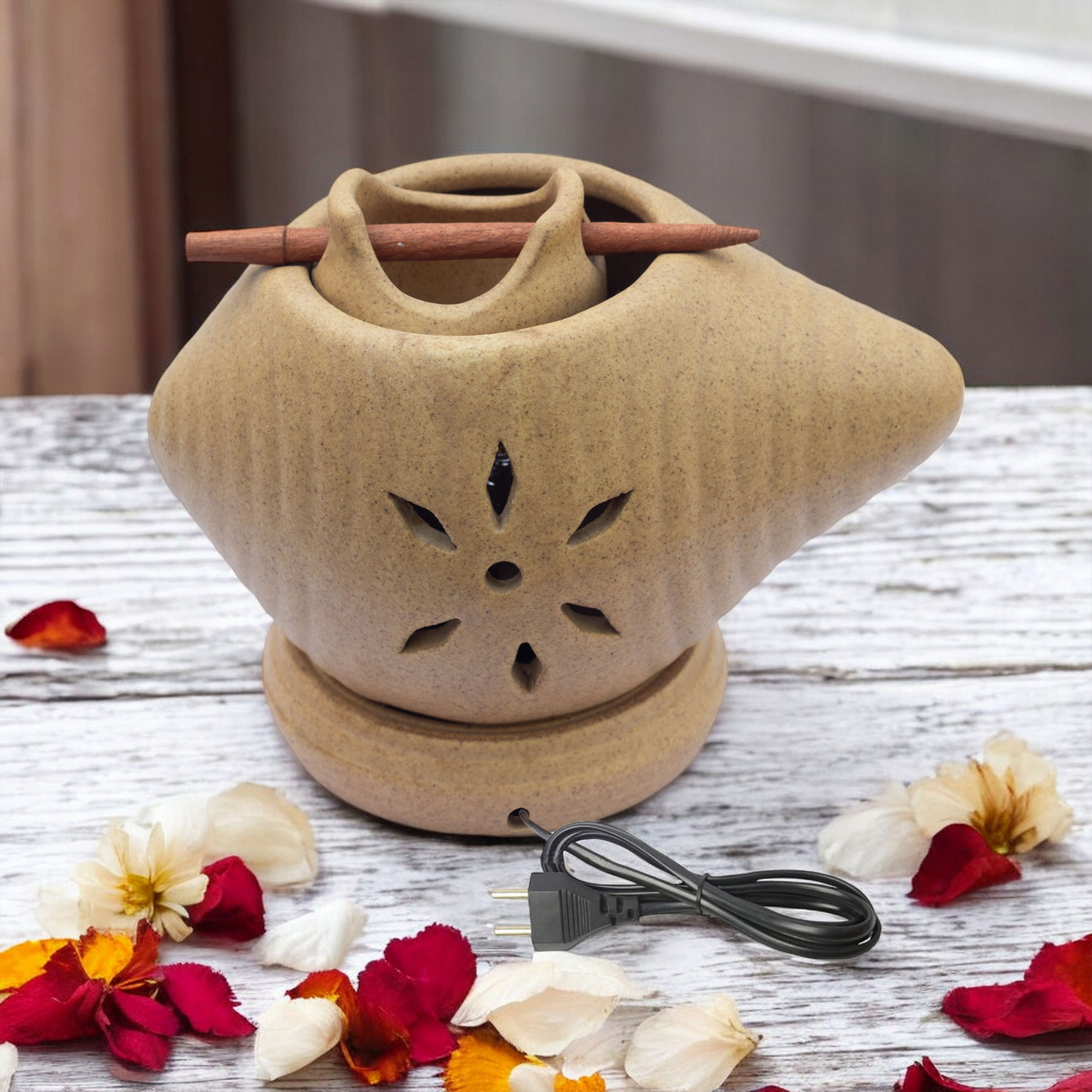Multi-functional Diffuser: Can be used as an electric camphor burner (Kapur Dani), essential oil vaporizer, or fragrance diffuser.