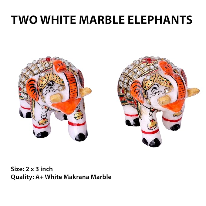Introducing our exquisite 2 inch marble elephant statue, a truly captivating and elegant decorative piece designed to add a touch of timeless beauty to your home or office. Handcrafted from the finest quality Makrana marble, renowned for its purity and pristine white appearance, this exceptional piece of art is a testament to skilled craftsmanship and Indian heritage.