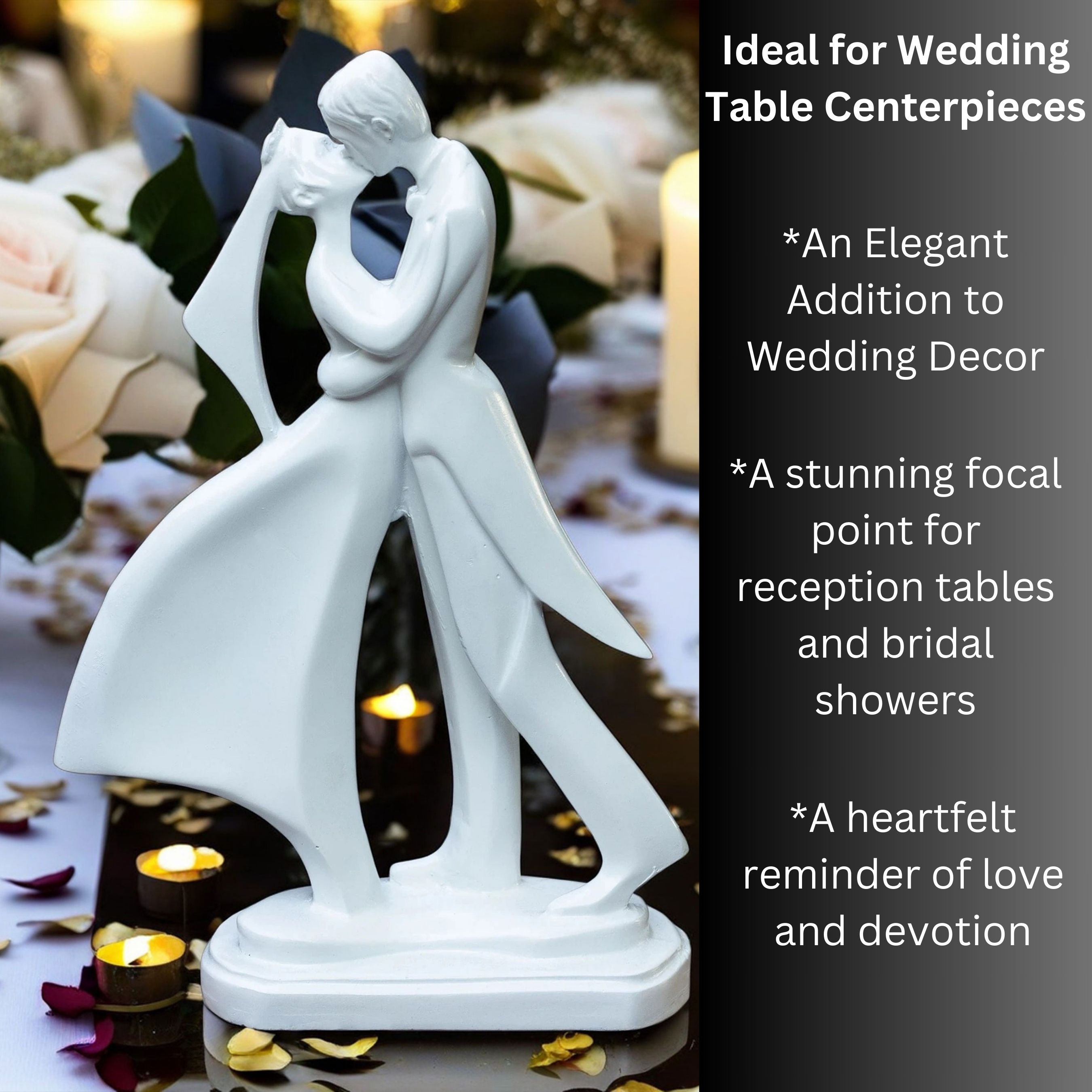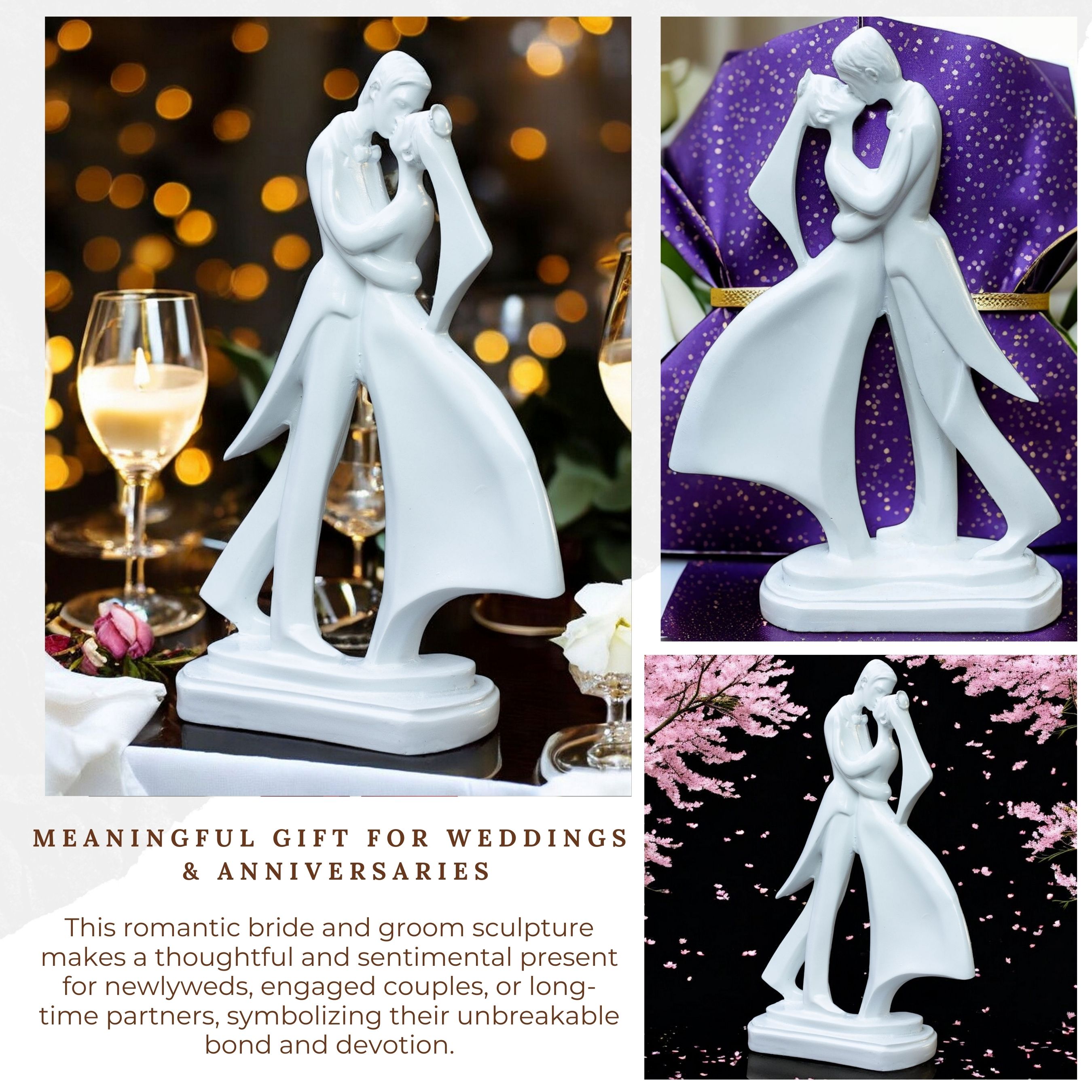 Give the gift of love, elegance, and sentimentality with this exquisite bride and groom sculpture, a timeless keepsake that celebrates romance. This romantic bride and groom sculpture makes a thoughtful and sentimental present for newlyweds, engaged couples, or long-time partners, symbolizing their unbreakable bond and devotion.