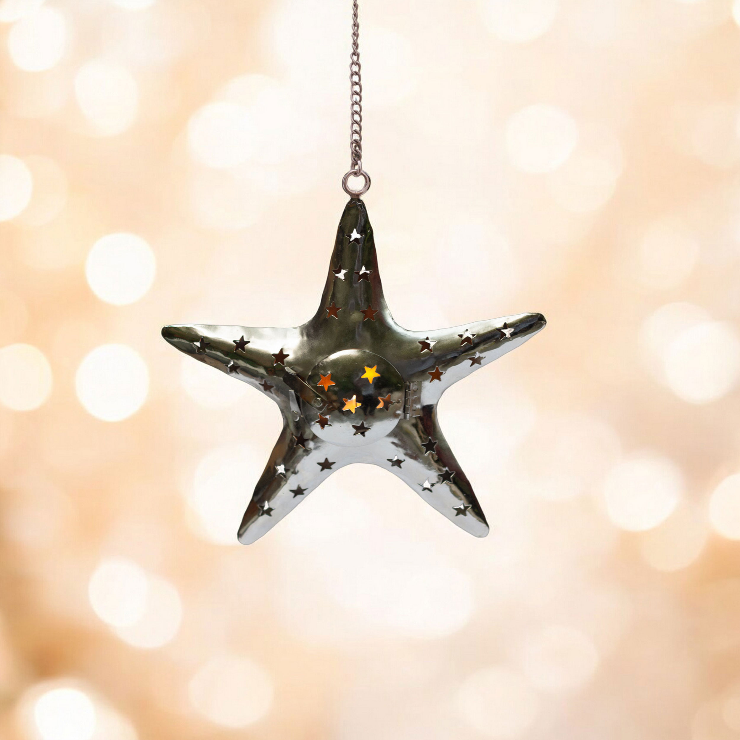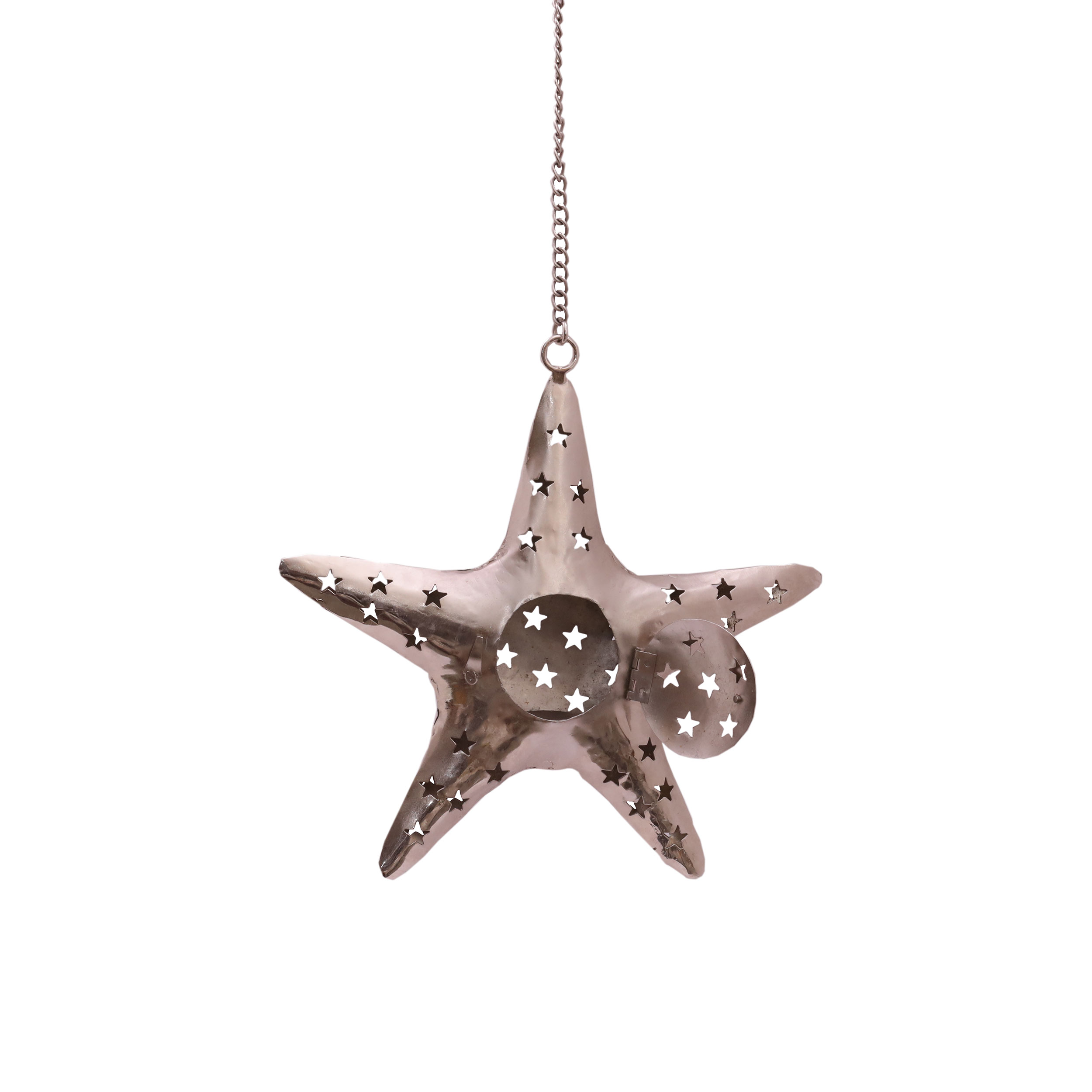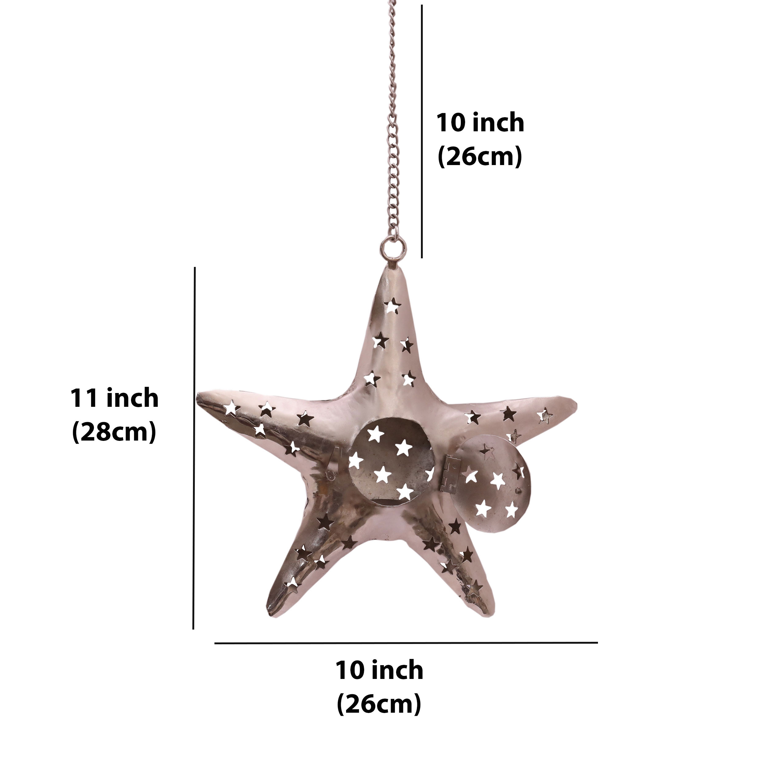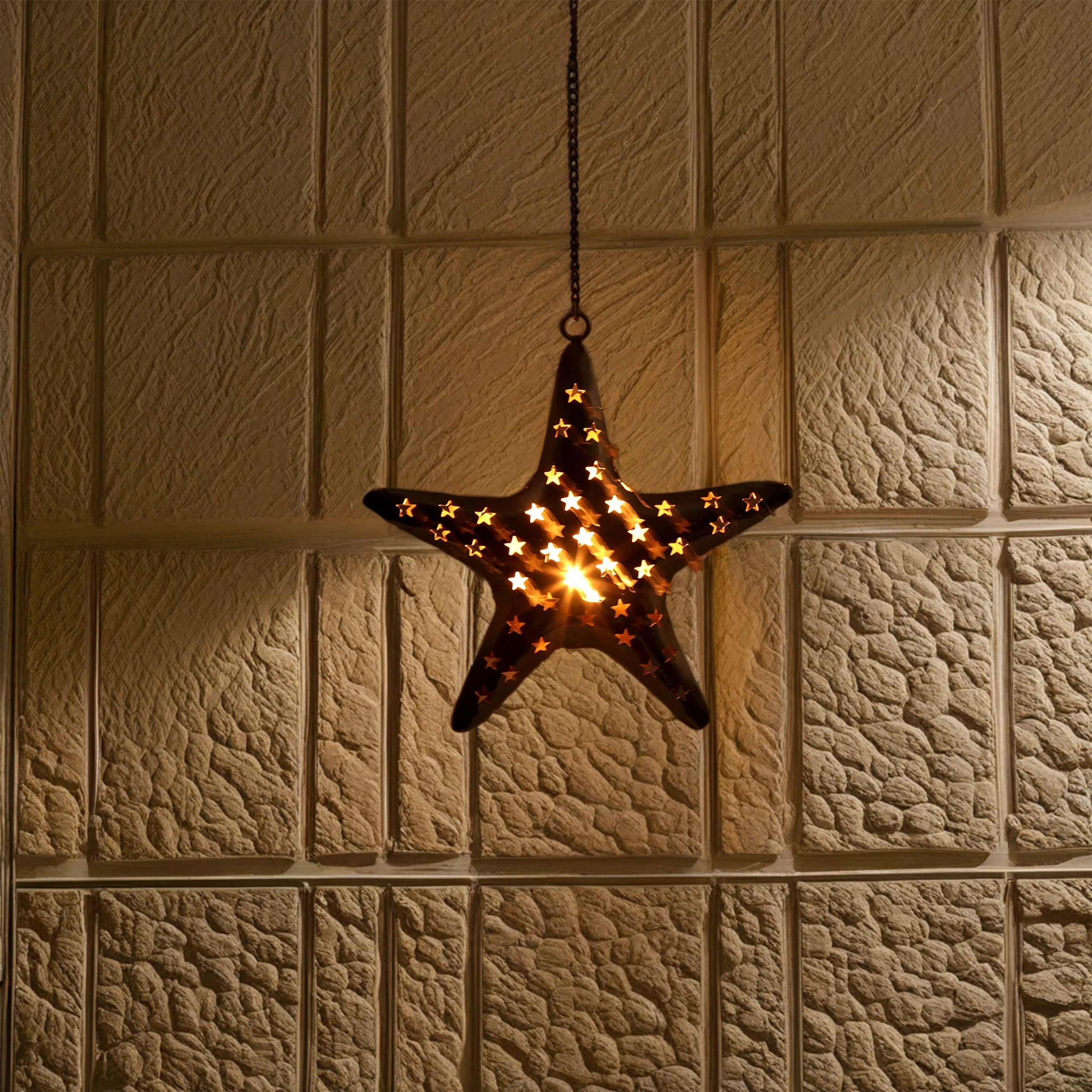 Hanging Star Shaped Metal Tealight Lantern (11×10 in) with Sturdy Chain | Ideal for Christmas Décor, Housewarming Gifts & Rustic Living Room Accents (Star)
