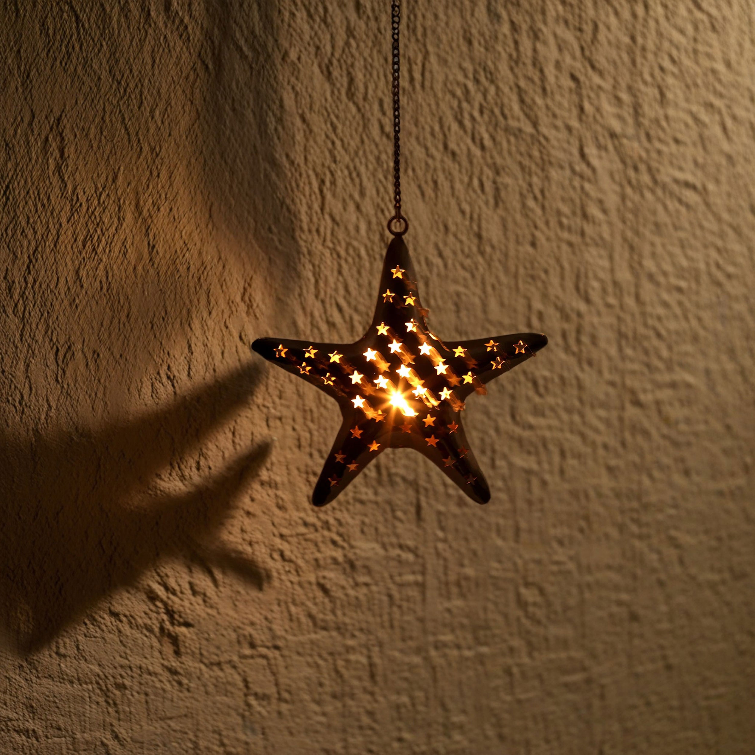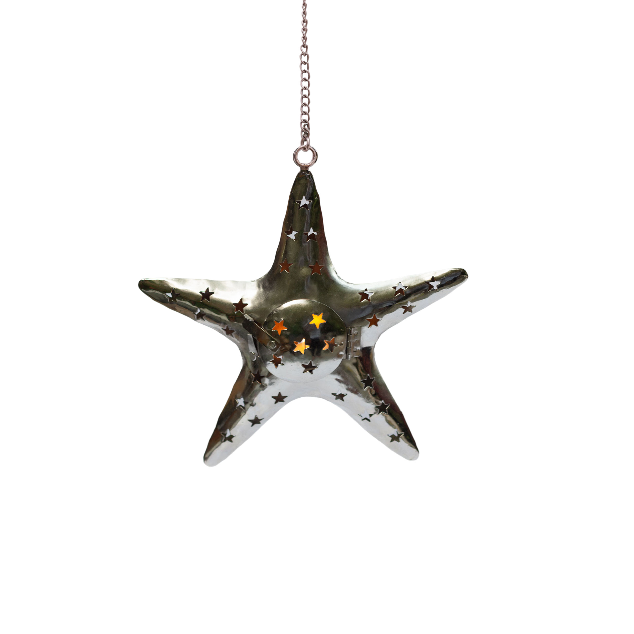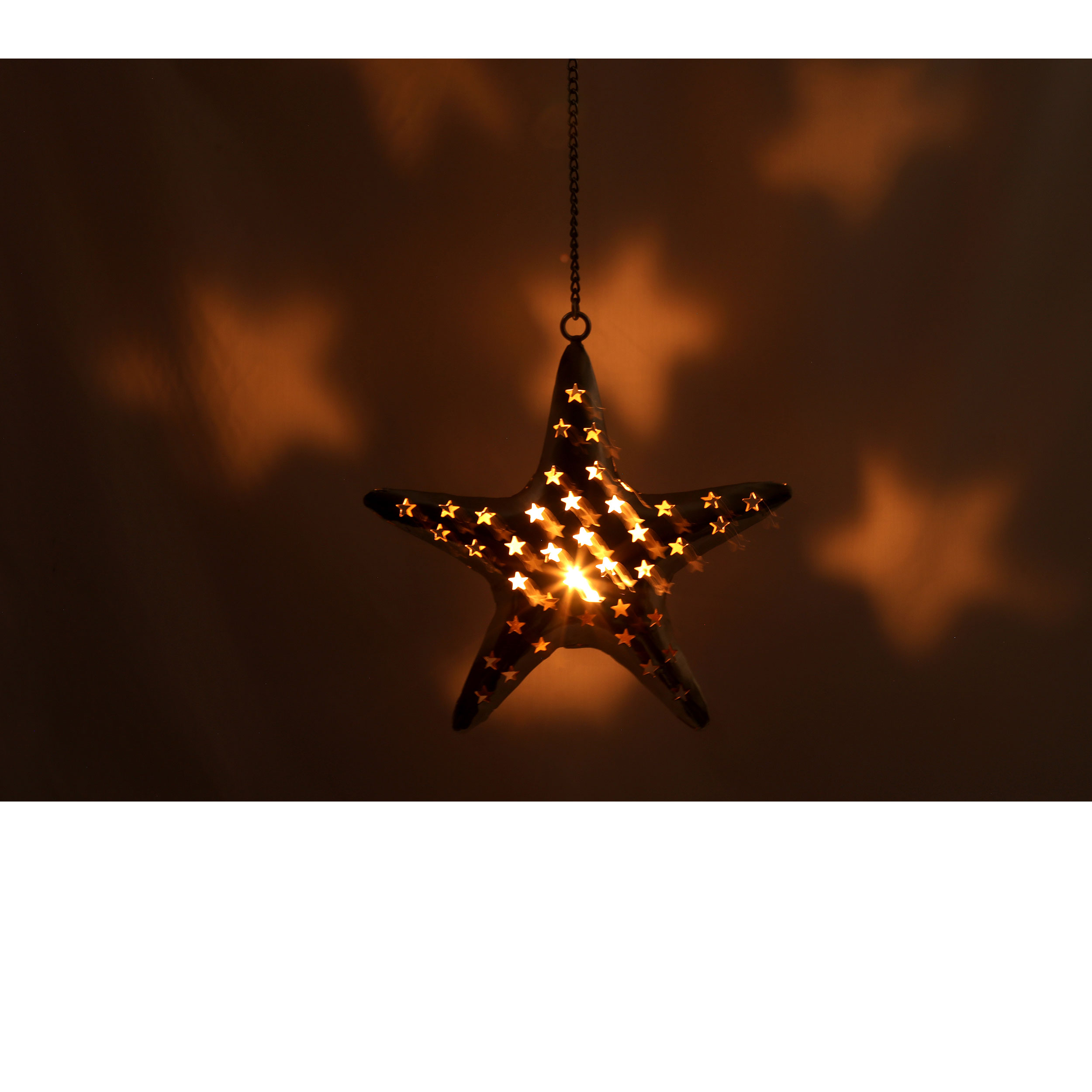 Hanging Star Shaped Metal Tealight Lantern (11×10 in) with Sturdy Chain | Ideal for Christmas Décor, Housewarming Gifts & Rustic Living Room Accents (Star)