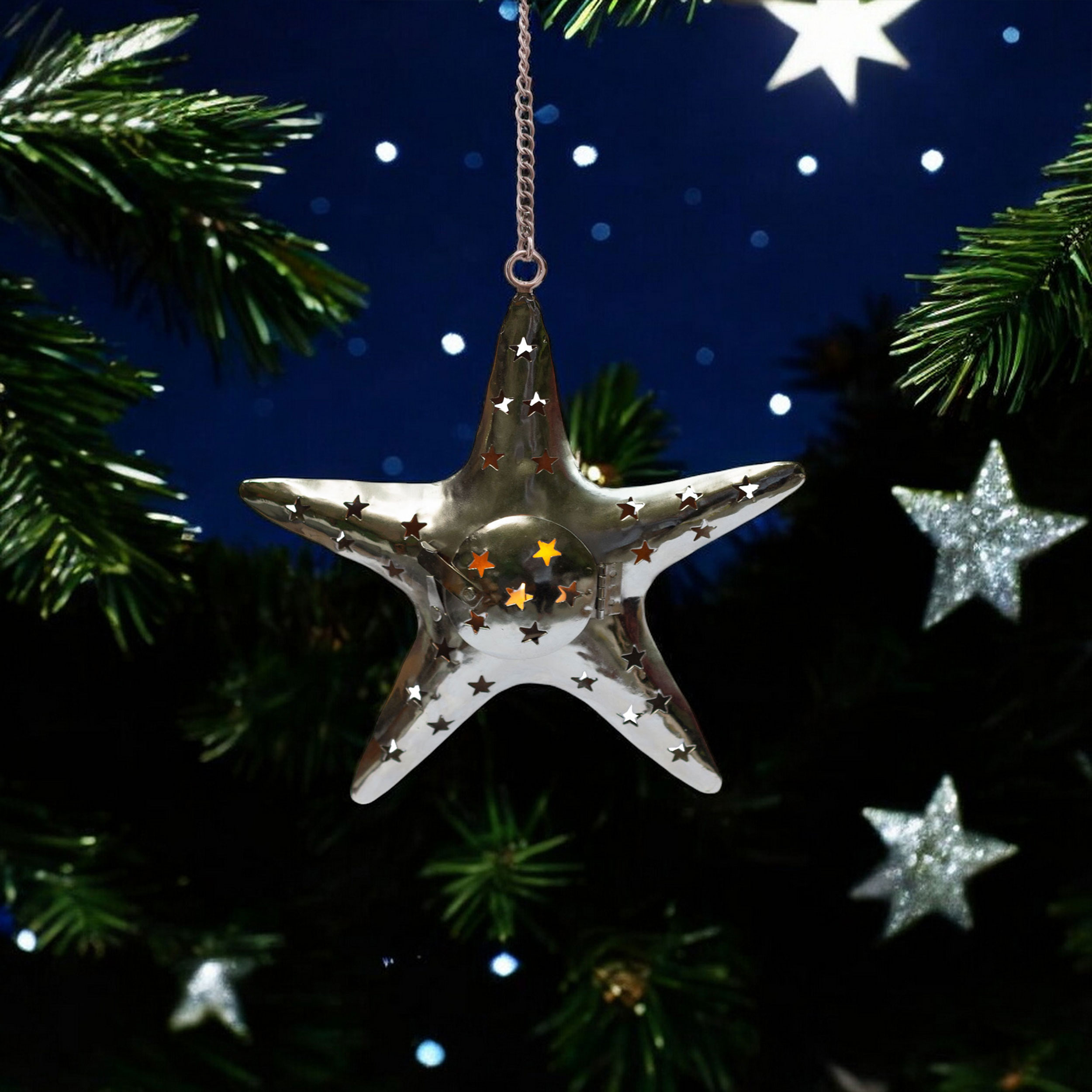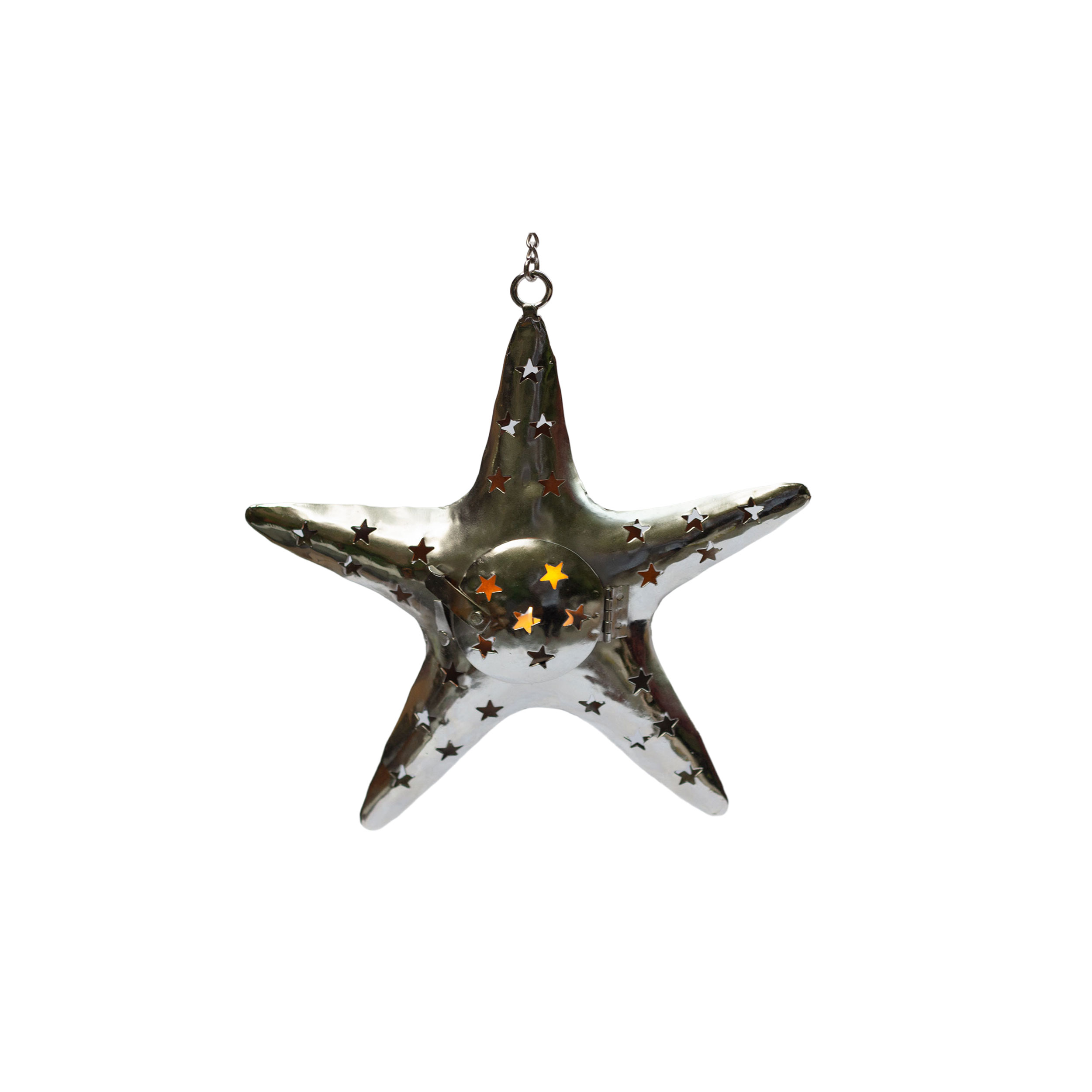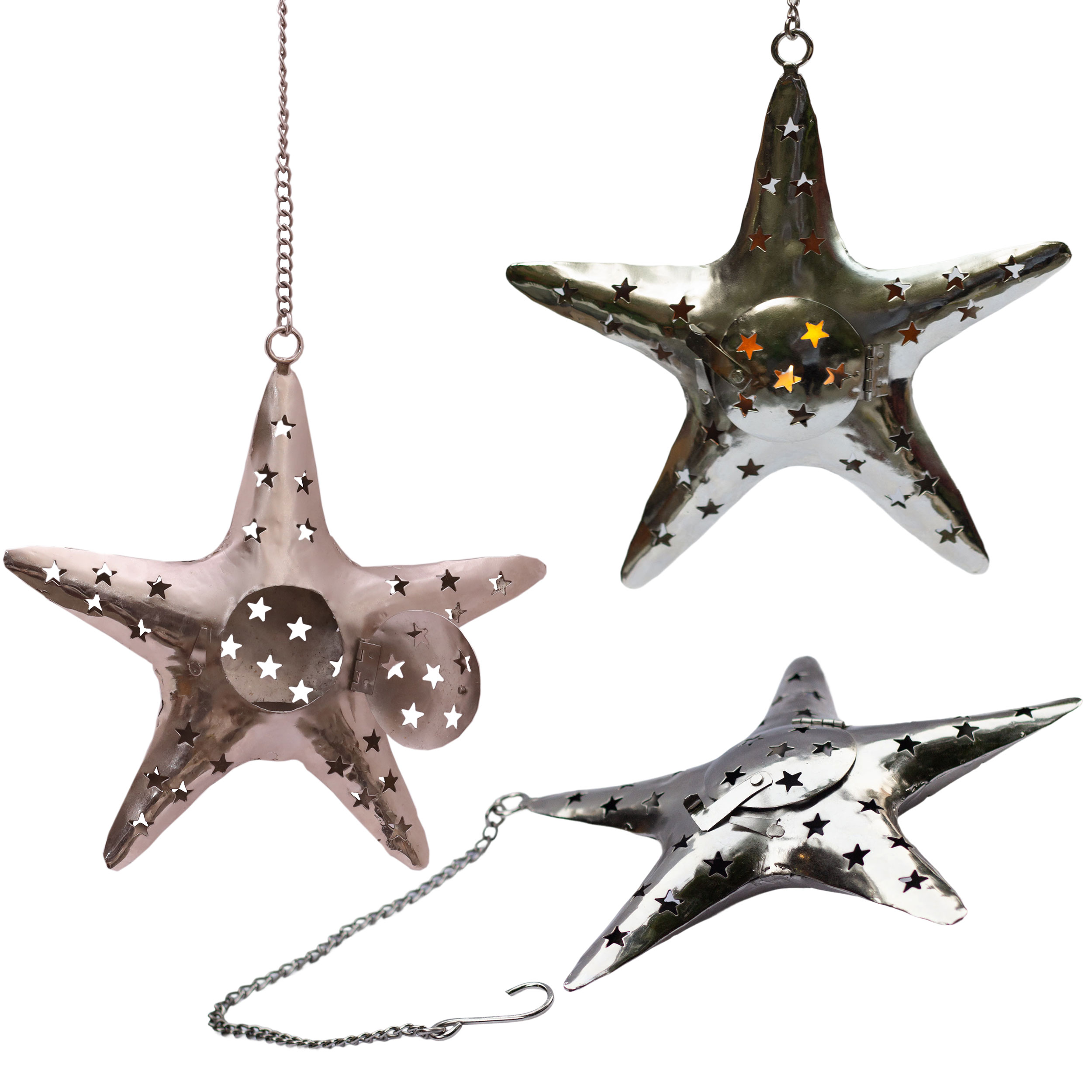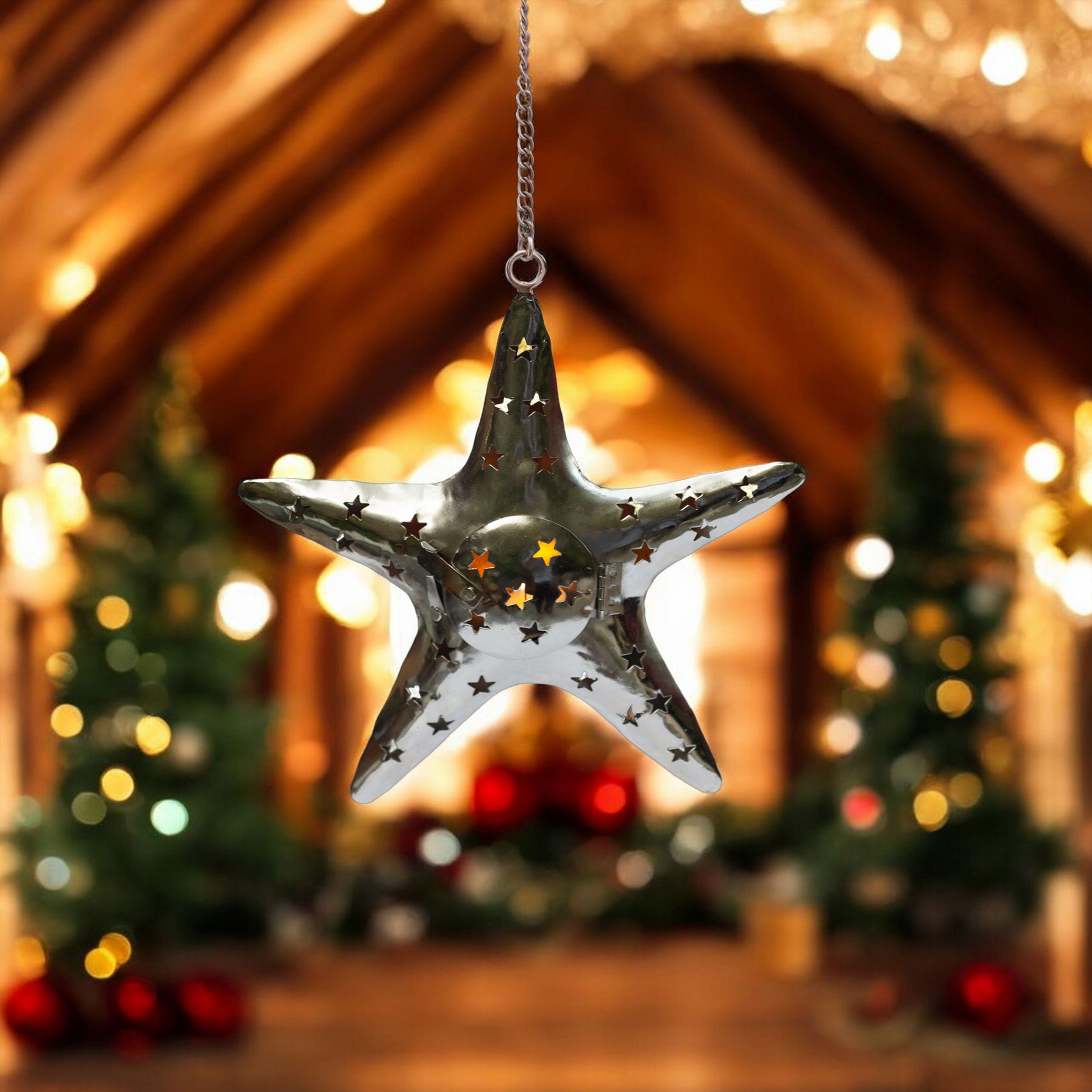Hanging Star Shaped Metal Tealight Lantern (11×10 in) with Sturdy Chain | Ideal for Christmas Décor, Housewarming Gifts & Rustic Living Room Accents (Star)