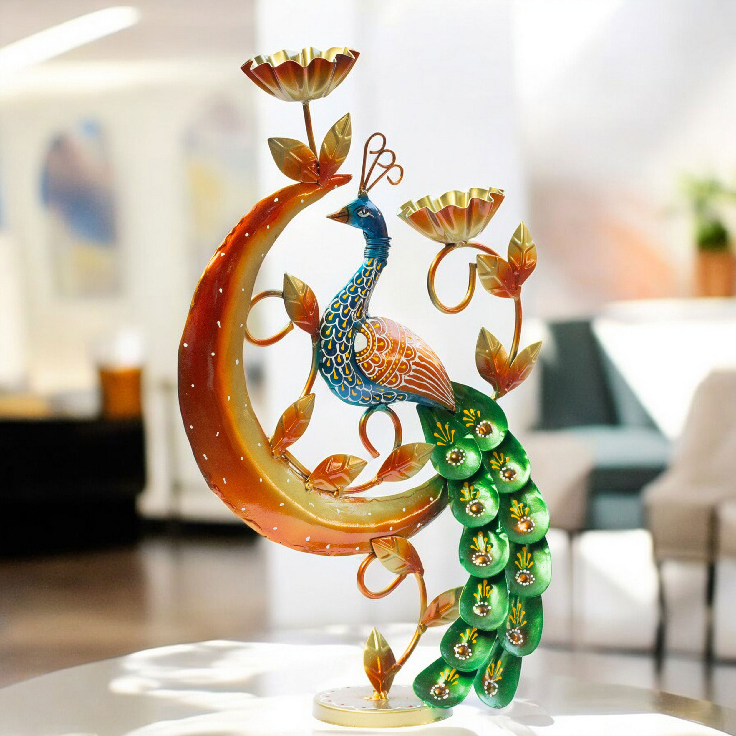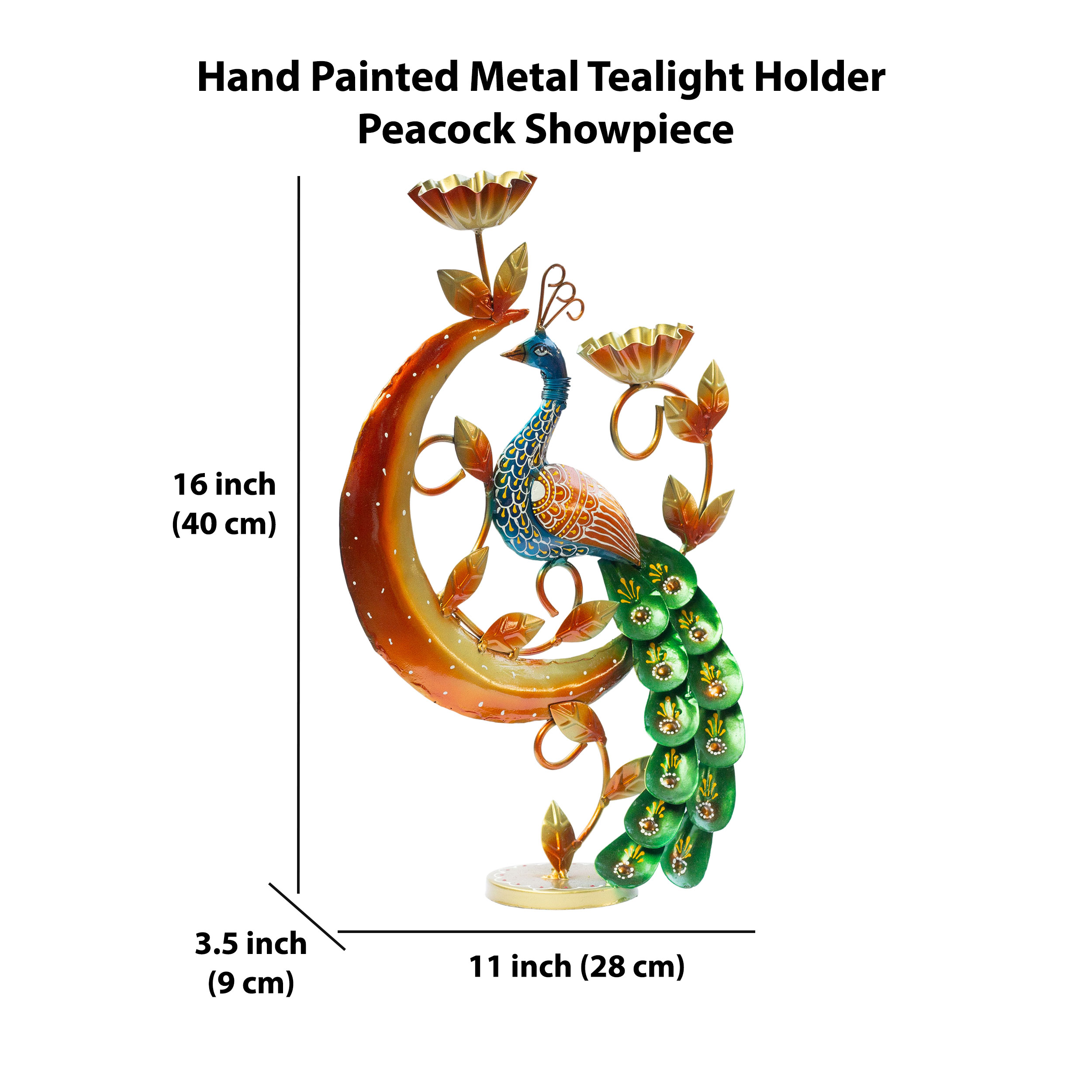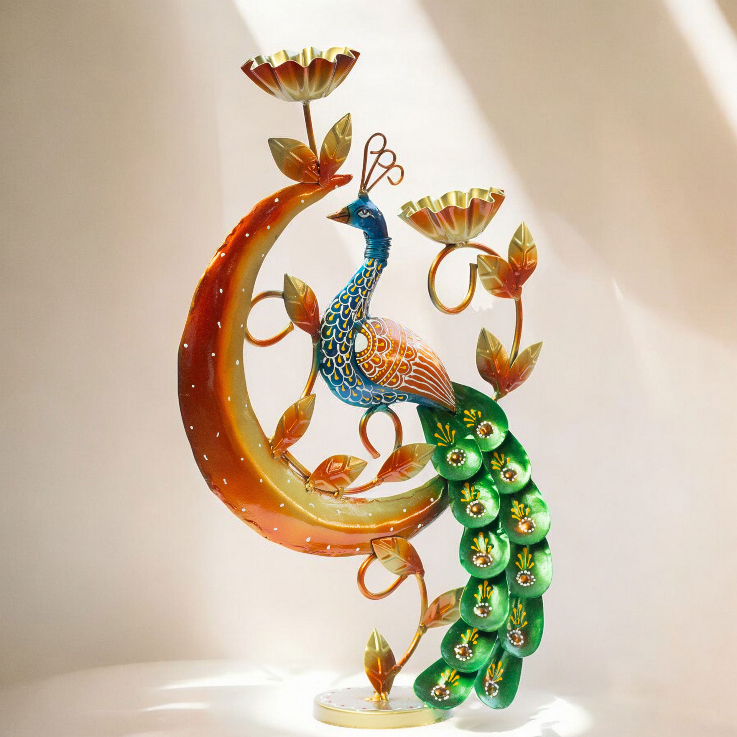 Made in the shape of a peacock with Rajasthani artwork and handpianted, this elegant candle holder enhances the look and feel of your home and is also a lovely gift item.