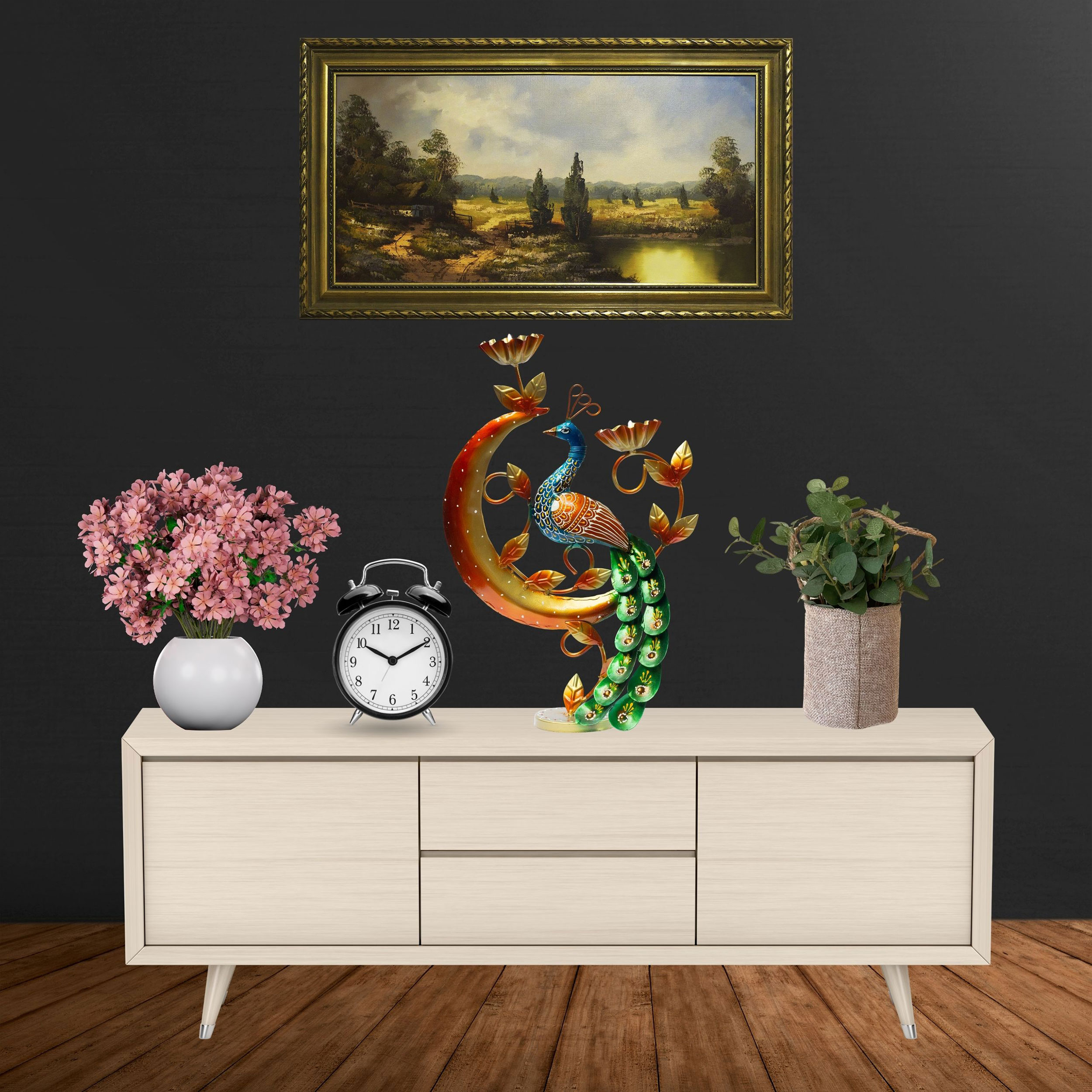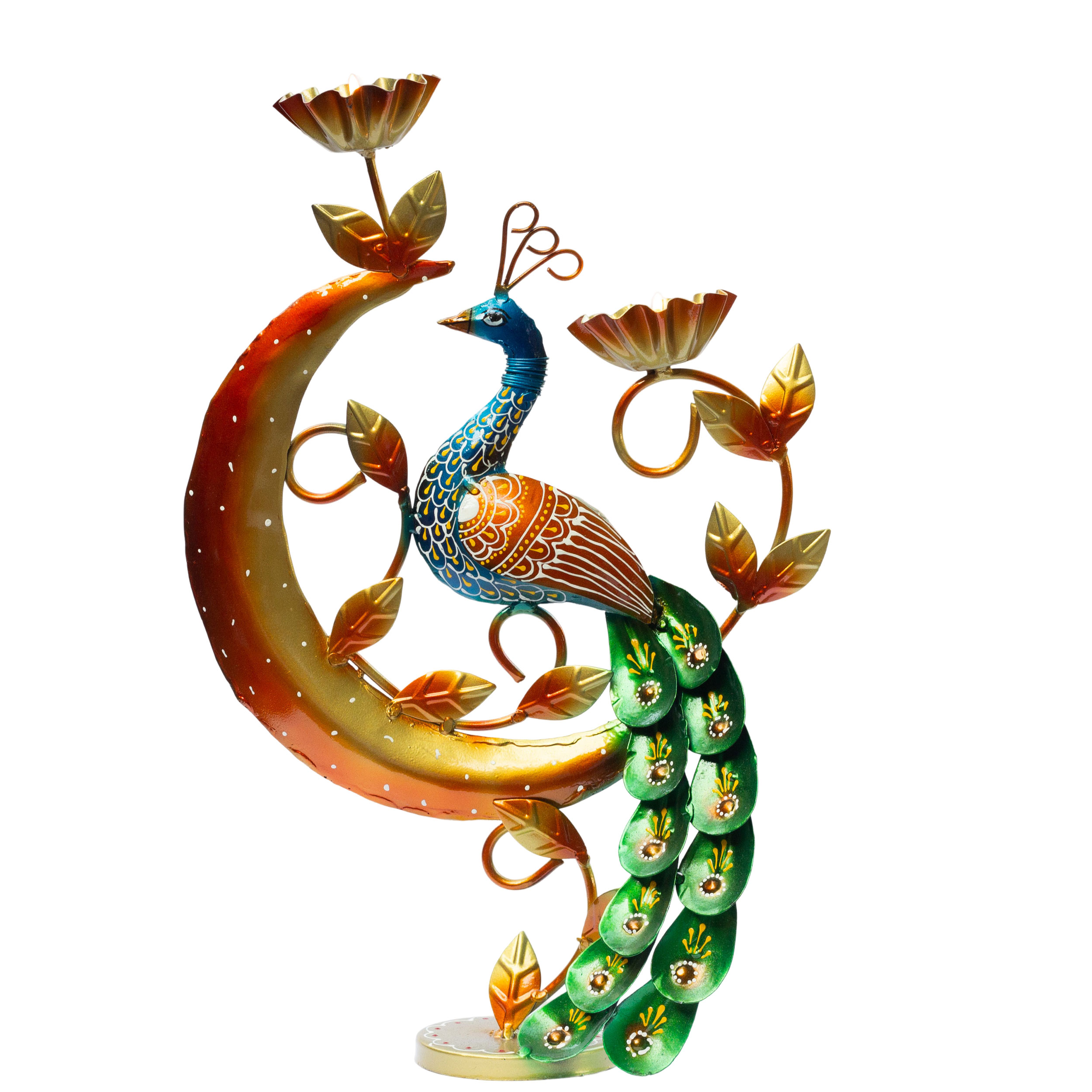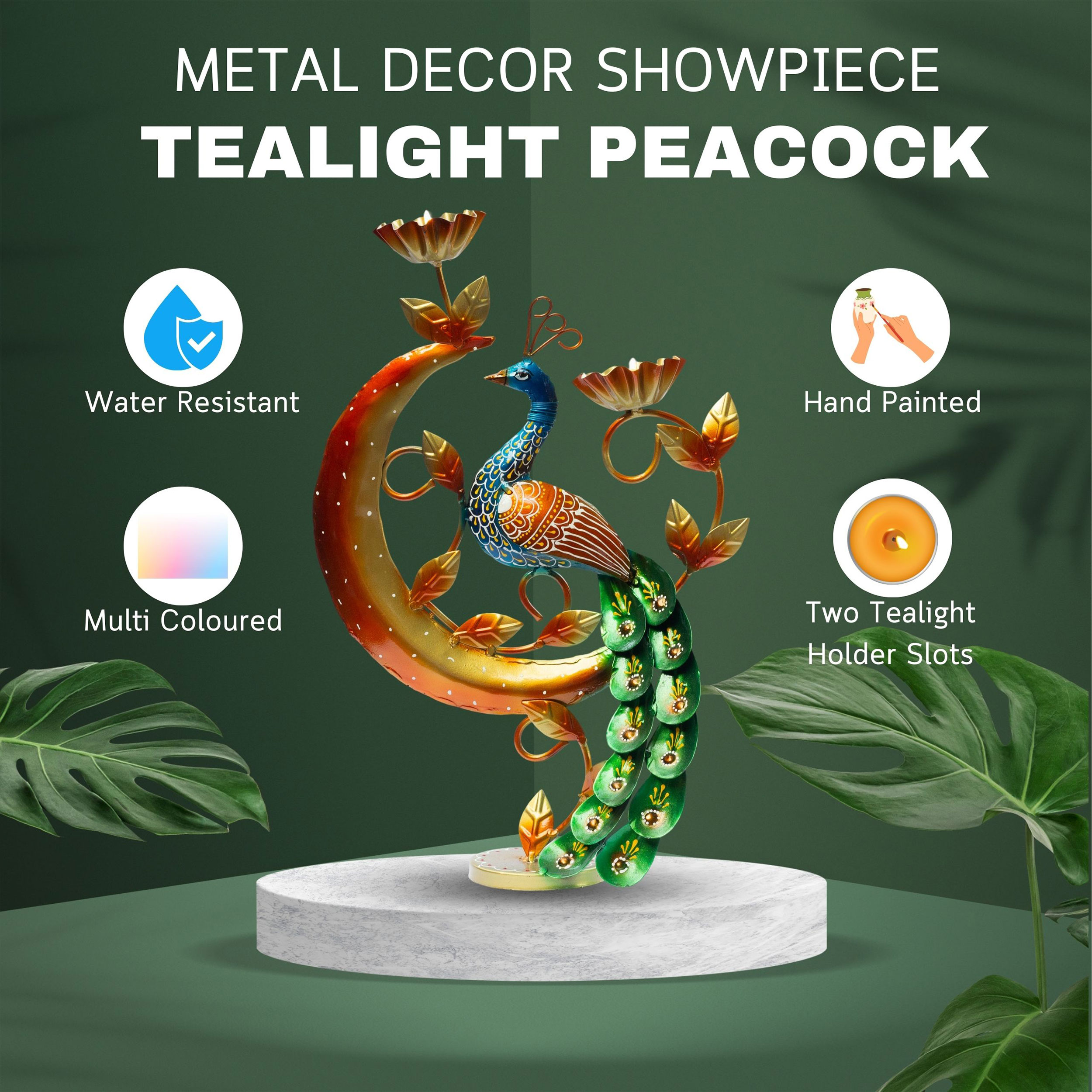 Made in the shape of a peacock with Rajasthani artwork and handpianted, this elegant candle holder enhances the look and feel of your home and is also a lovely gift item.