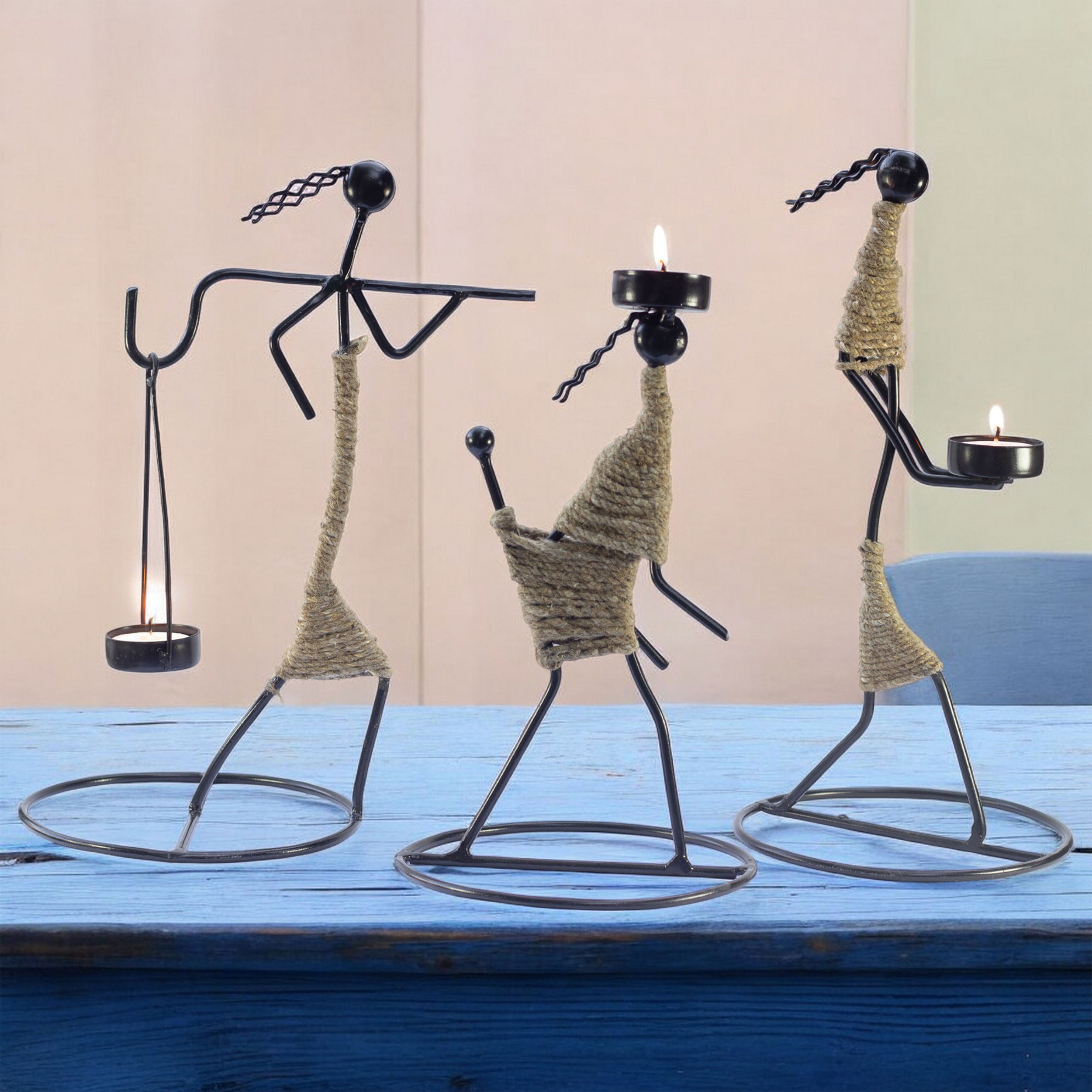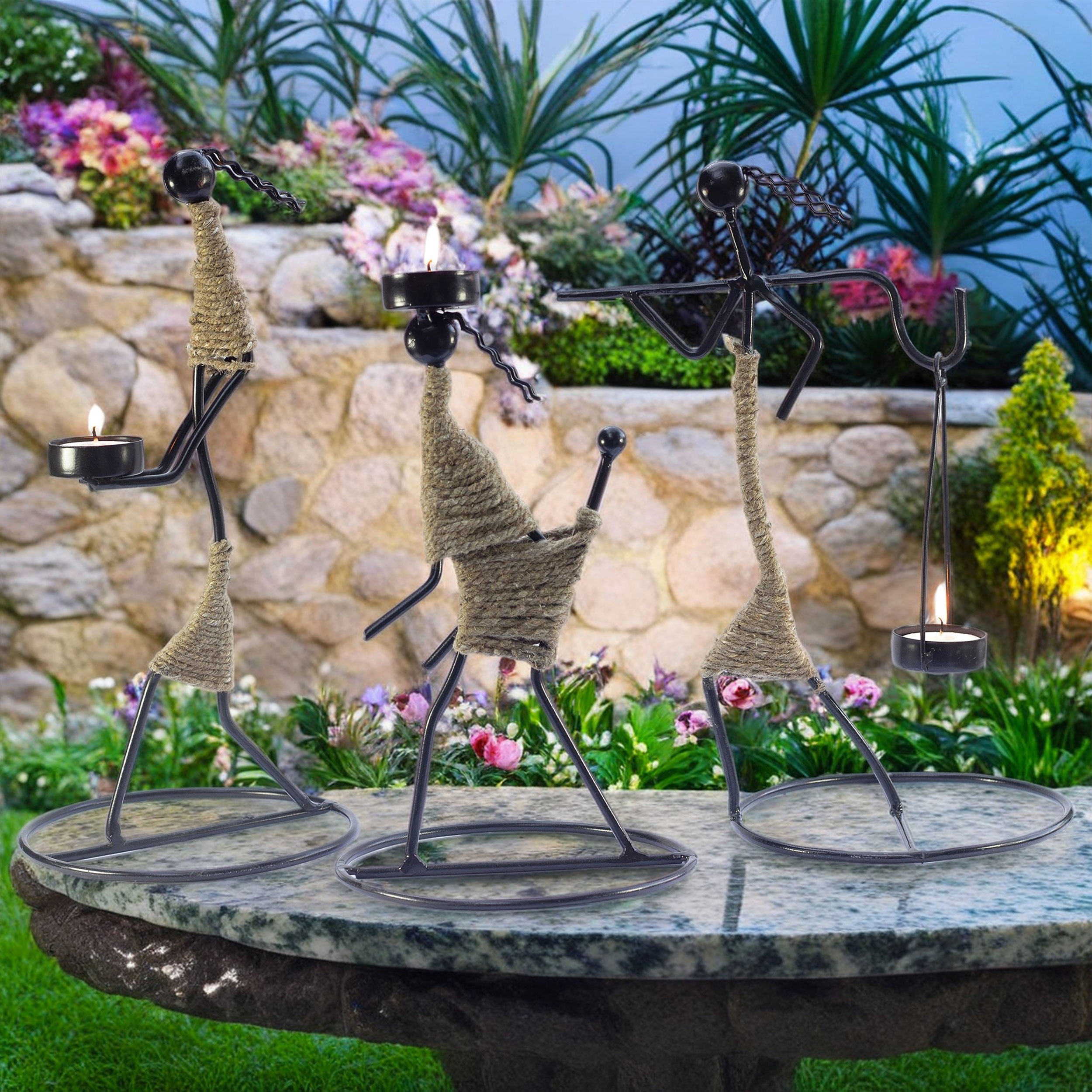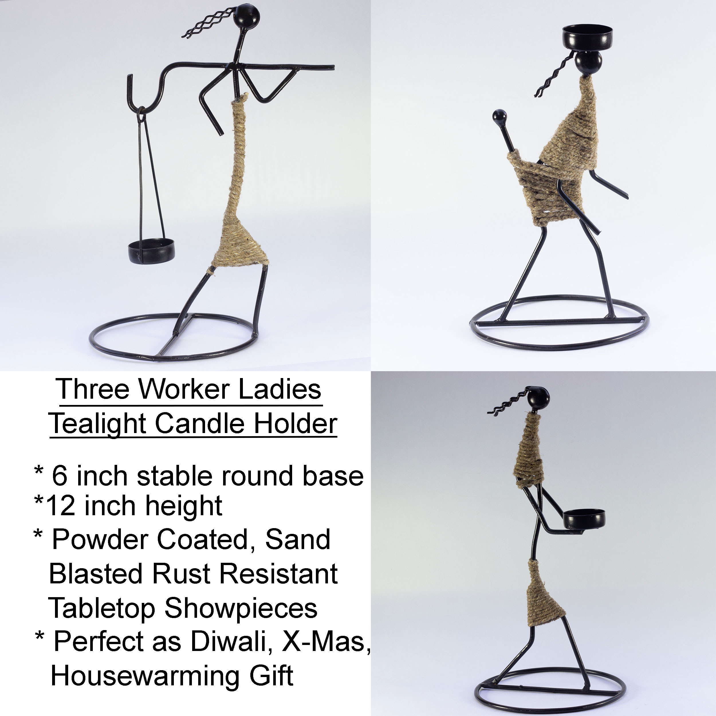 Unique Handcrafted Charm: Brighten your home with our exclusive set of three iron tealight holder figurines, each standing 12 inches tall with a sturdy 6-inch base. Designed for both aesthetic appeal and durability, these worker dolls are meticulously crafted from high-quality iron, powder-coated and sand-blasted for smoothness, then finished with a lacquer coating to resist rust and water, ensuring lasting beauty and shine.
