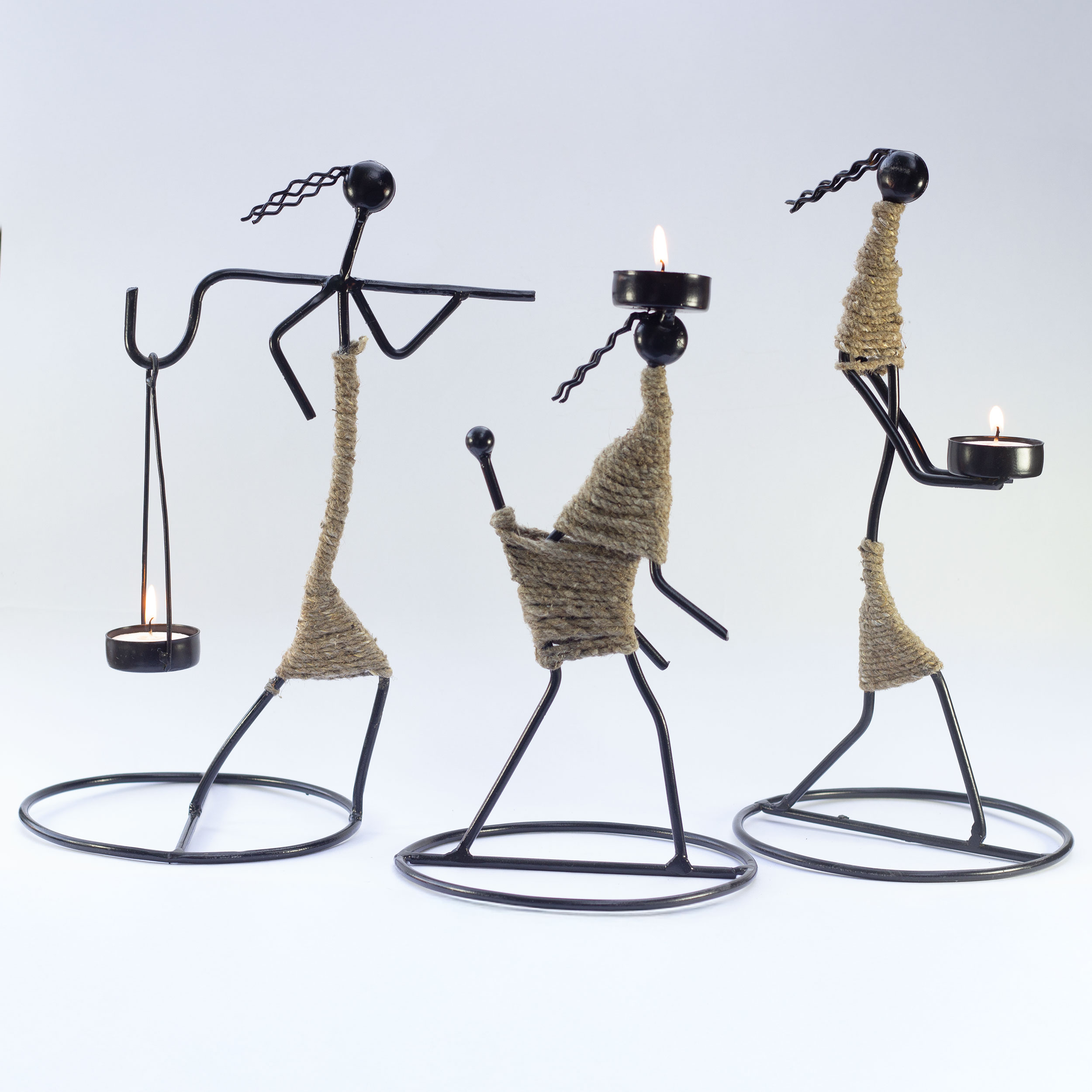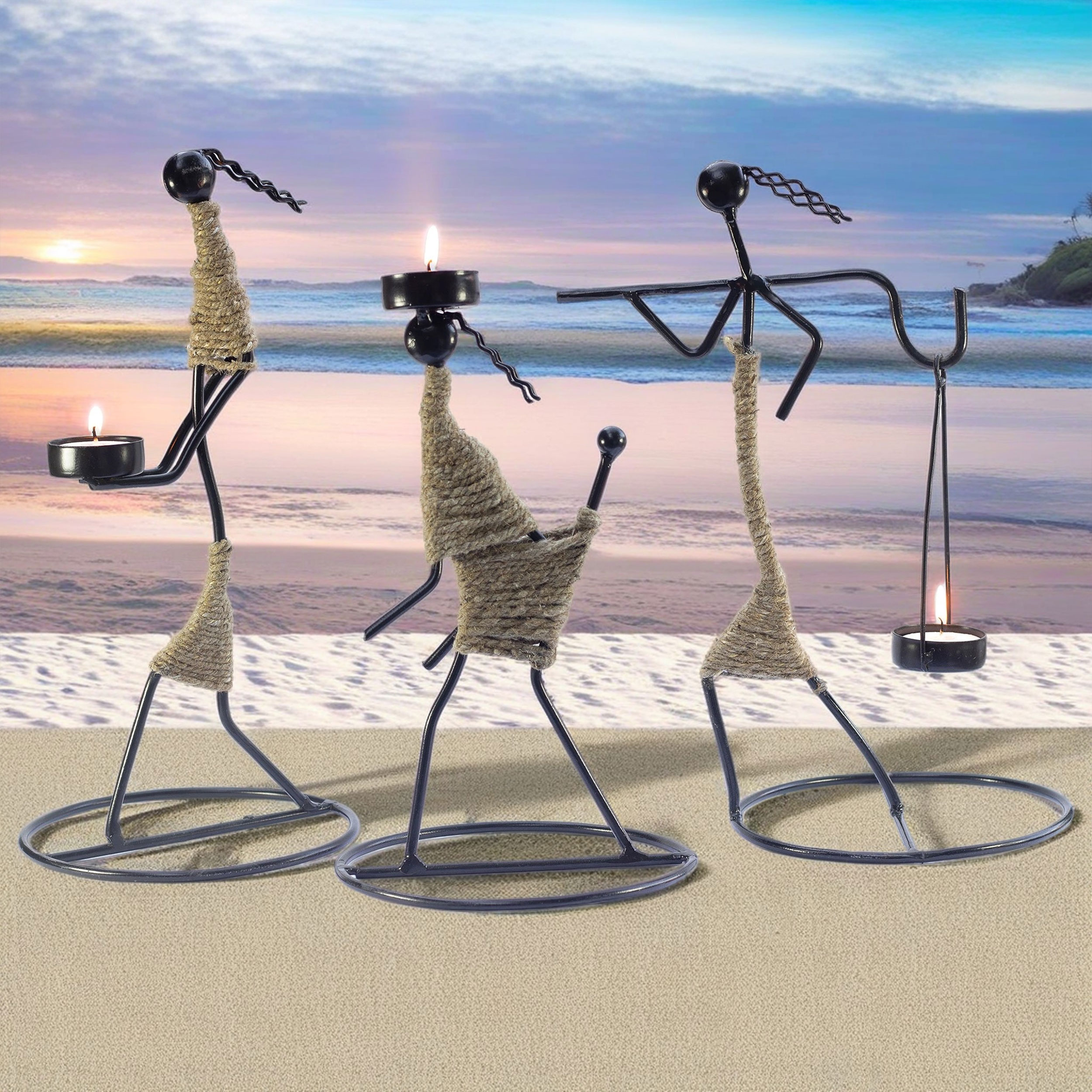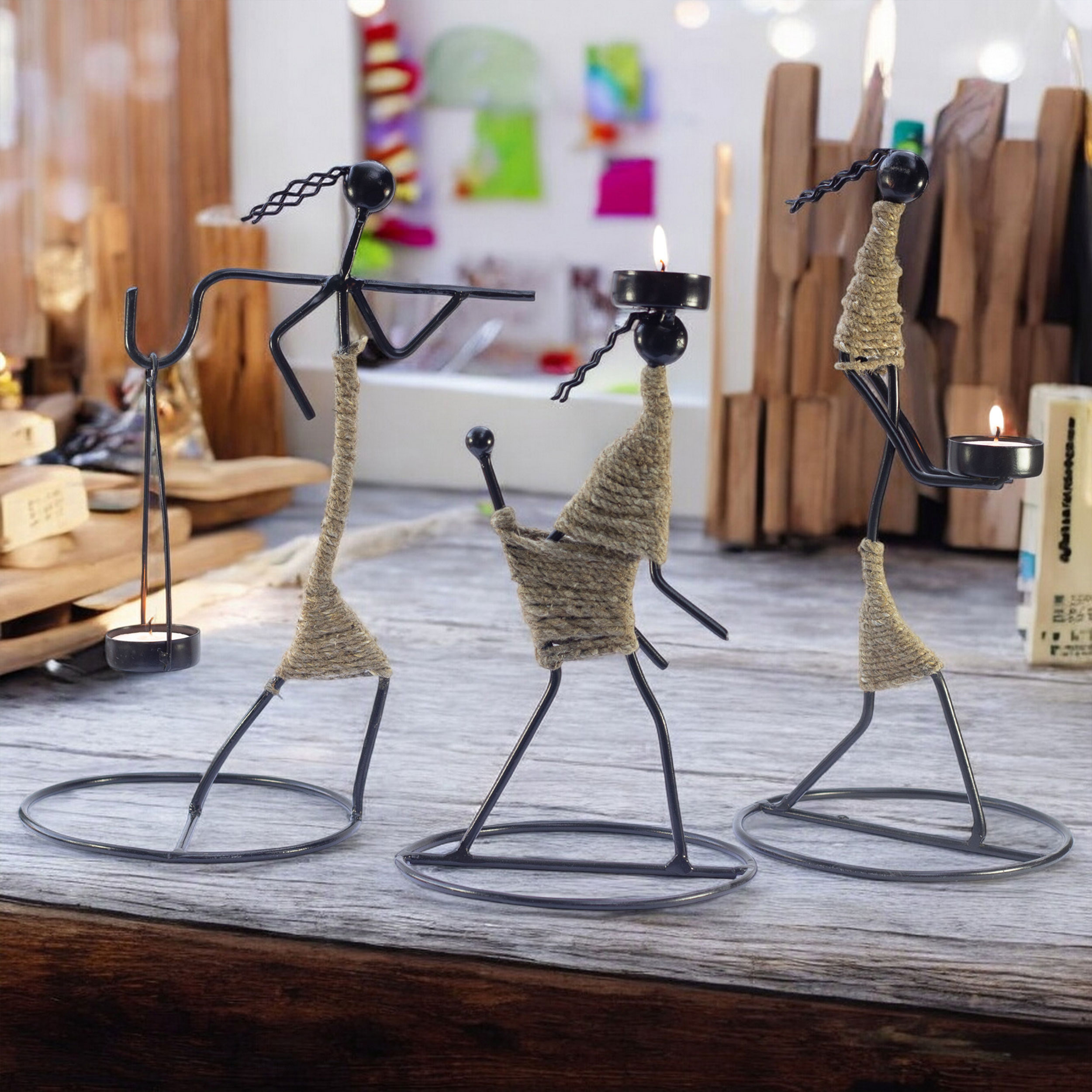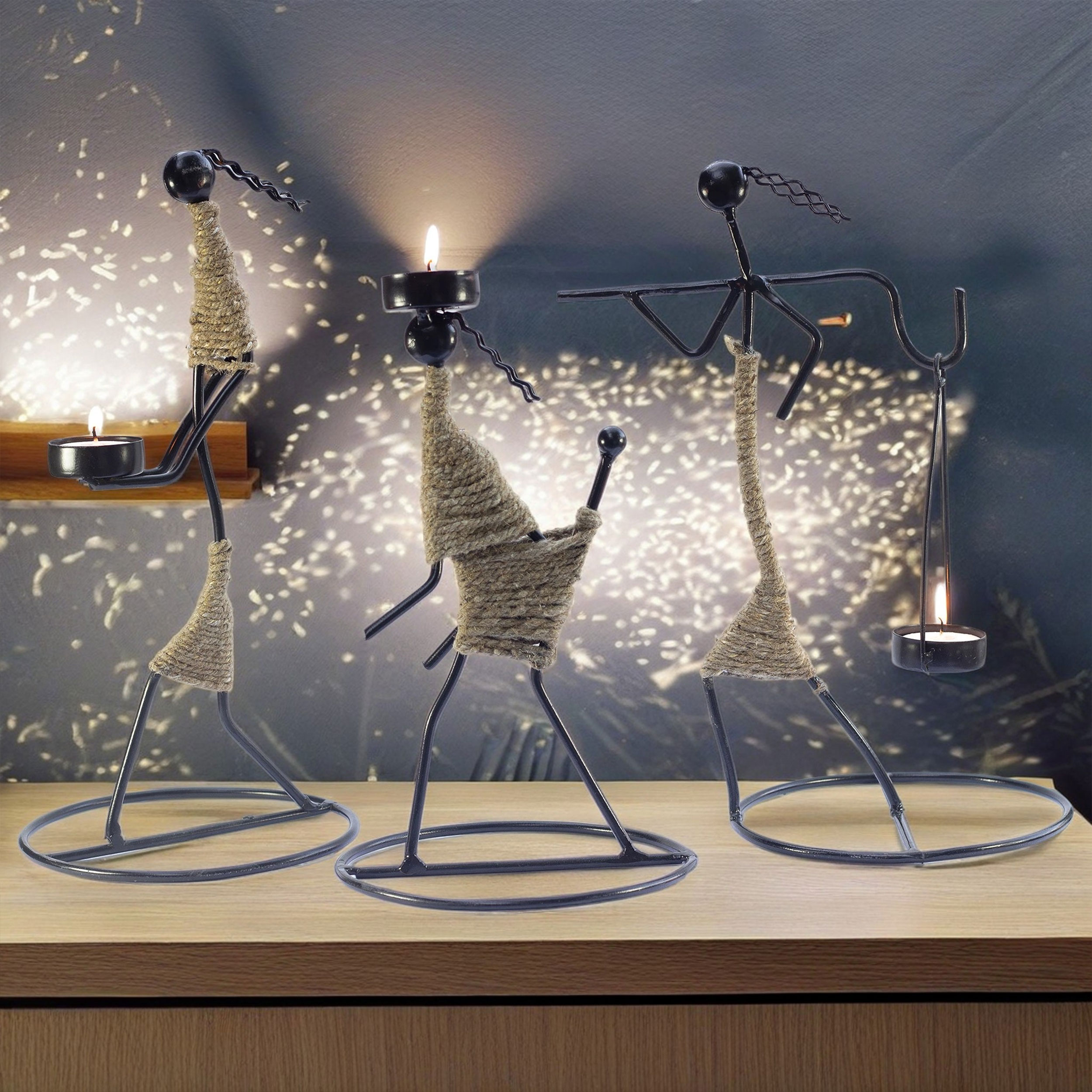 Unique Handcrafted Charm: Brighten your home with our exclusive set of three iron tealight holder figurines, each standing 12 inches tall with a sturdy 6-inch base. Designed for both aesthetic appeal and durability, these worker dolls are meticulously crafted from high-quality iron, powder-coated and sand-blasted for smoothness, then finished with a lacquer coating to resist rust and water, ensuring lasting beauty and shine.