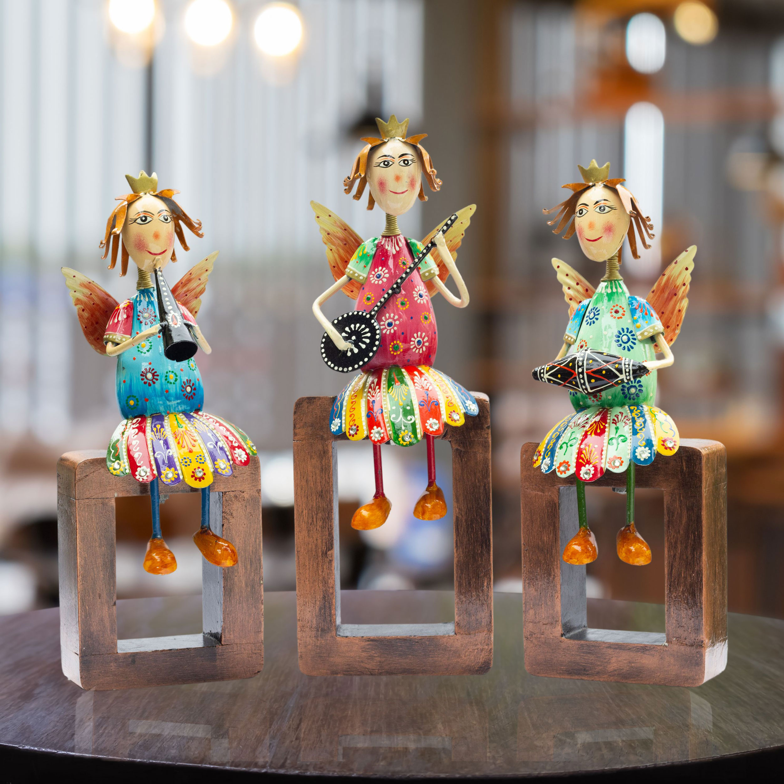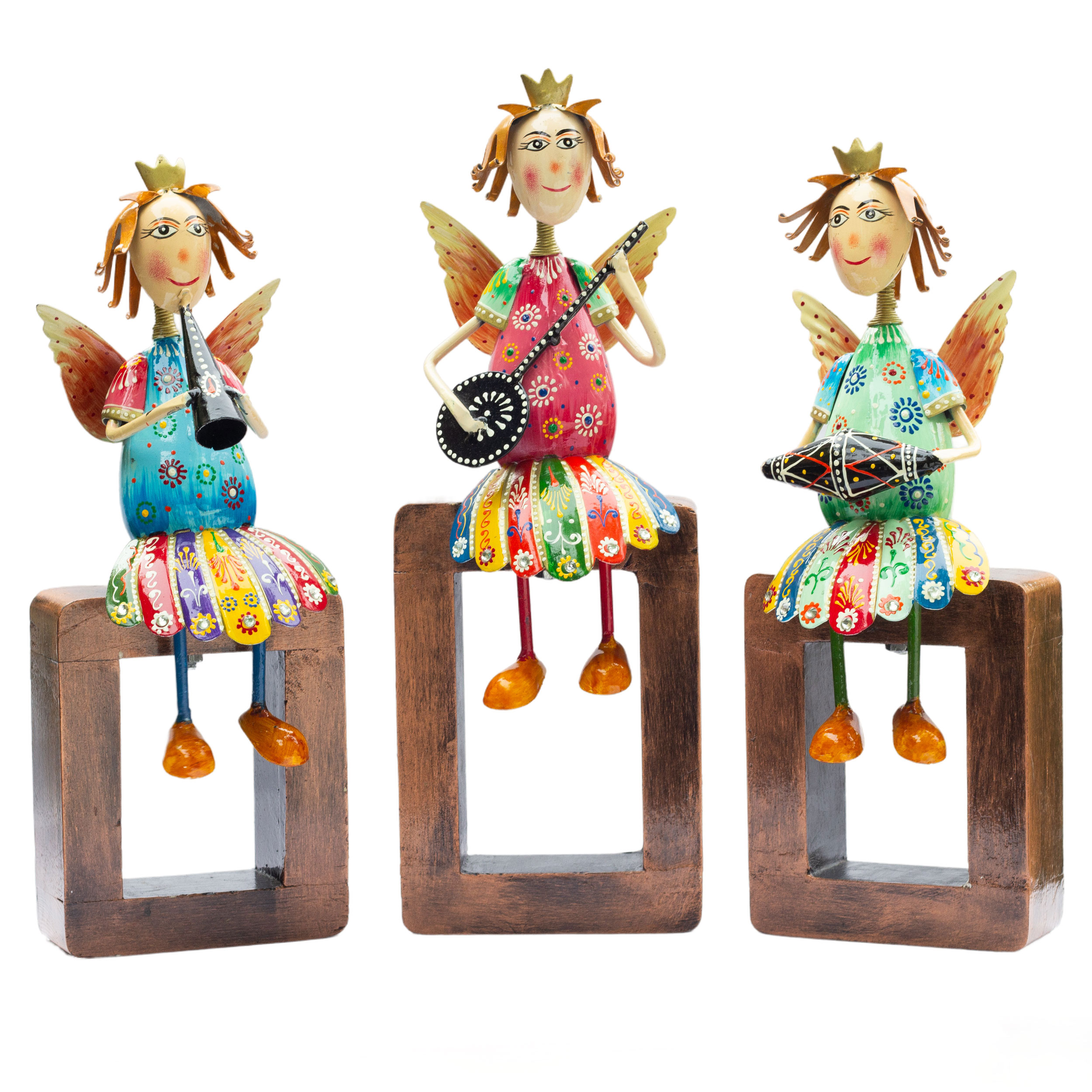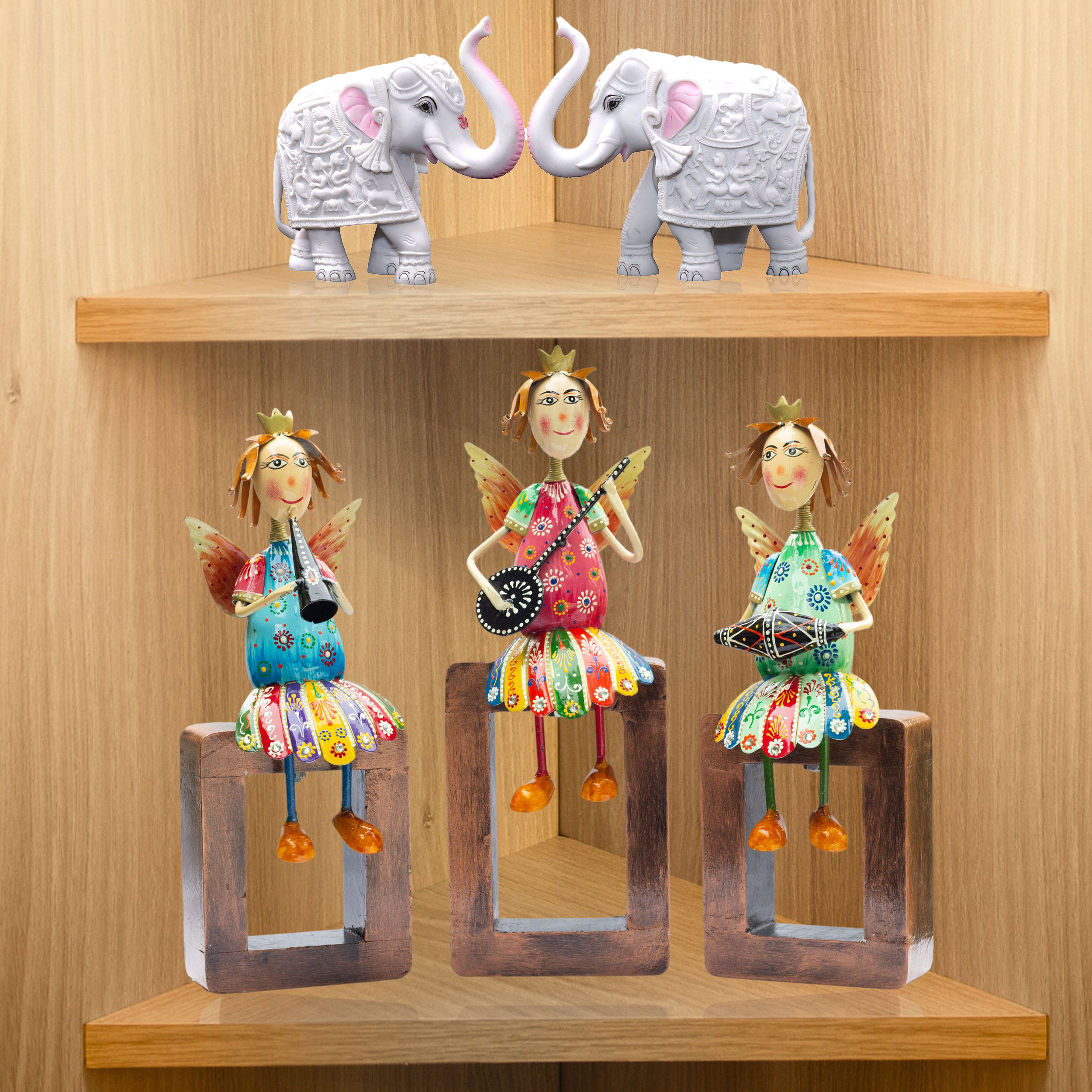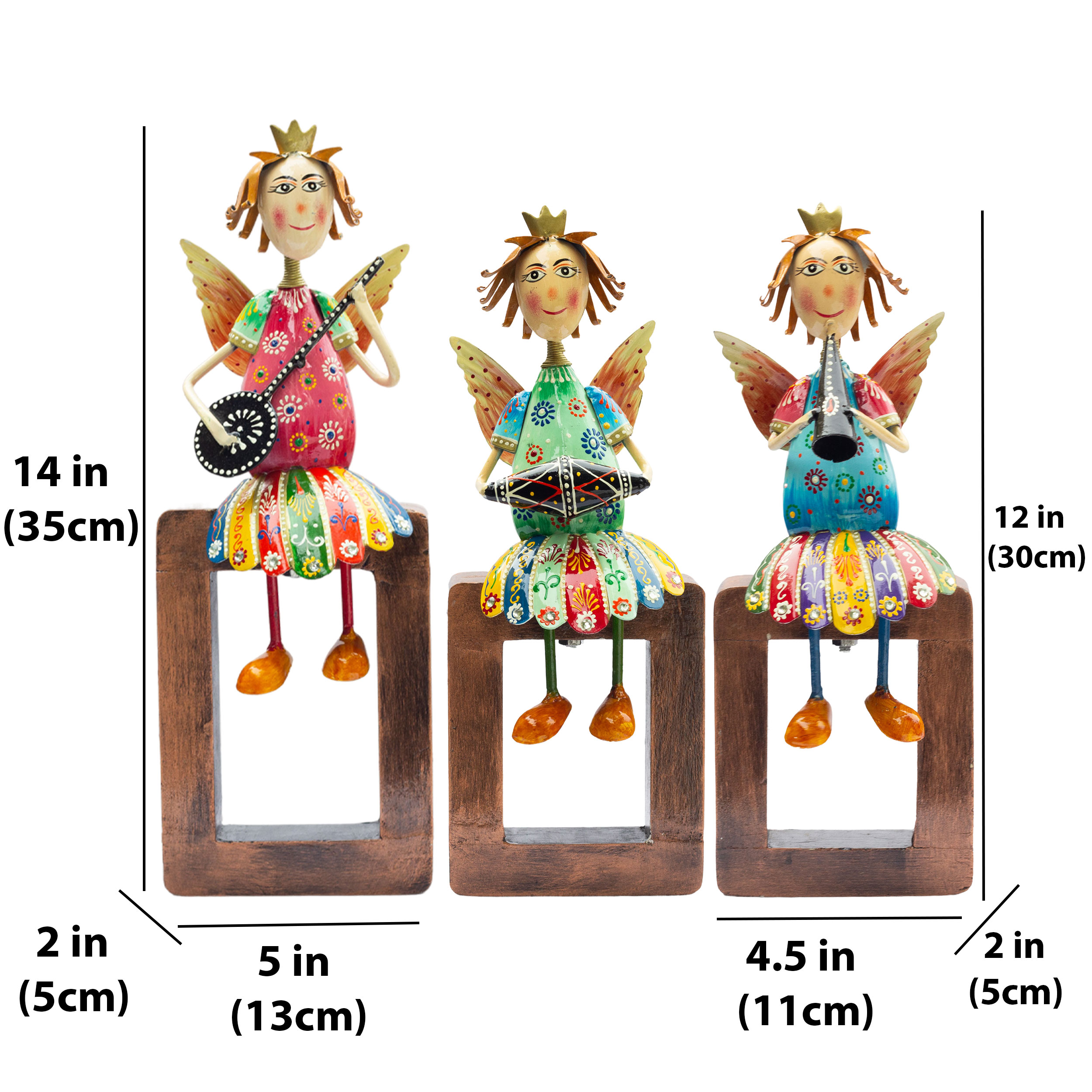 Handcrafted Artistry: Each angel statue is intricately carved from high-quality metal and features a sturdy wooden base, ensuring durability and a long-lasting finish. The fine craftsmanship highlights every delicate detail, from the angel’s wings to the musical instruments they play.