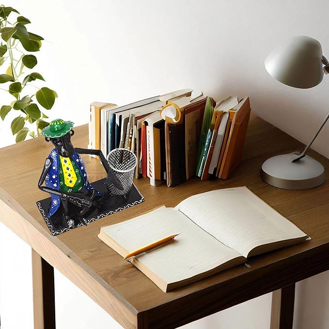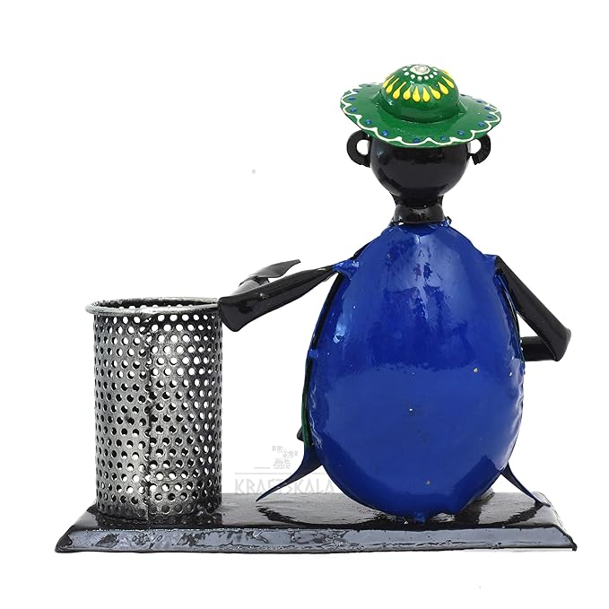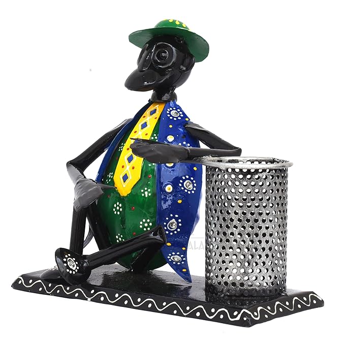 Introducing our exquisite handicraft wrought iron pen pencil stationery holder stand that doubles up to act as a home decor showpiece too. It is a stunning piece of art that adds elegance and charm to any space. This meticulously designed metal figurine statue showcases the rich heritage of Indian craftsmanship, making it a perfect choice for home decor, office decor, and gifting on special occasions like anniversaries and weddings.