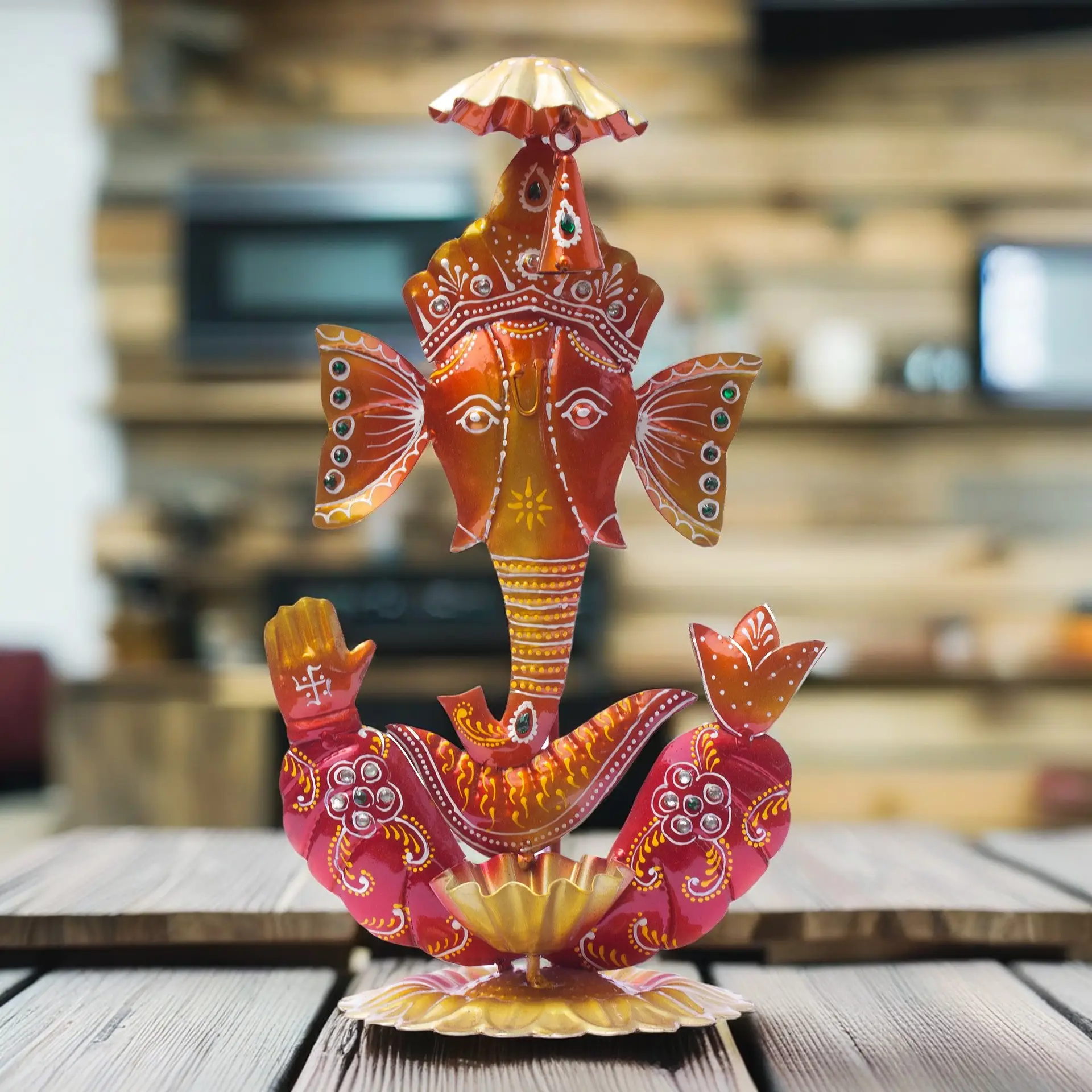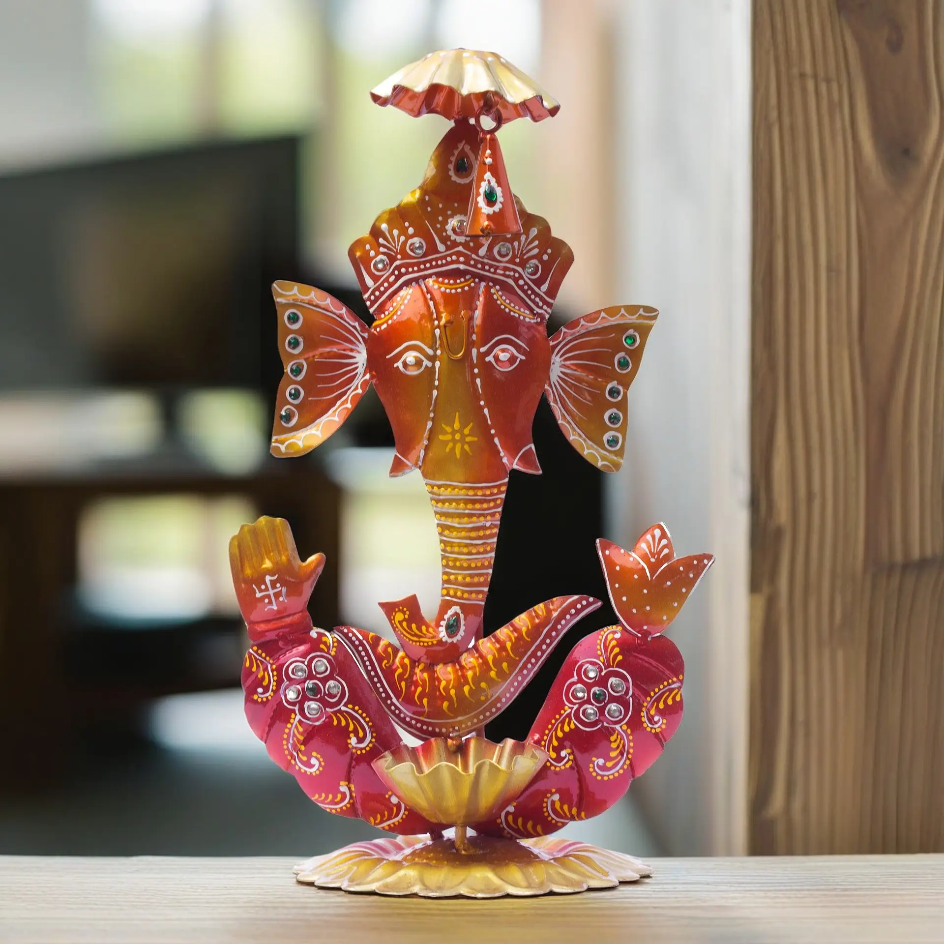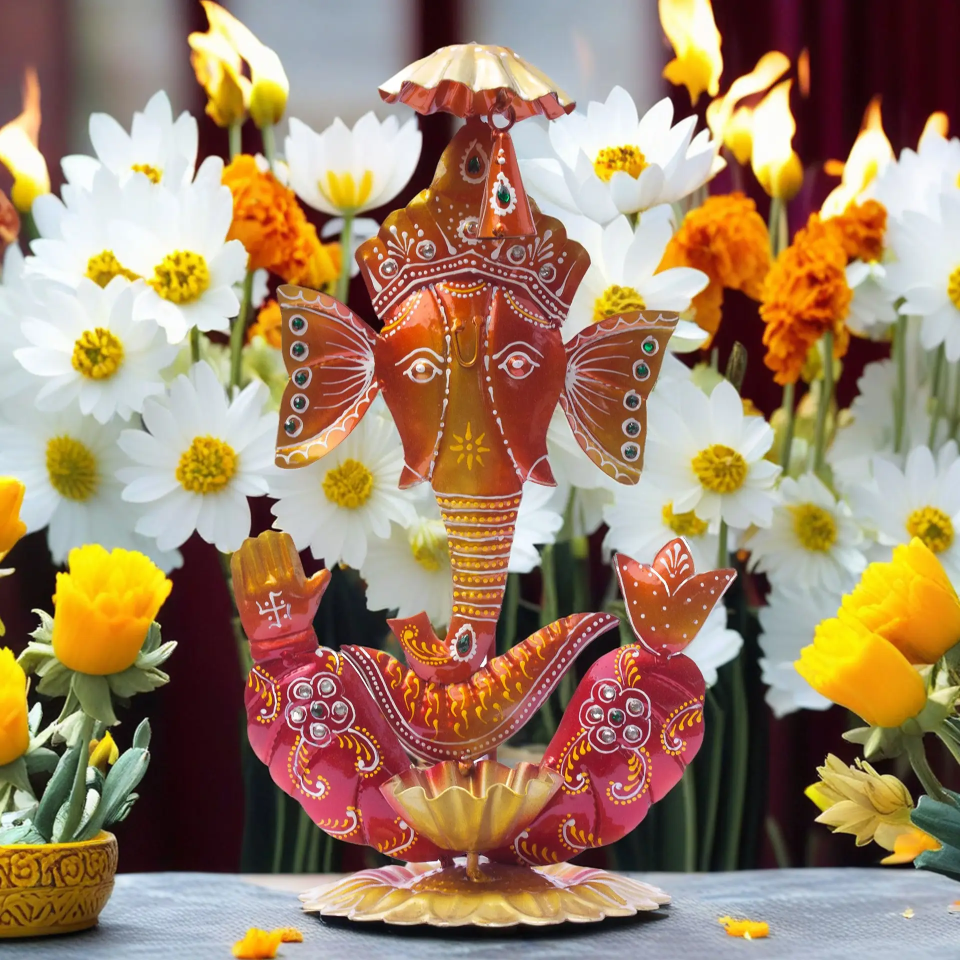 Handcrafted Excellence: Each diya holder home decor showpiece is meticulously handcrafted by skilled artisans from Rajasthan, known for their expertise in traditional ironwork. The intricate detailing and delicate designs make this Ganpati tea light holder showpiece quite attractive.