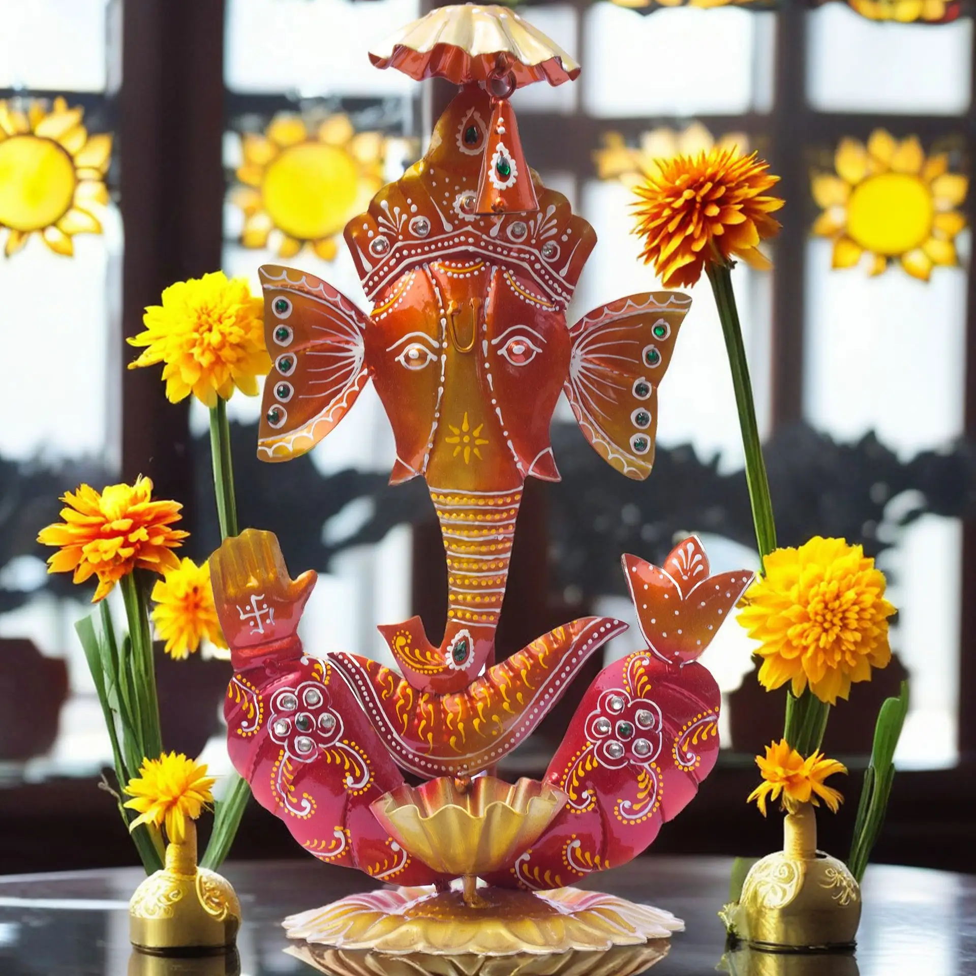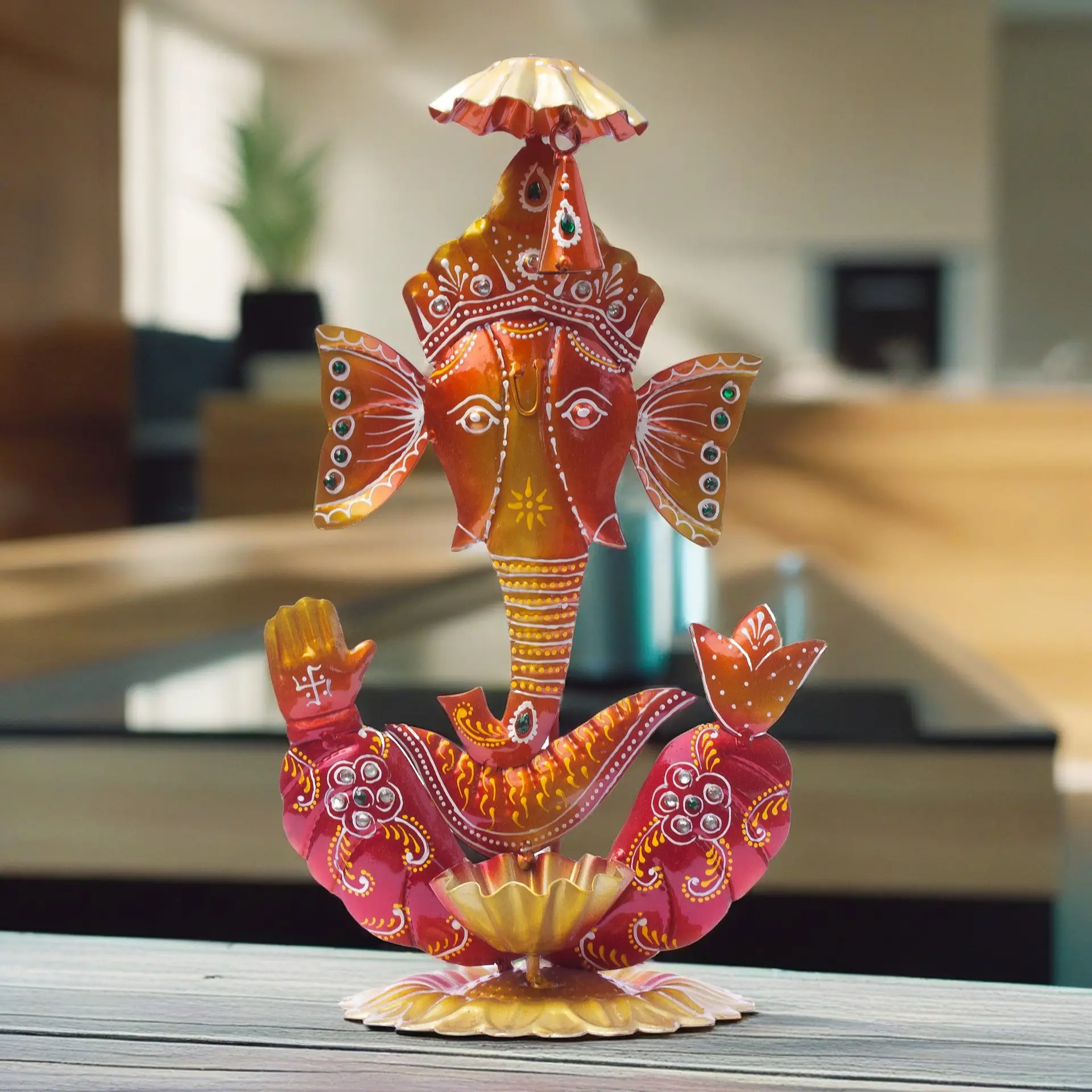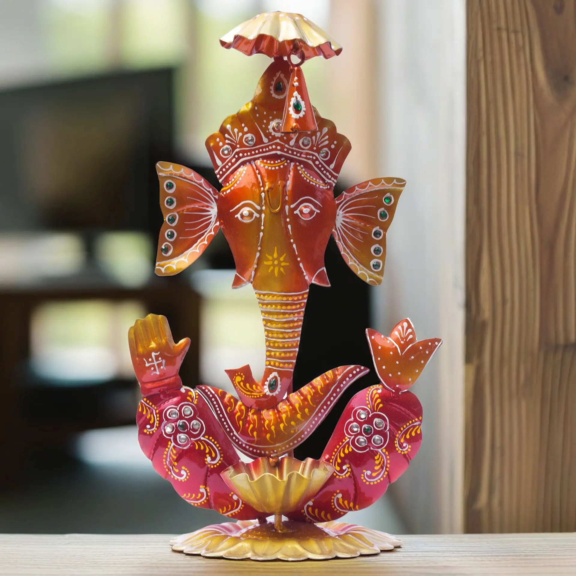 Handcrafted Excellence: Each diya holder home decor showpiece is meticulously handcrafted by skilled artisans from Rajasthan, known for their expertise in traditional ironwork. The intricate detailing and delicate designs make this Ganpati tea light holder showpiece quite attractive.