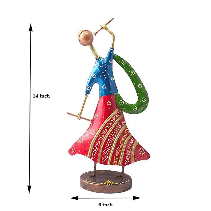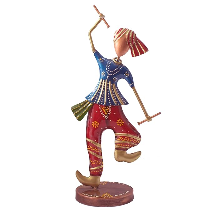 Handcrafted Gujarati dancing couple Wrought Iron Set of 2 colourful dandia dancers for Home and Living Room Decor – Perfect Anniversary or Wedding Gift