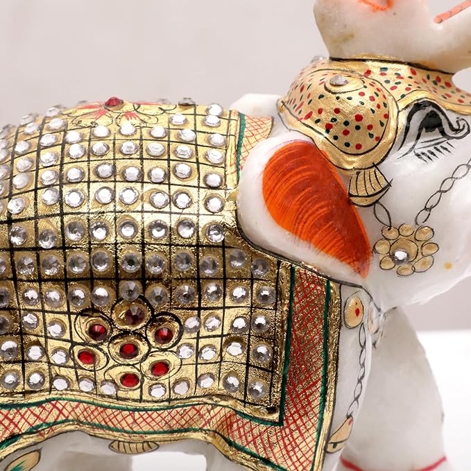 Introducing our exquisite elephant statue Rajasthani marble handicraft, a truly captivating and elegant decorative piece designed to add a touch of timeless beauty to your home or office. Handcrafted from the finest quality Makrana marble, renowned for its purity and pristine white appearance, this exceptional piece of art is a testament to skilled craftsmanship and Indian heritage.