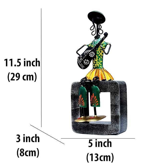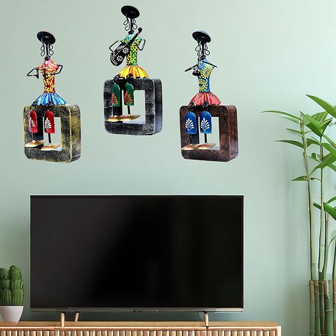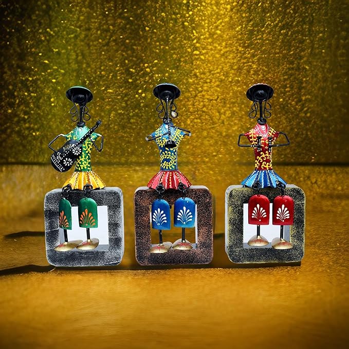 Handcrafted Excellence: This is a set of 3 handcrafted and beautifully coloured female musicians which is hand painted by skilled artisans from Rajasthan, known for their expertise in traditional ironwork. The intricate detailing and delicate designs make this showpiece a wonderful addition to your living room showcase, bedroom wall or office desk.