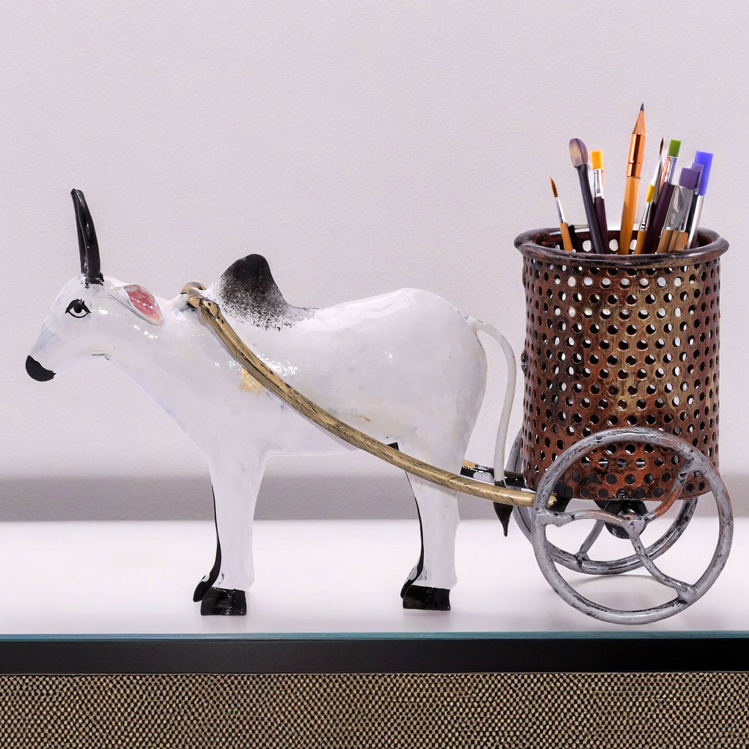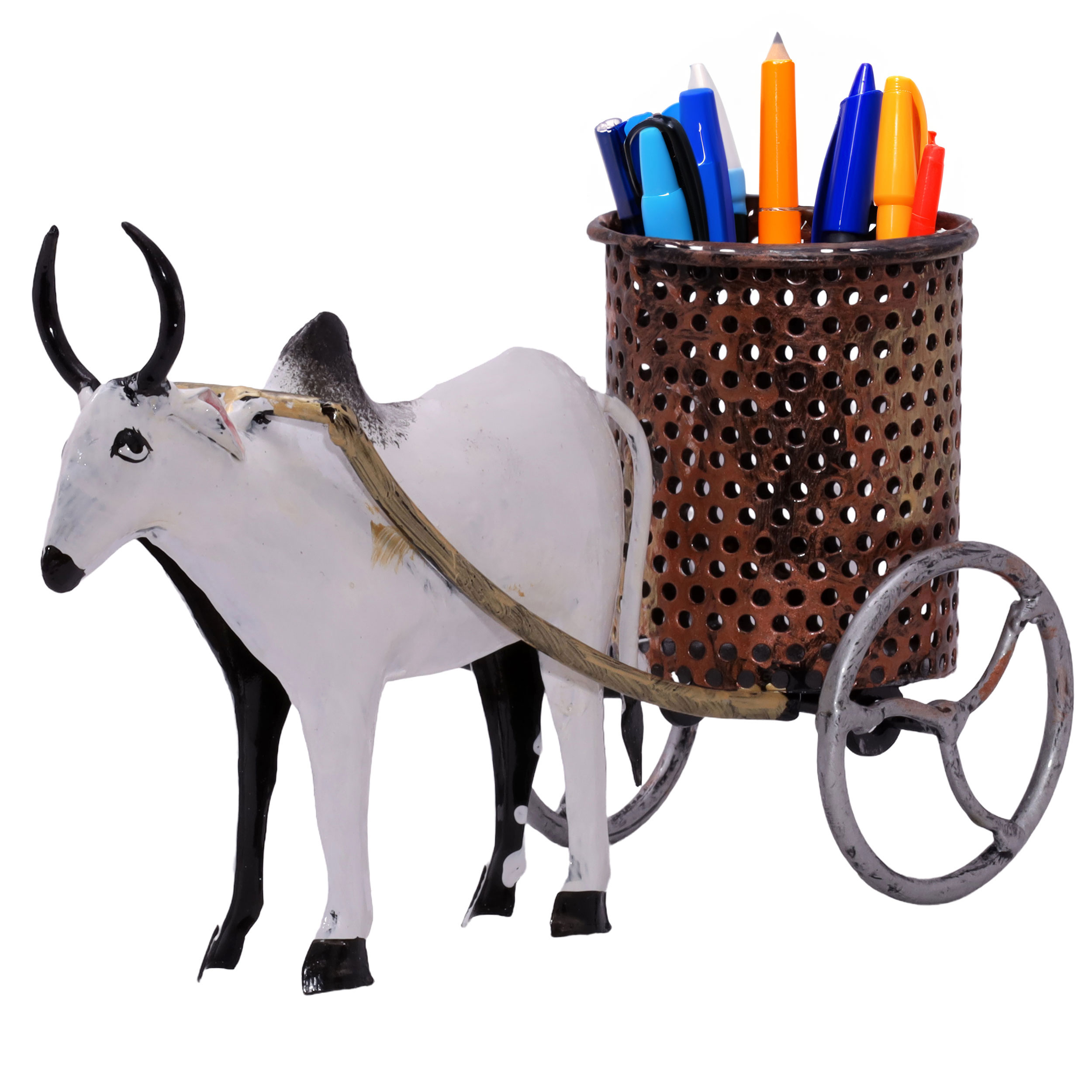 Bullock Cart Shape Pen Holder Pencil Stationery Organiser Office Supplies Holder for Work Desk, Study Table, Living Room Showpiece Decor