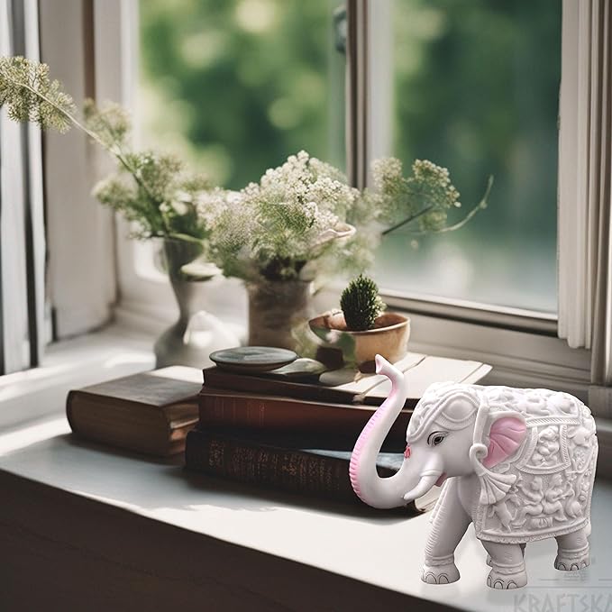 Measuring 4 inches by 5 inches by 2 inches and weighing approximately 500 gms, this big size elegant elephant showpiece carries profound significance. In your home, position it strategically for positive energy—facing away from the door for luck or towards it for protection. In an office, let it exude wisdom and power, energizing your workspace.