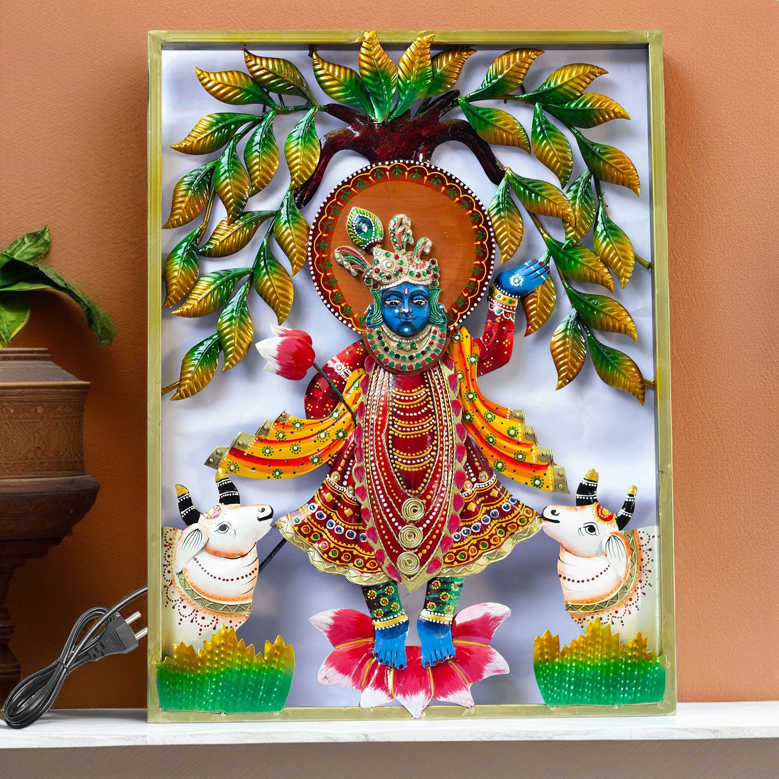 Lord Shrinathji Iron Metal Wall Décor (24 x 18 x 2 Inches) – Vibrant Krishna Artwork with LED Backlight for Home & Gifting