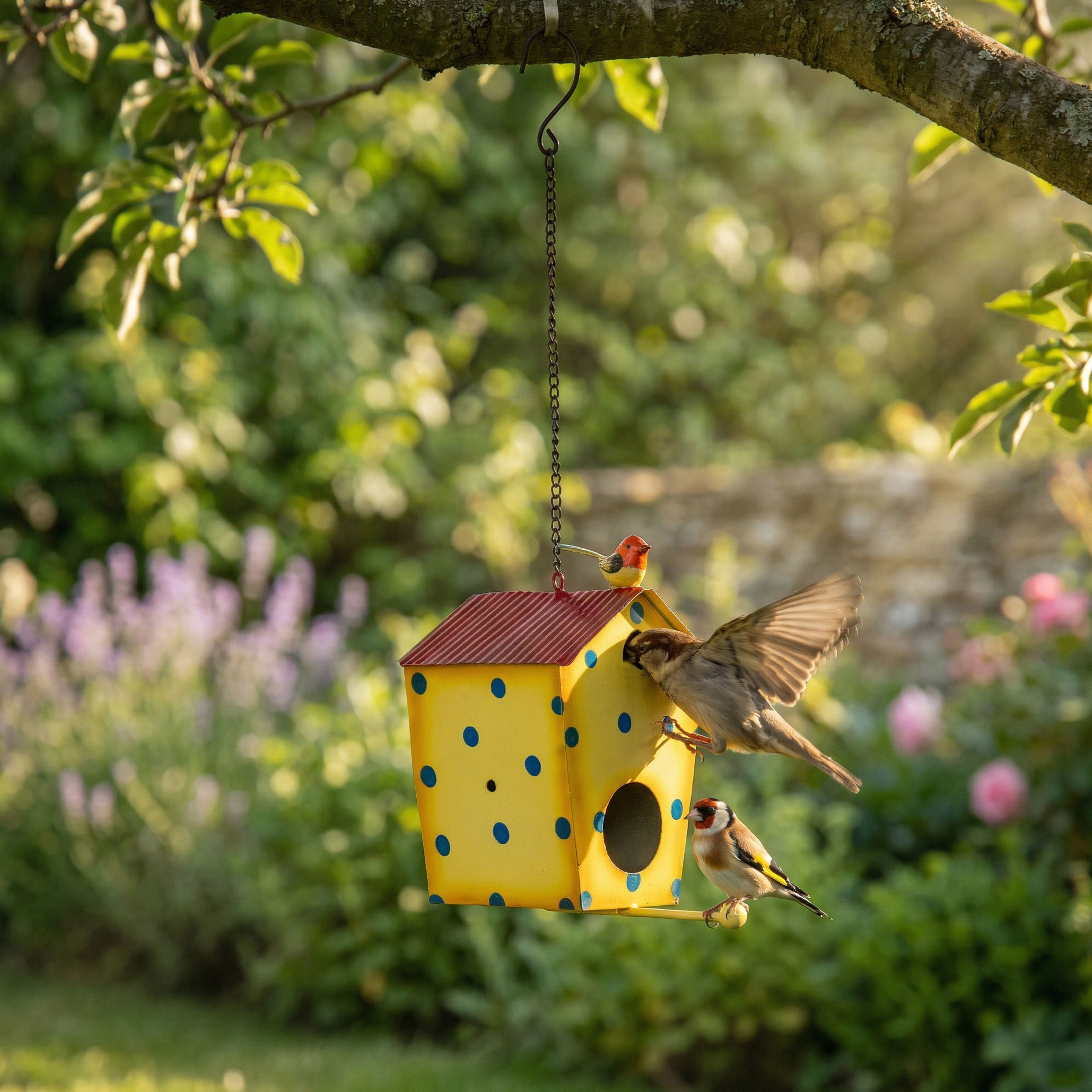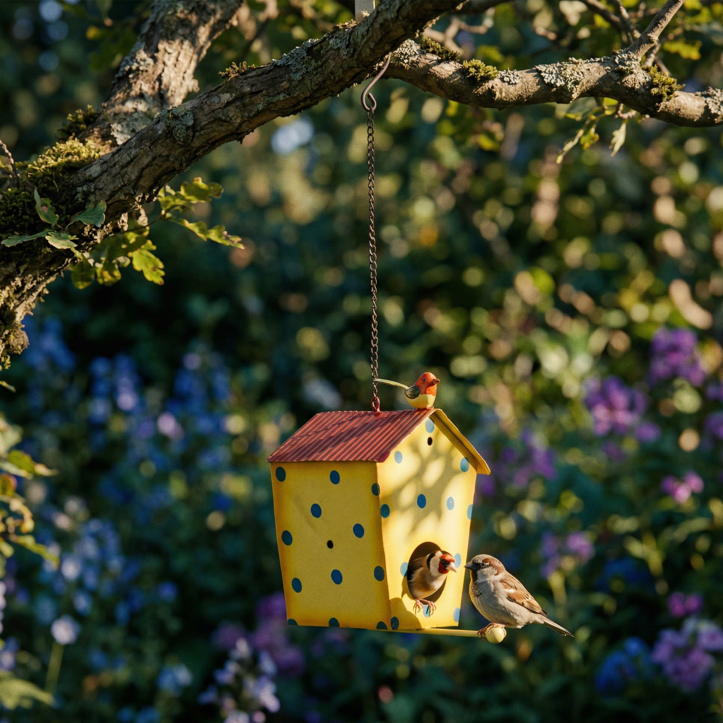 Enhance your garden or balcony with this beautifully crafted metal bird house that combines decorative charm with practical functionality. Designed to attract small birds while adding a vibrant touch to your outdoor space, this hanging bird nest creates a lively and natural environment around your home.