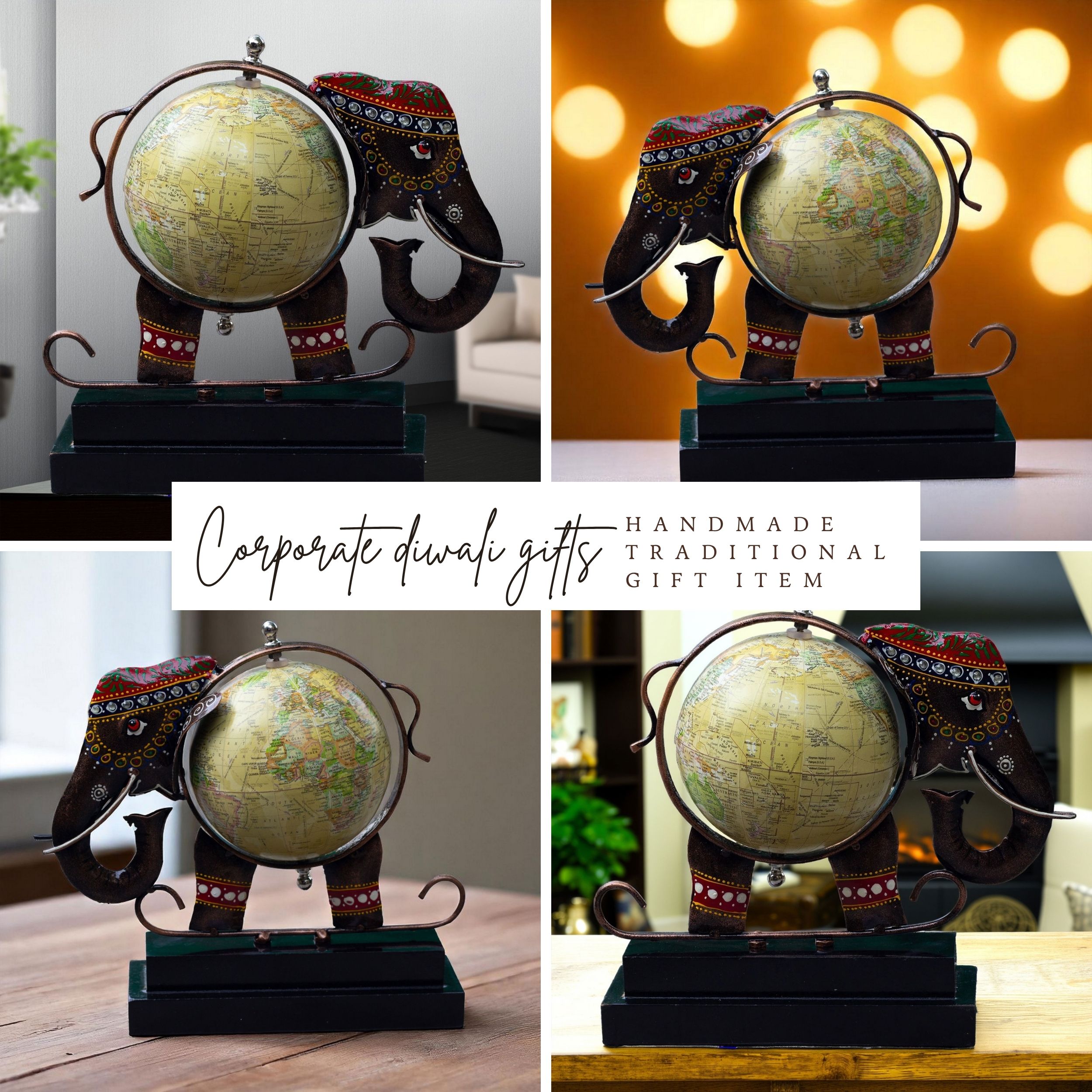 Elephant showpiece for home decor / Globe for study table / Corporate Diwali Gift Item