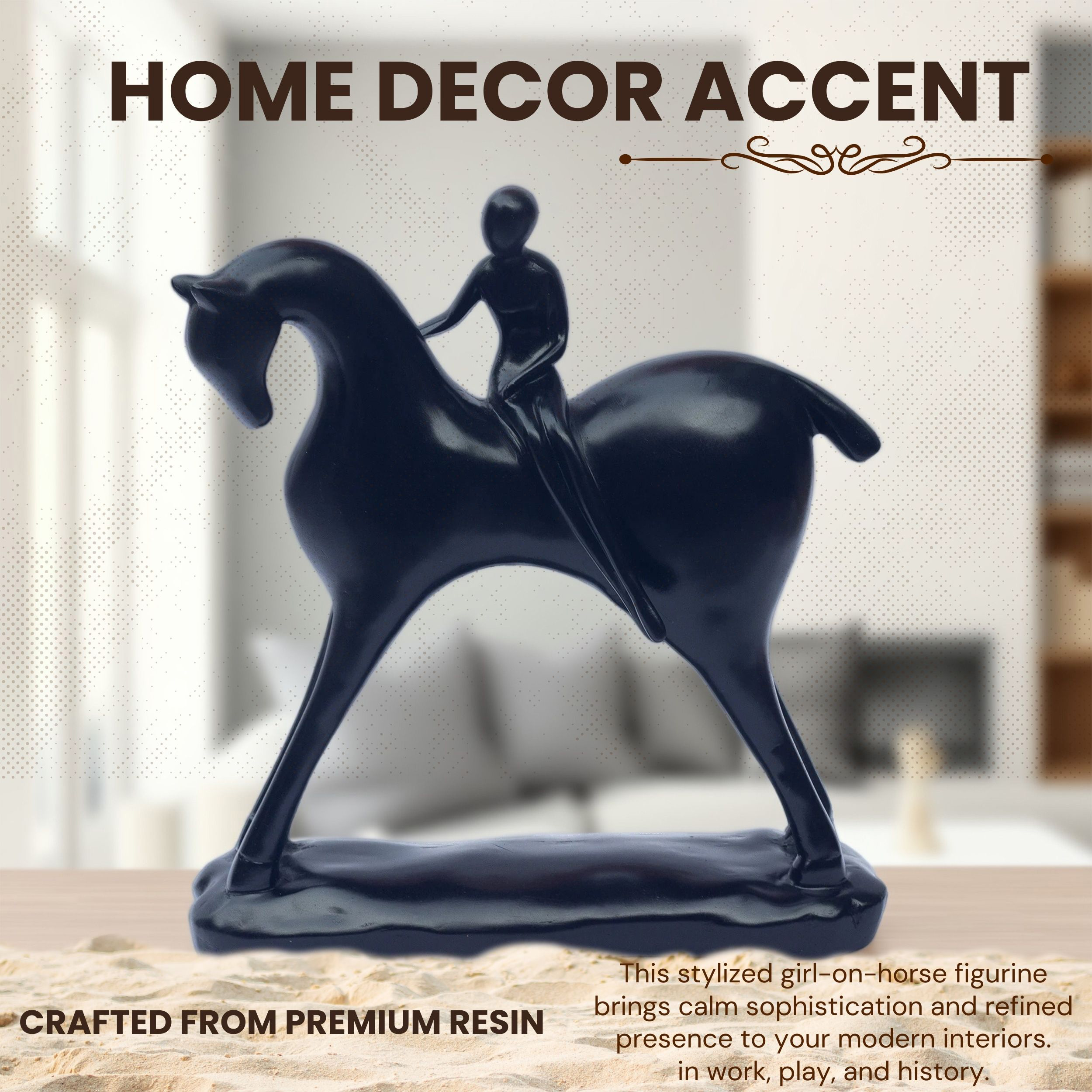 Girl on Horse Black Resin Minimalist Home Decor Figurine