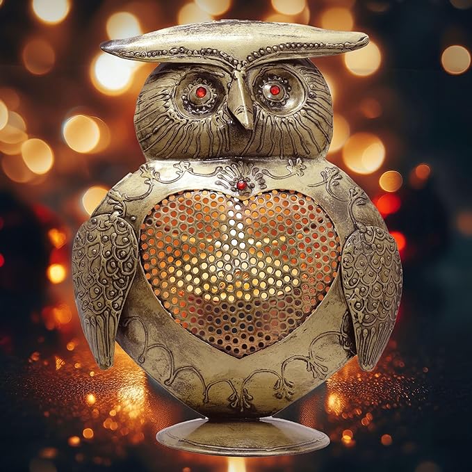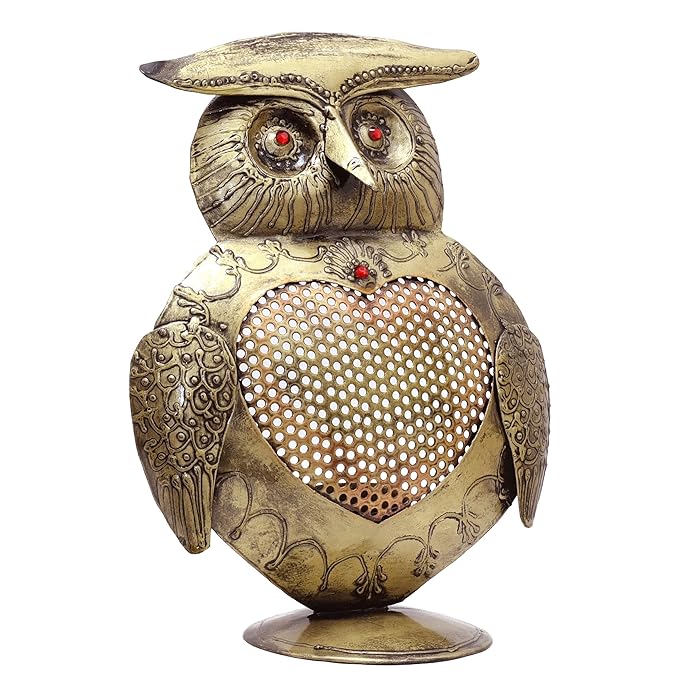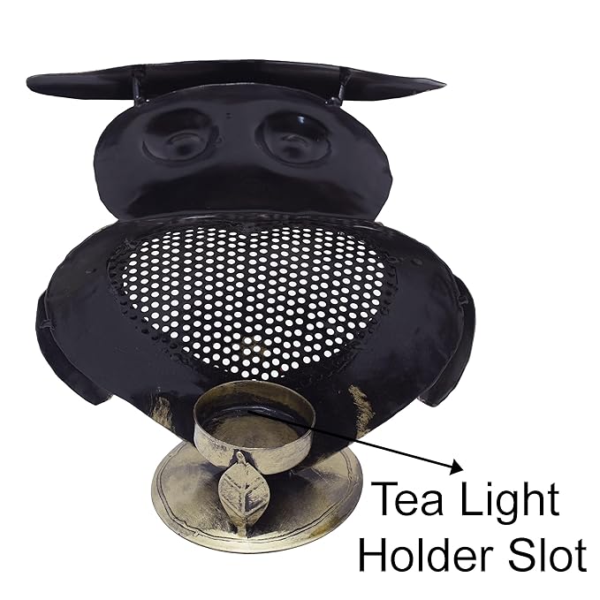 Immerse yourself in the artistry of our iron metal tealight candle holder, meticulously handcrafted with precision and care. This decorative owl tabletop antique finish tealight showpiece can hold 1 candle, elevating your home decor.