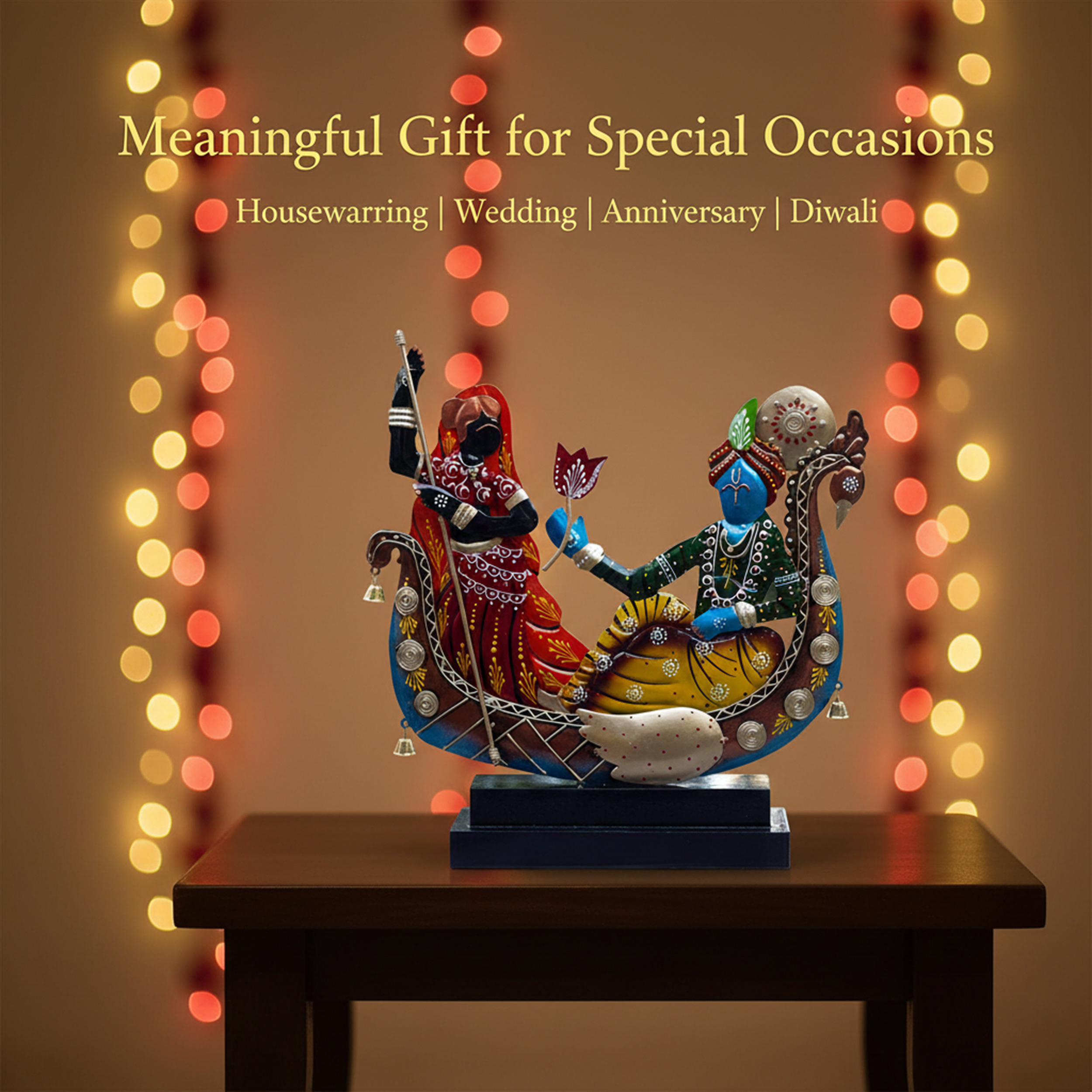 An excellent gift choice for housewarming, weddings, anniversaries, Diwali, Janmashtami, birthdays, and festive occasions, this Radha Krishna boat showpiece conveys blessings, devotion, and heartfelt emotions—making it a meaningful and timeless decor addition.