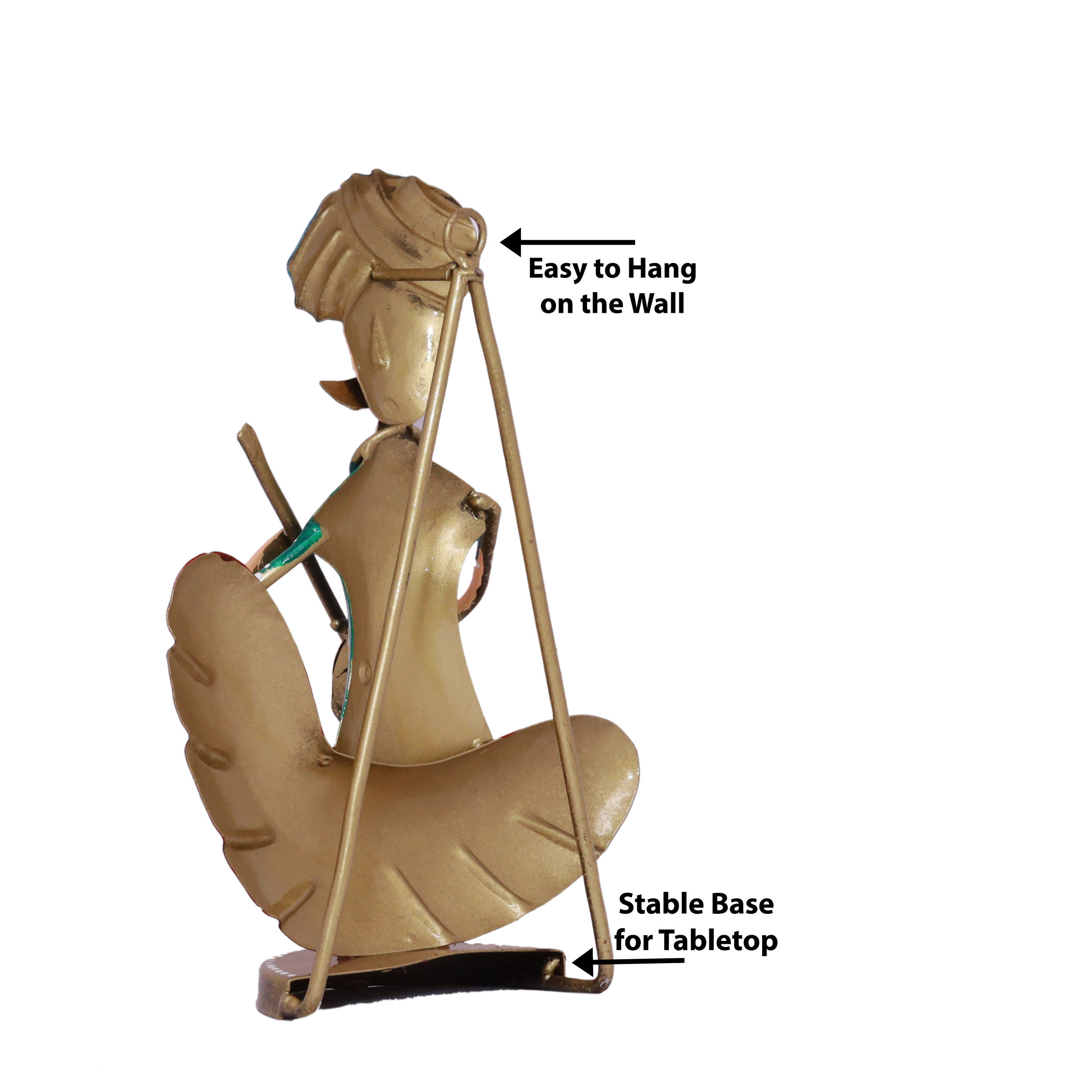 Measuring 9 inches in height and 7 inches in width with a 3-inch base, these sturdy figurines are versatile for placement on living room tables, hall showcases, TV units, or entrance consoles. They can also be hung as metal wall decor, making them perfect for enhancing your interiors with cultural artistry.