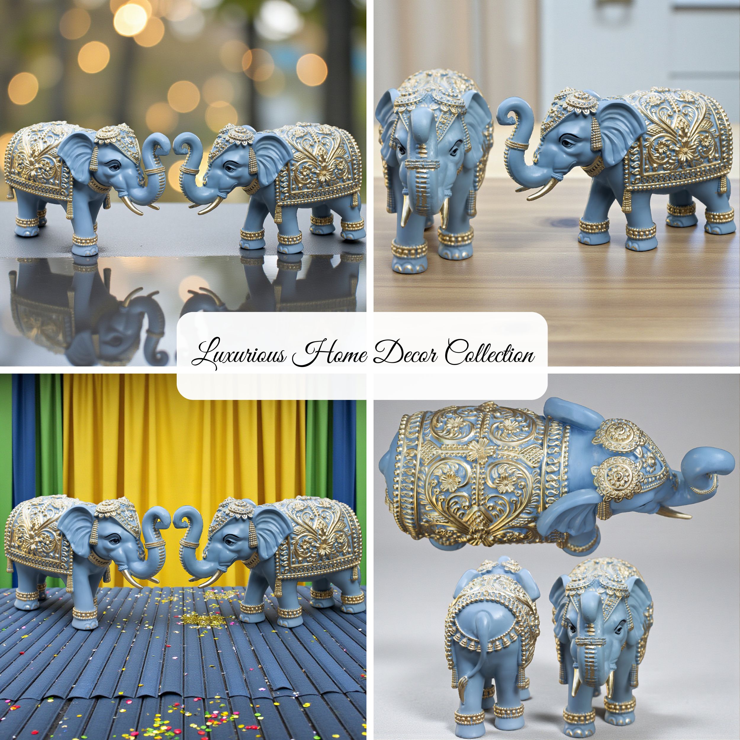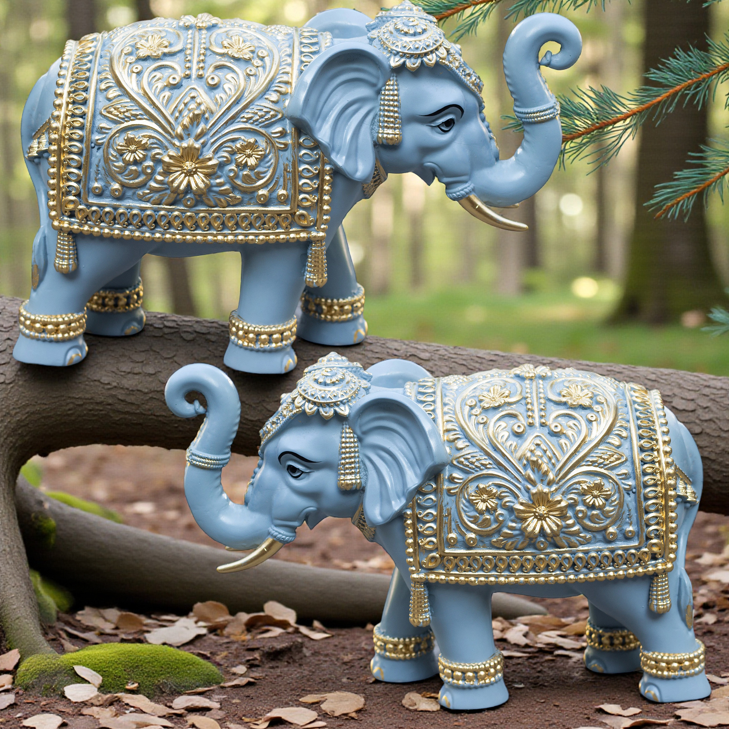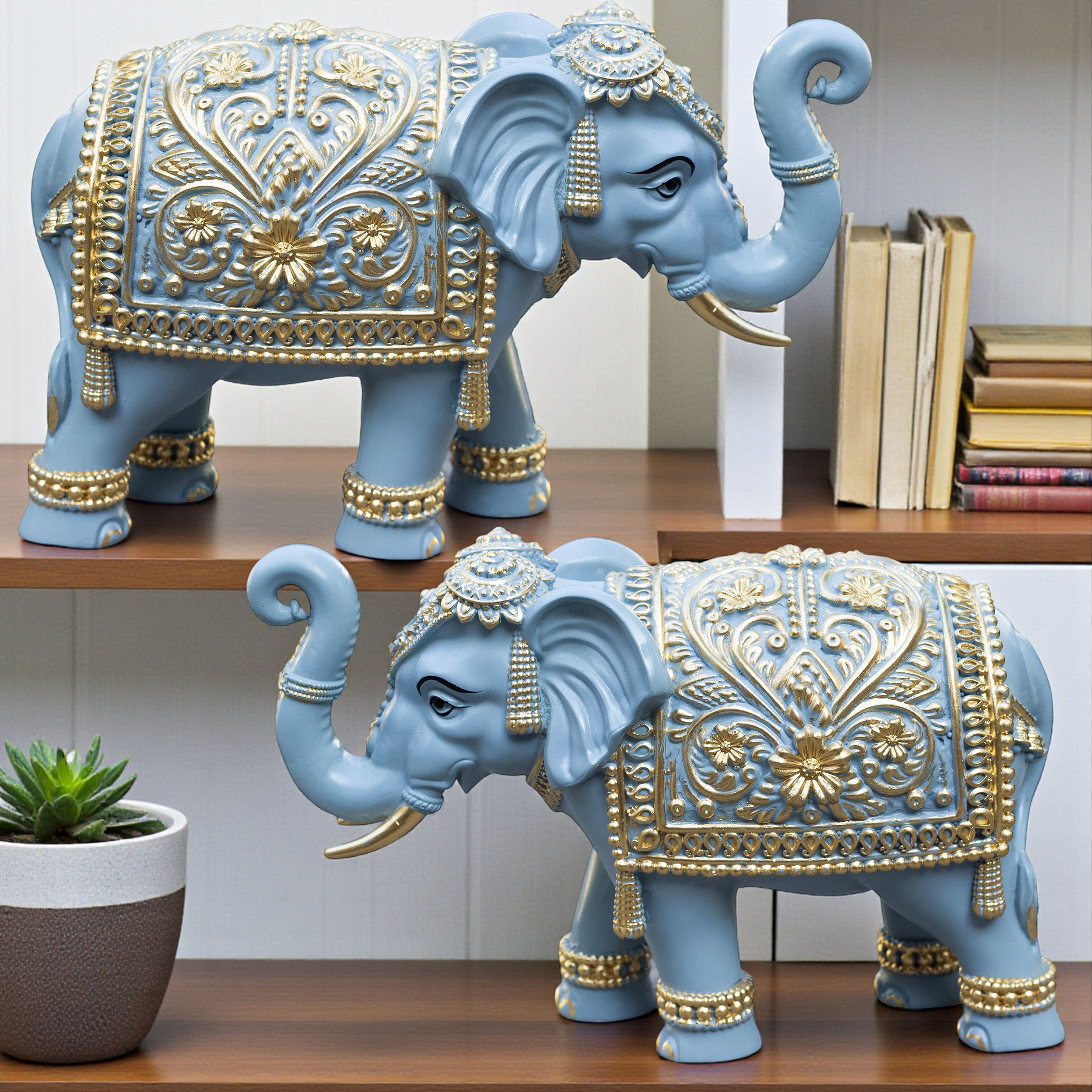 Transform your living space with this luxury Royal Gajraj Elephant Showpiece Pair, crafted in high-density marble dust and premium poly-resin, enriched with exquisite hand-painted gold detailing. Designed in a royal blue matte shade with palace-style embossed carvings, ornate jewelry patterns, each elephant shows the grandeur of Indian heritage art. The duo represents power, wisdom, protection and prosperity, making it a timeless addition to modern as well as traditional home decor.