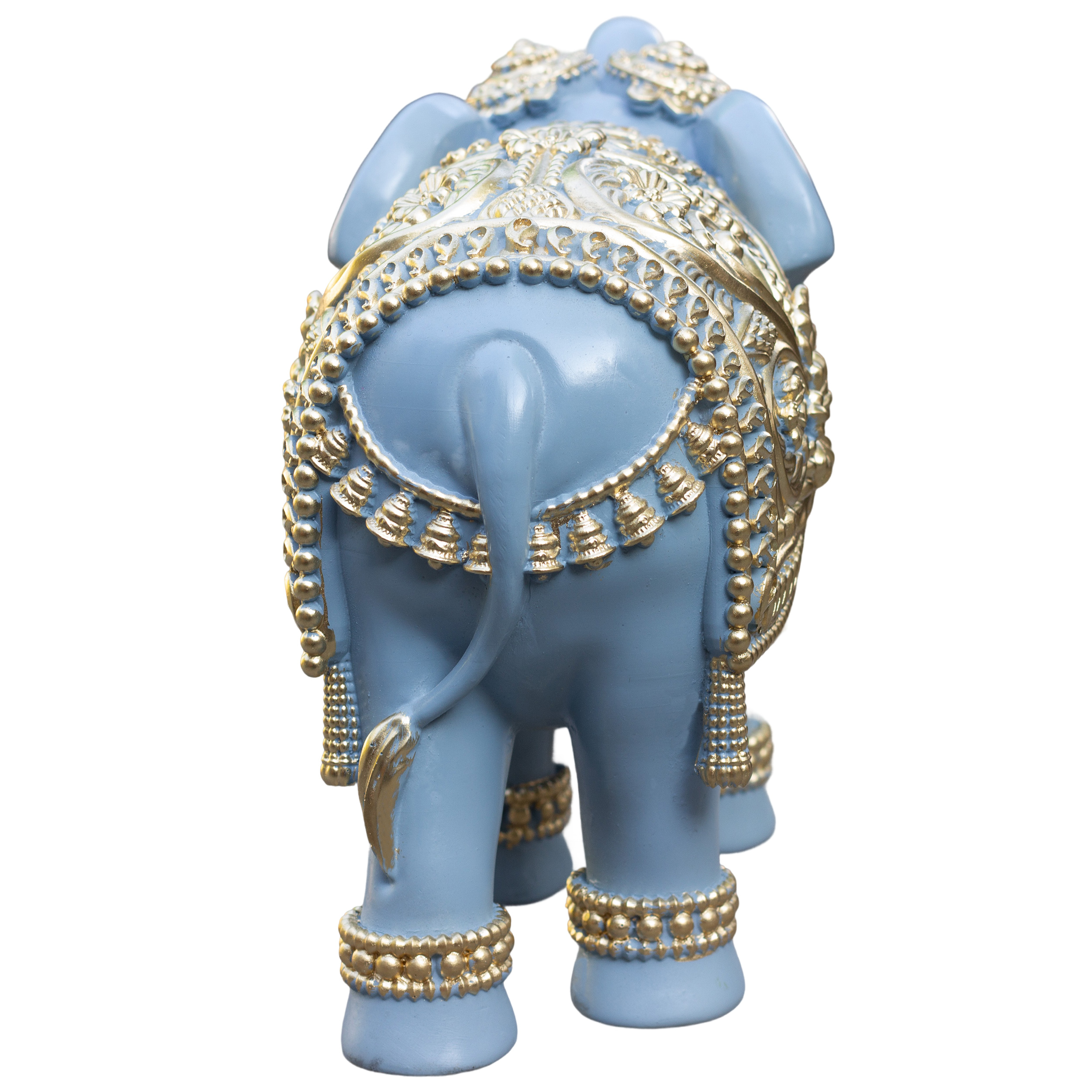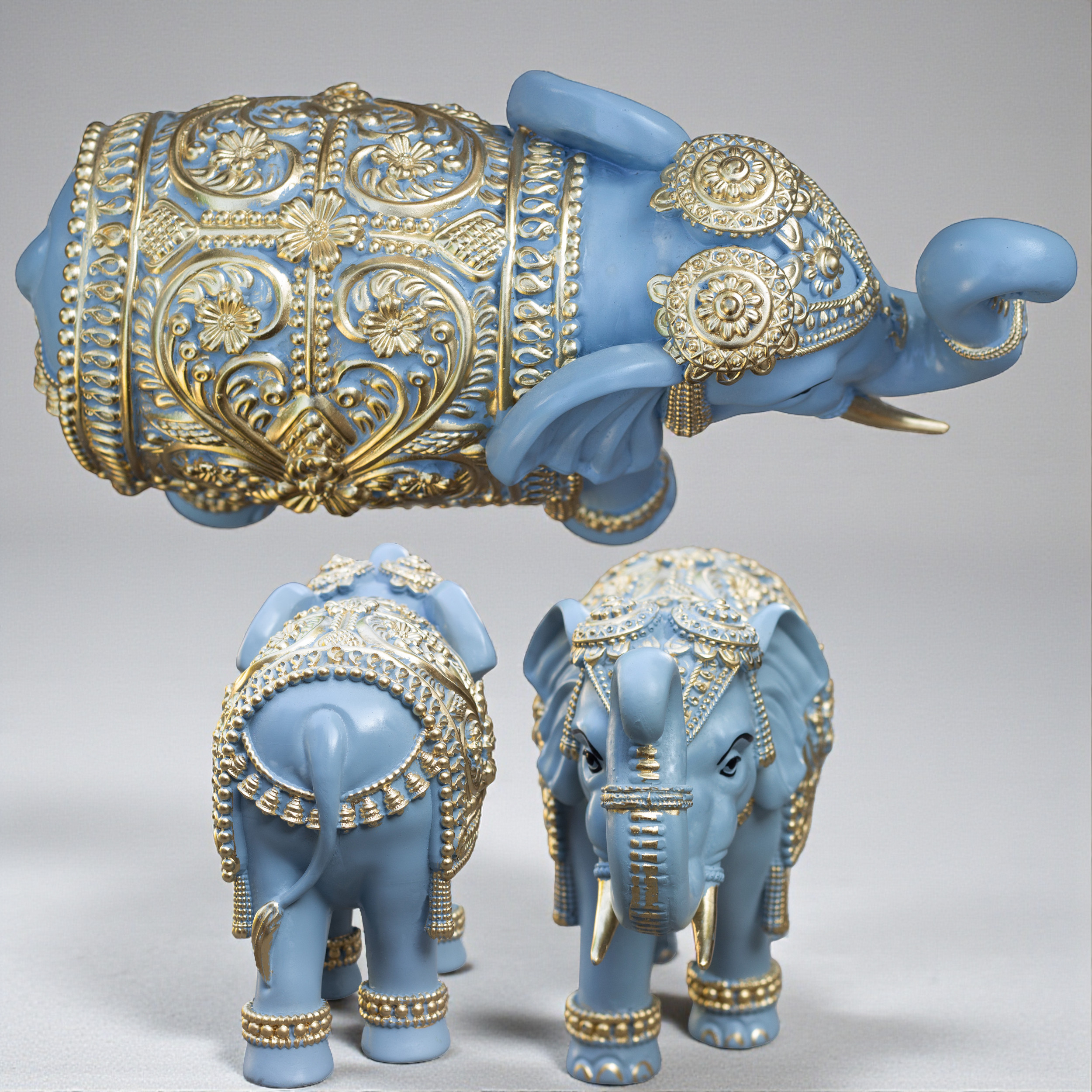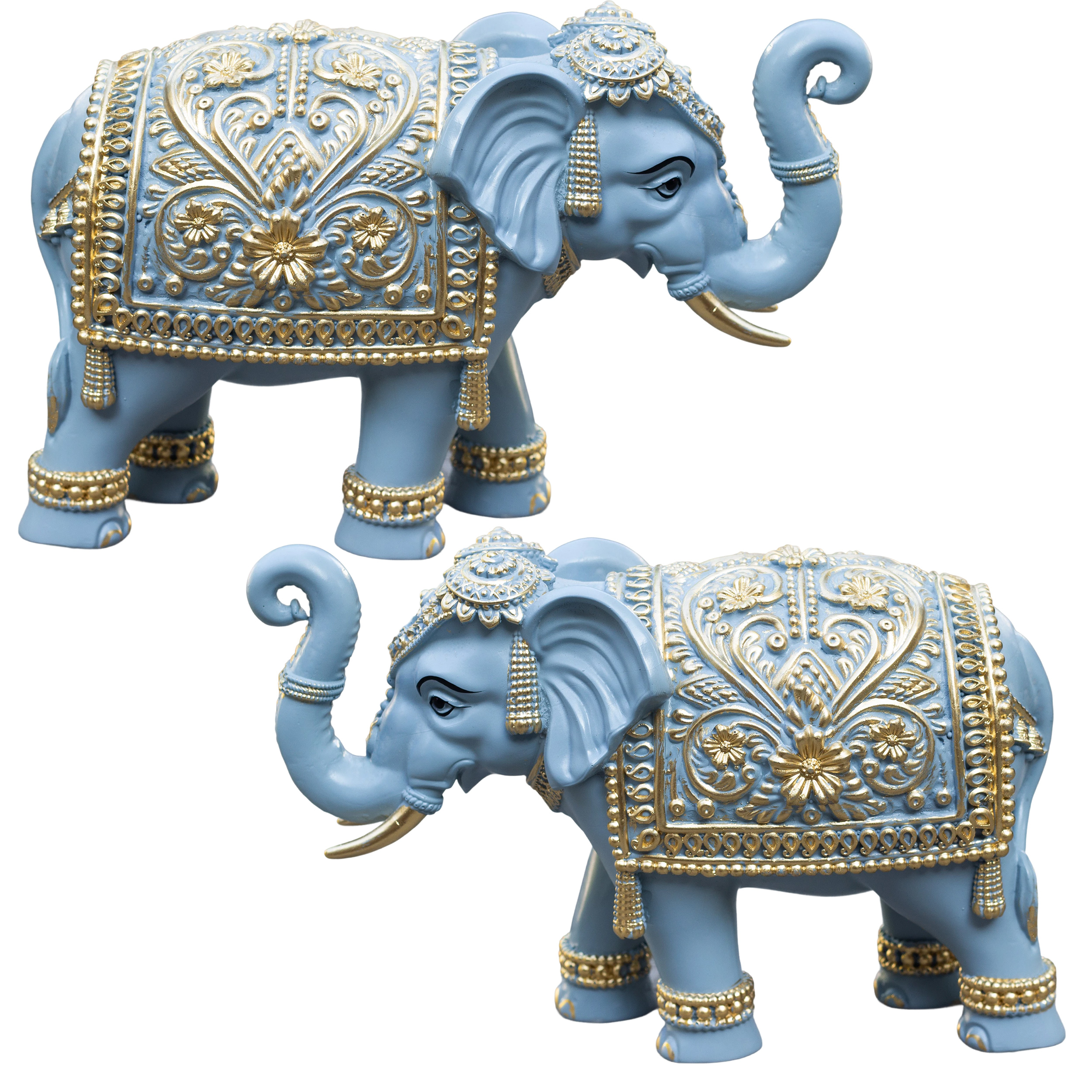 Transform your living space with this luxury Royal Gajraj Elephant Showpiece Pair, crafted in high-density marble dust and premium poly-resin, enriched with exquisite hand-painted gold detailing. Designed in a royal blue matte shade with palace-style embossed carvings, ornate jewelry patterns, each elephant shows the grandeur of Indian heritage art. The duo represents power, wisdom, protection and prosperity, making it a timeless addition to modern as well as traditional home decor.