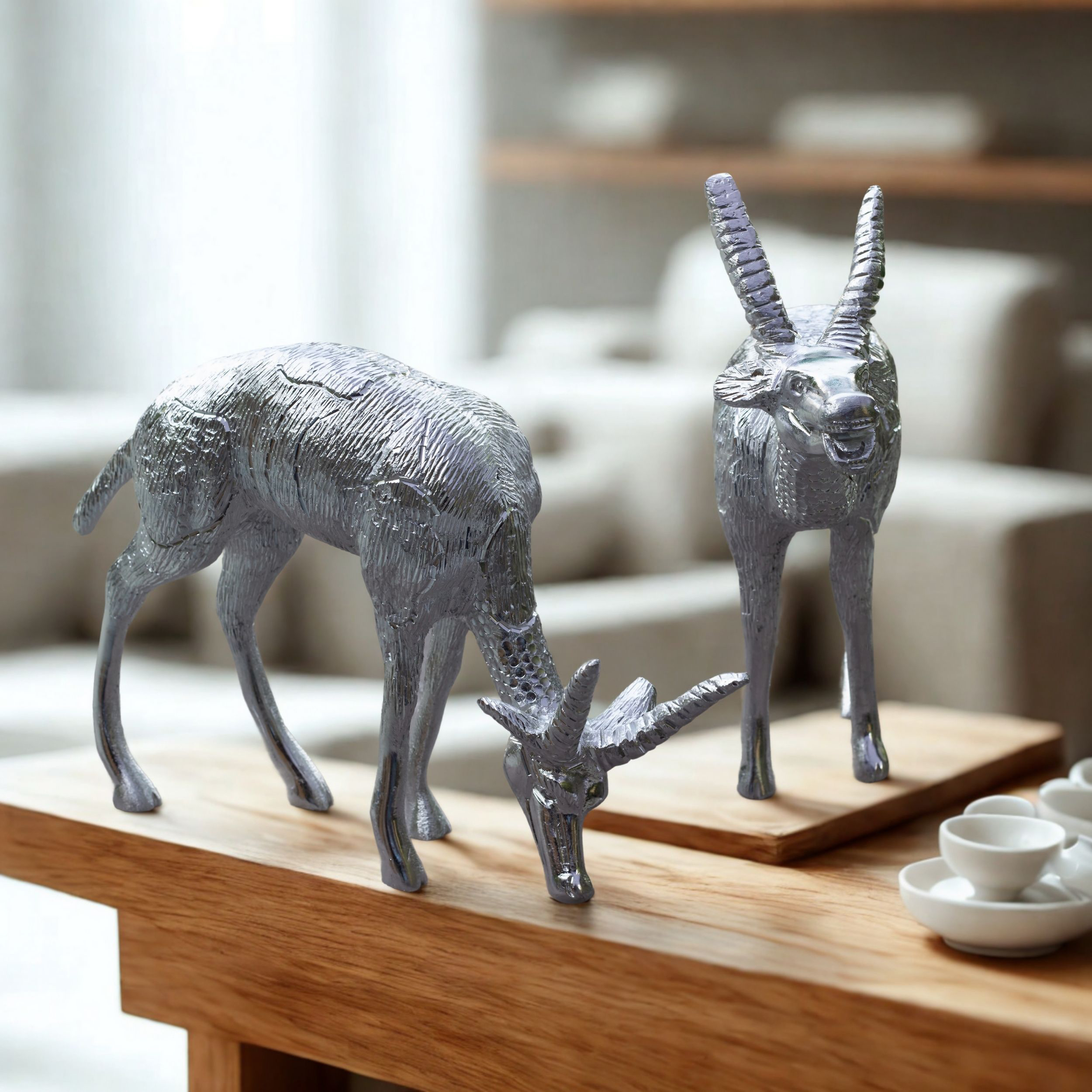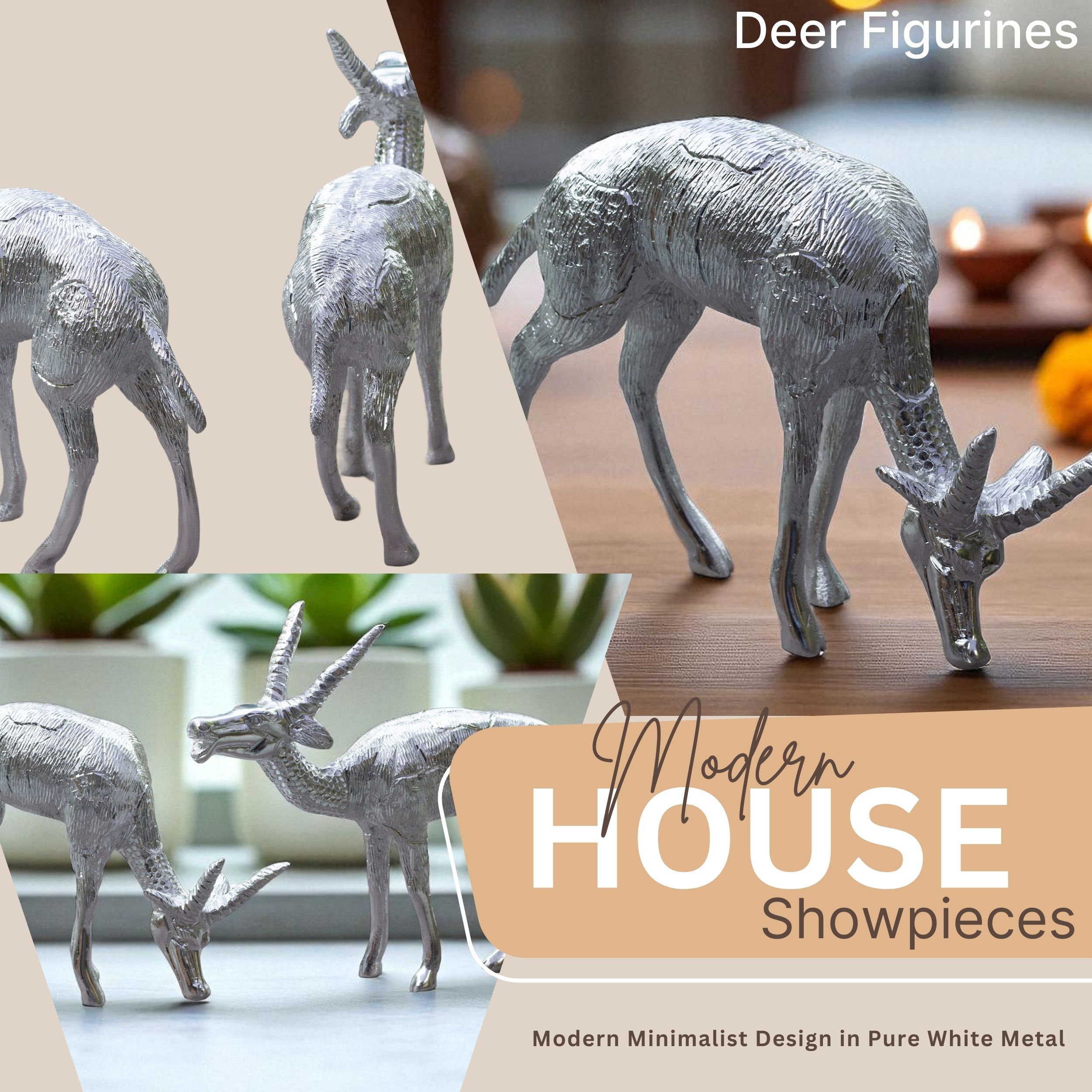 Decorative White Metal Deer Figurines