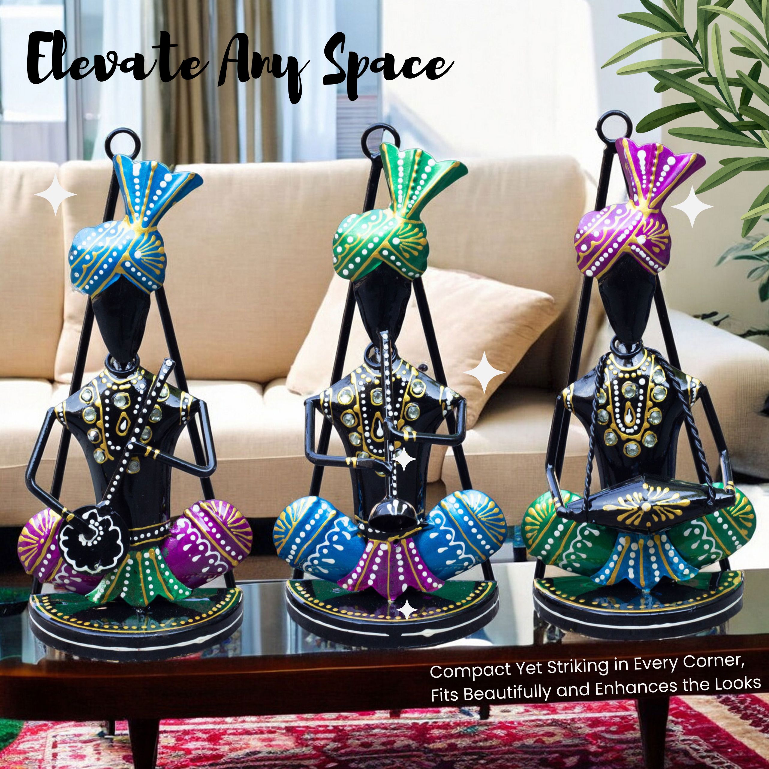 Compact Size for Flexible Placement in Any Room: Each figurine measures approx 3.5 x 2.5 x 8.56 inches, making it a great fit for compact corners, small wall spaces, or desktop displays. Suitable for home decor, office decoration, and Indian-themed spaces.