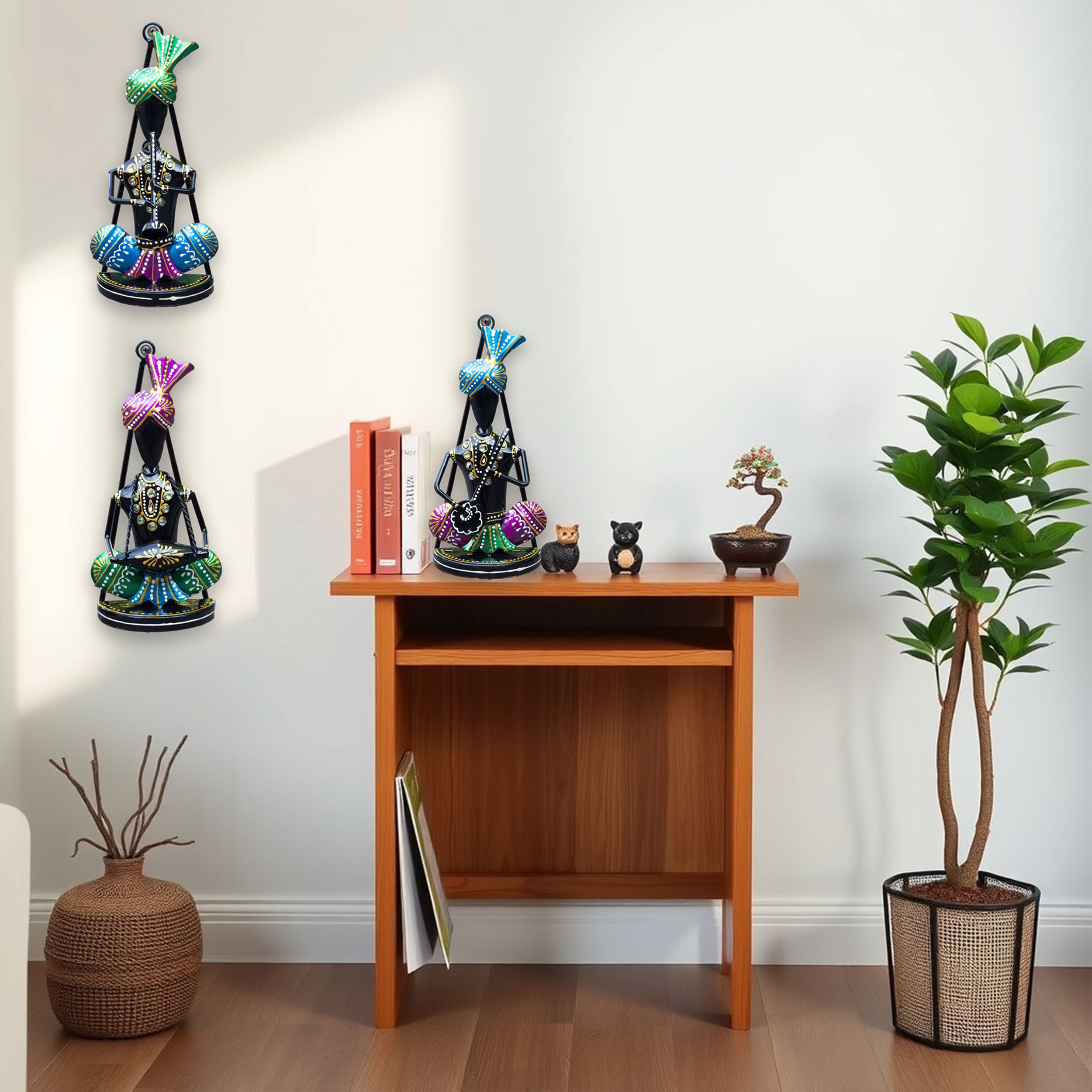Dual-Purpose Use: Wall Hanging & Tabletop Decor: Crafted for versatility, these handcrafted musician figurines can be mounted on the wall or placed on flat surfaces like shelves, study tables, and showcases to enhance any living room, hallway, or office decor.