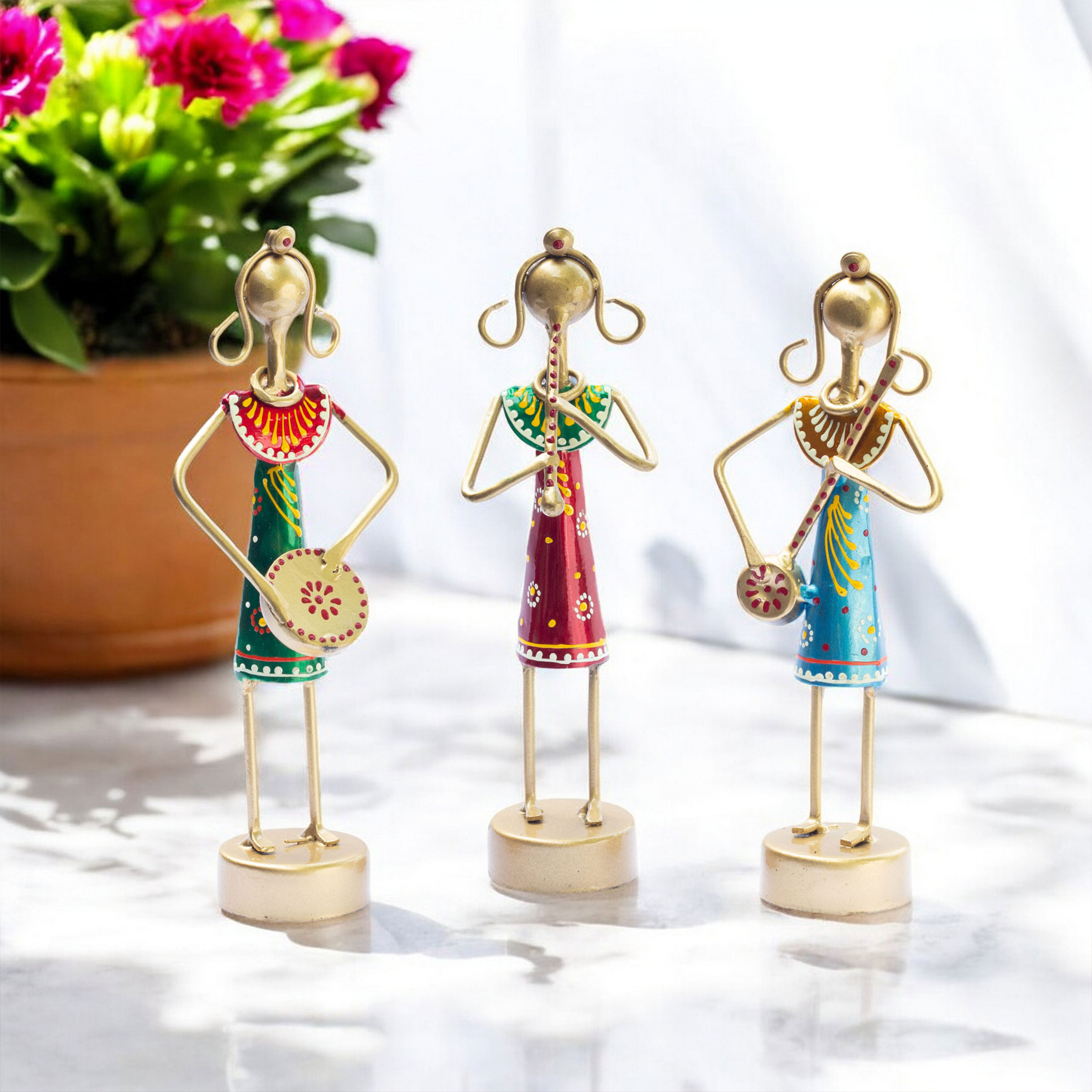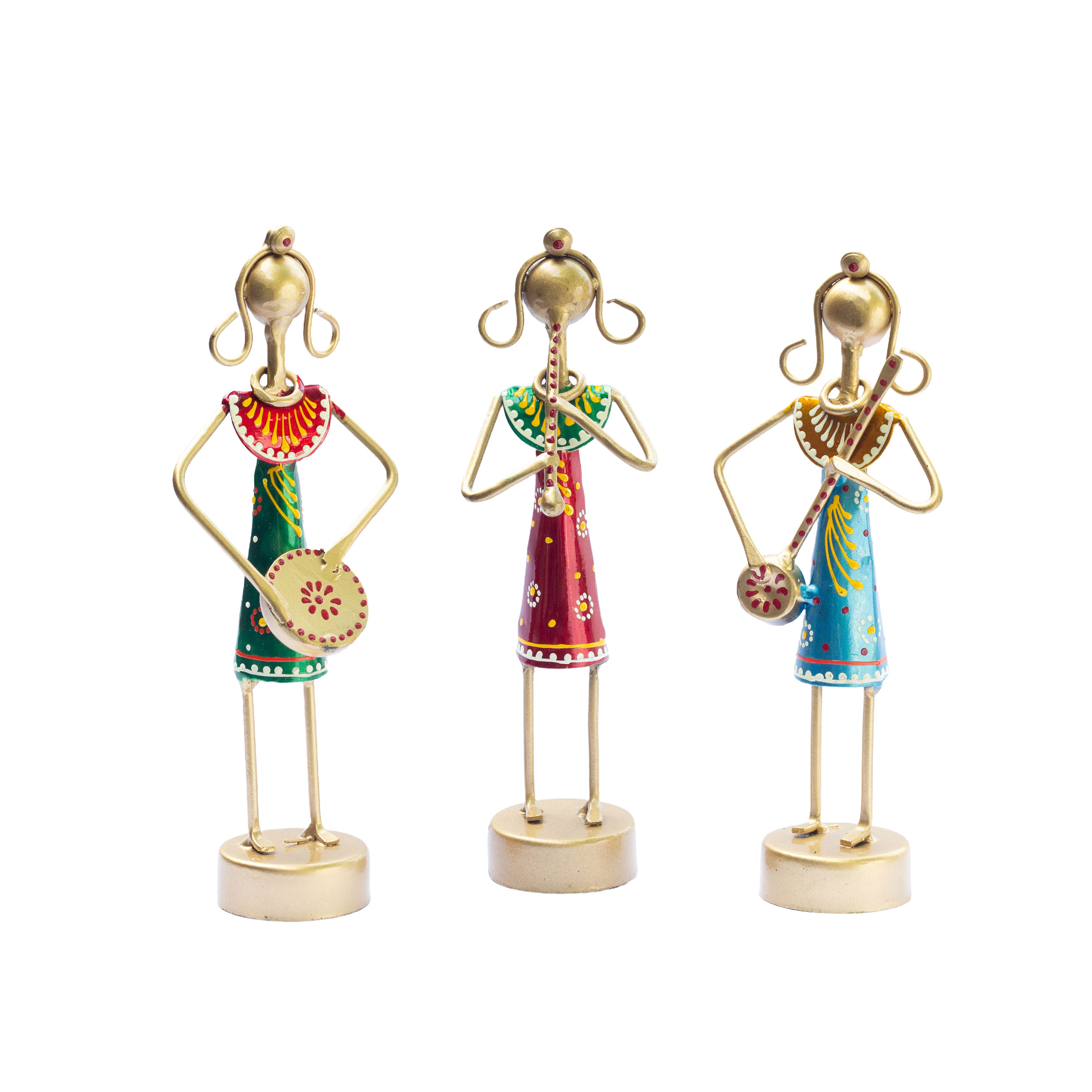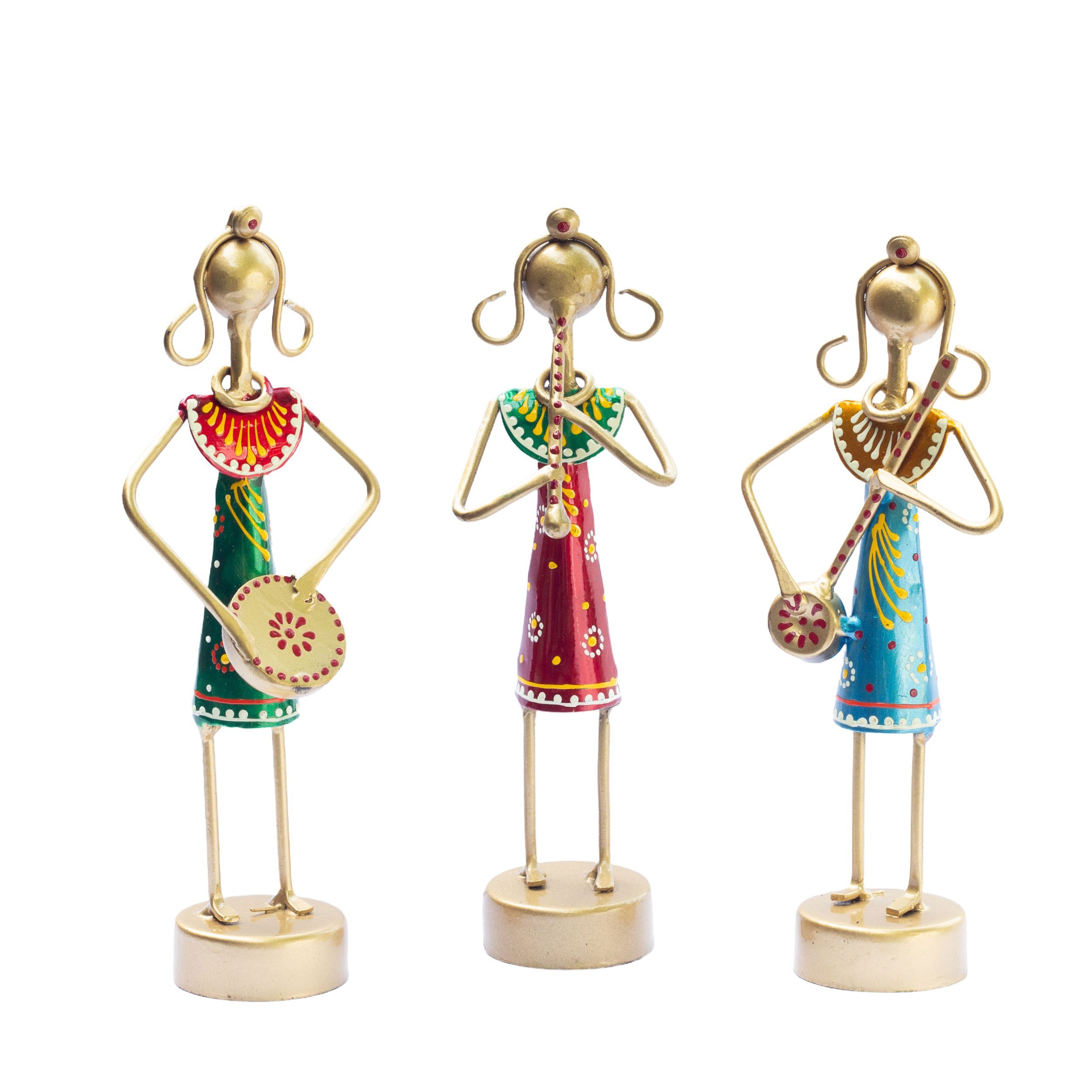 Handcrafted Excellence: This is a set of 3 handcrafted and beautifully coloured musical dolls set which is meticulously handcrafted by skilled artisans from Rajasthan, known for their expertise in traditional ironwork. The intricate detailing and delicate designs make this showpiece a true masterpiece.