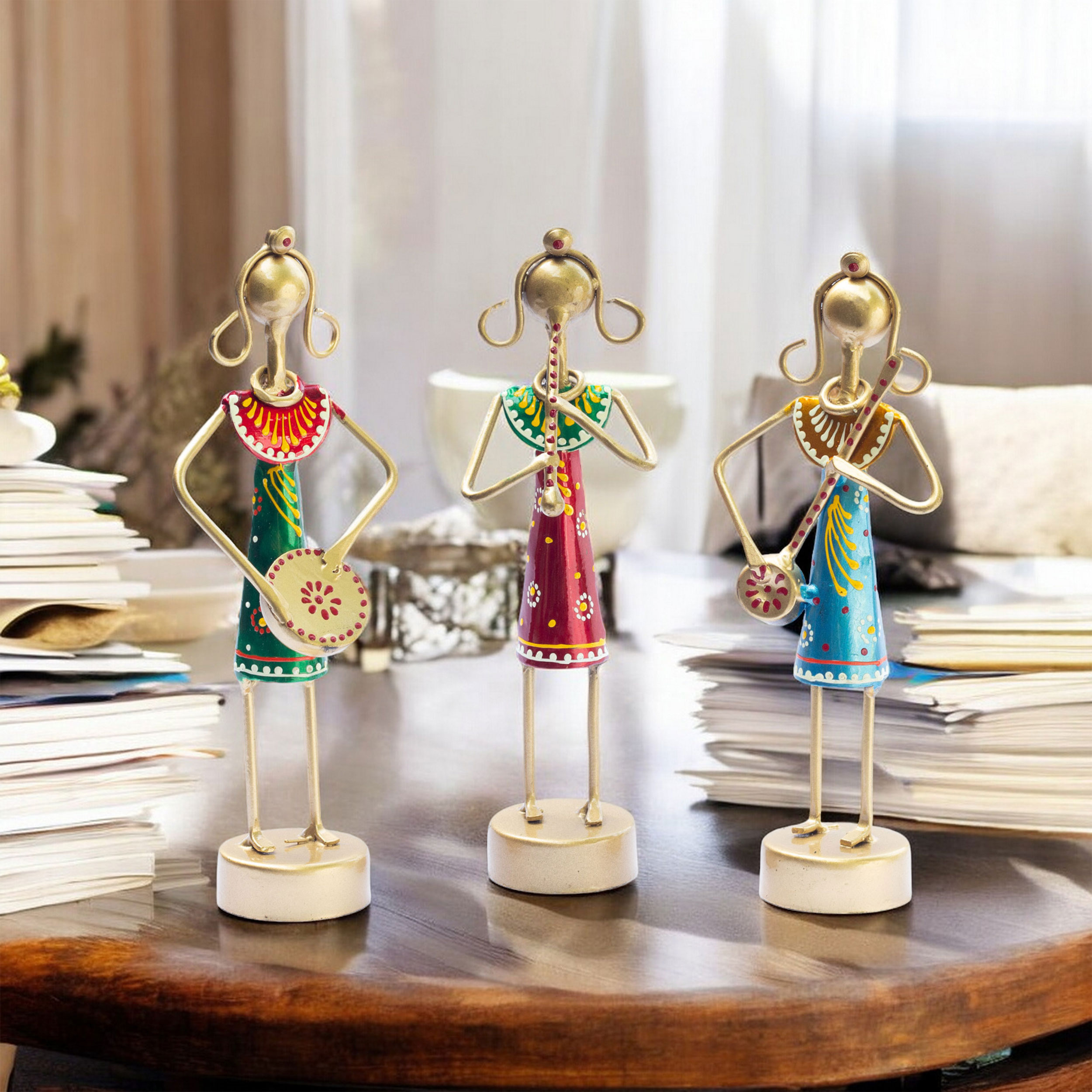Set of 3 Iron Metal Musician Dolls Living Room Home Decor Showpiece Item for Housewarming Gift, Weddings