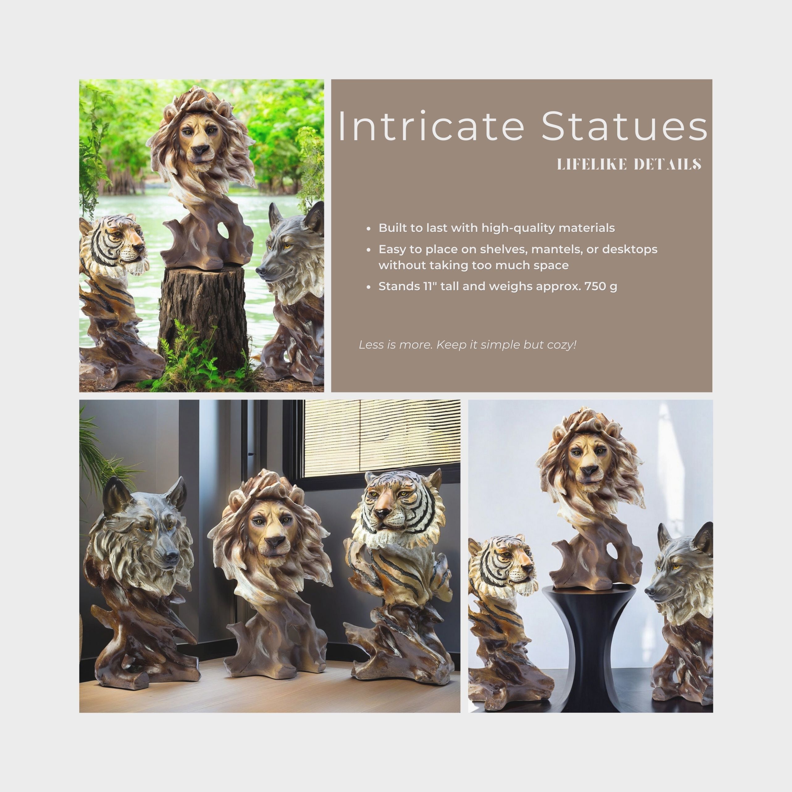 Beyond being eye-catching pieces of home décor, these realistic animal statues serve as meaningful conversation starters and unique gifts for nature lovers, wildlife enthusiasts, or anyone who appreciates distinctive art. Crafted for longevity, their solid construction ensures they will remain vibrant and detailed for years to come. These statues also fit perfectly into safari-themed rooms, cabin-inspired interiors, or rustic-style décor.
