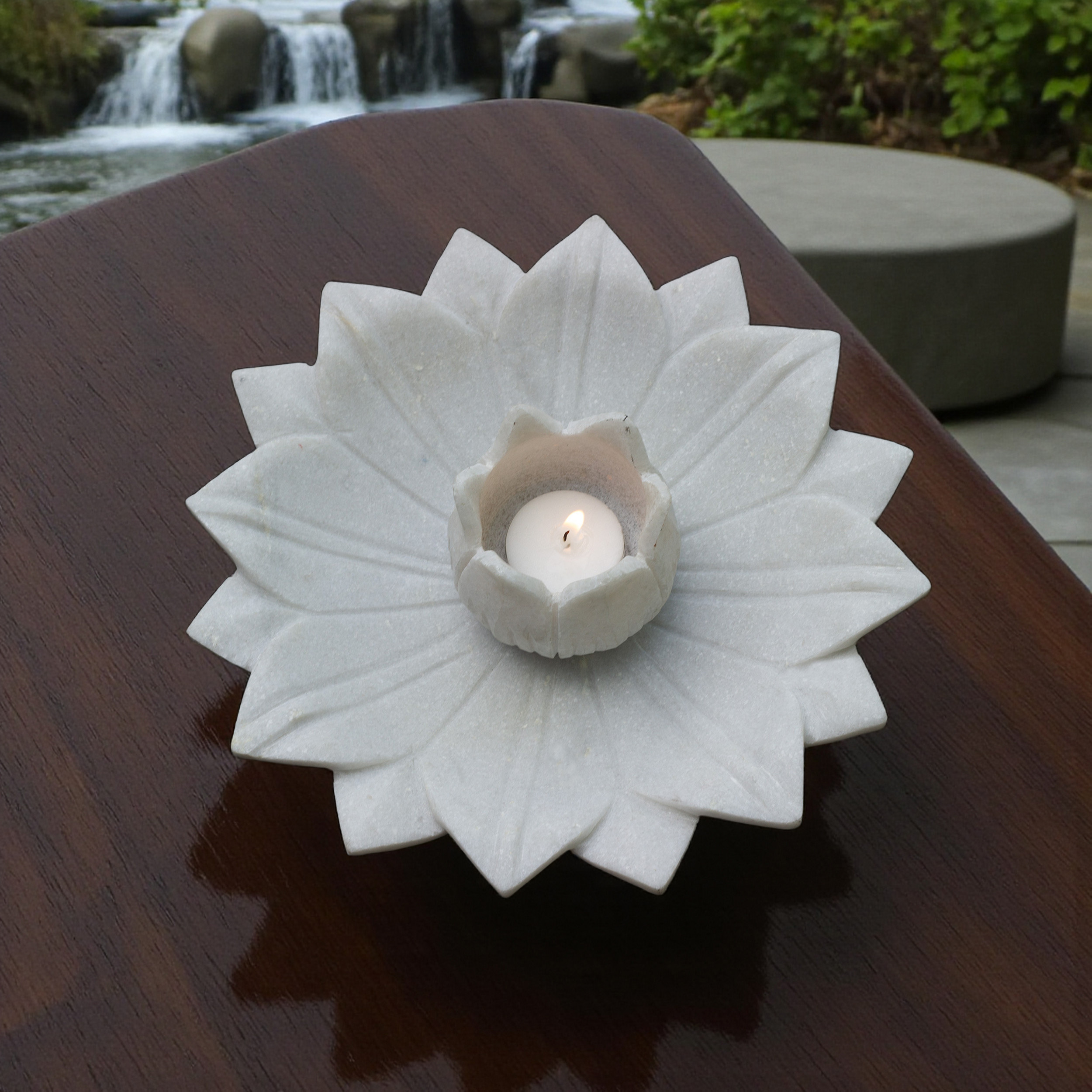Measuring 9 inches in diameter, this marble plate balances size and grace perfectly. The lotus diya, about 3 inches, fits comfortably at the center, allowing you to place a tealight candle or diya wick. Every detail — from petal curves to smooth polishing — is meticulously done by hand, ensuring that no two pieces are exactly alike.